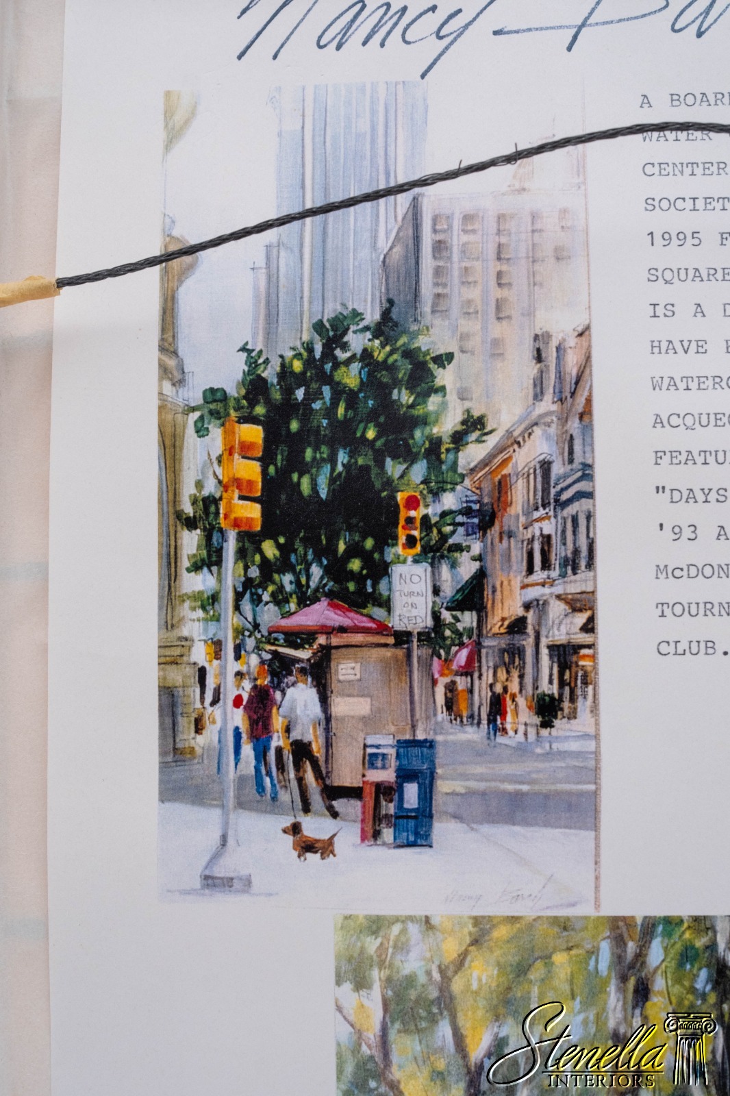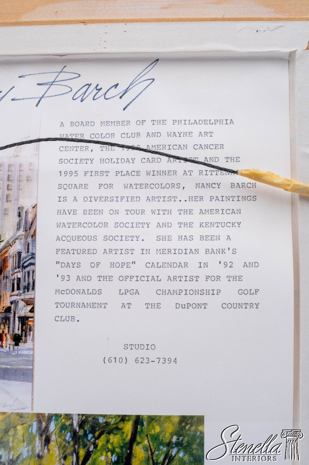 Details: By J. Glass and Nancy Barch. Nancy Barch is an award-winning Philadelphia artist with works on tour. Listed dimensions are for gold frame painting. Larger painting: 12.5 x 1 x 14.25