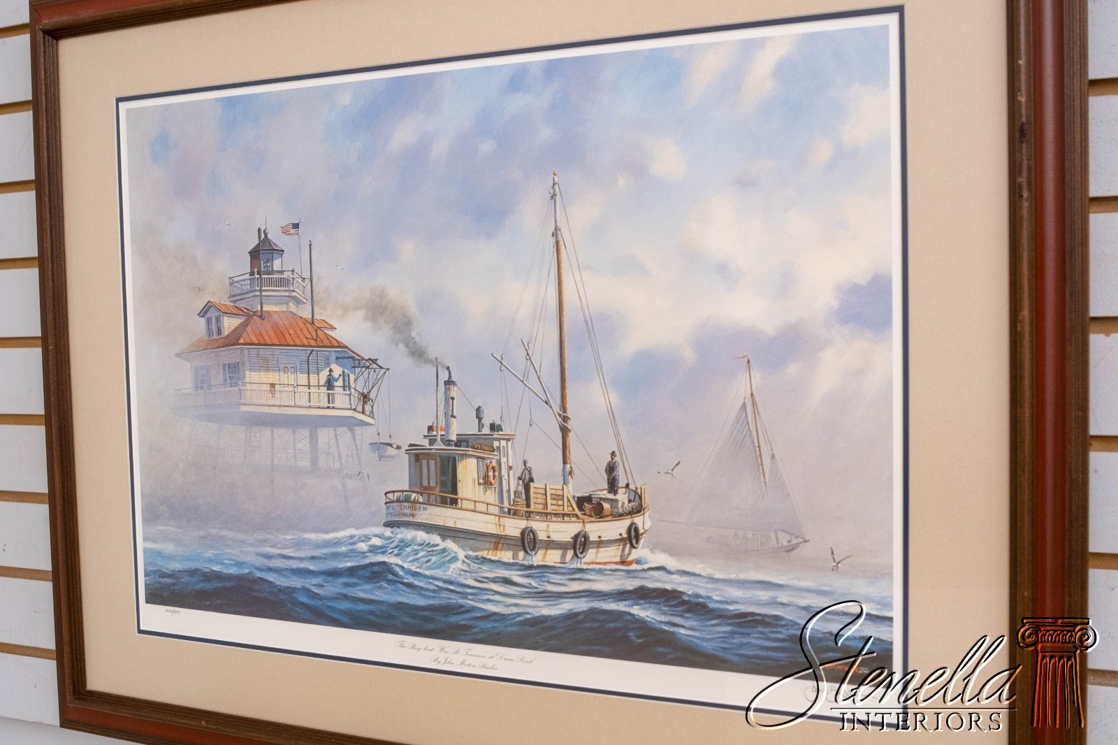 F69220: "The Buy-boat Wm. B. Tennison At Drum Point" Sailboats Lighthouse Painting Print Signed John M Barber Numbered