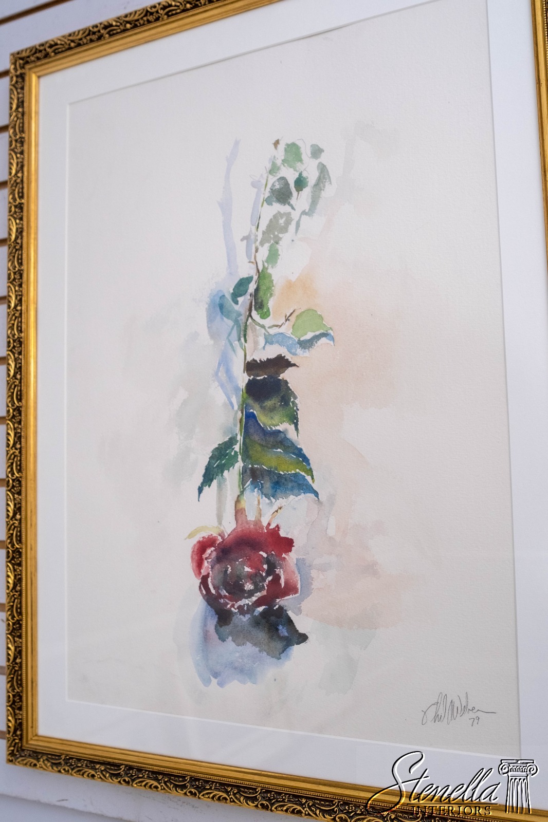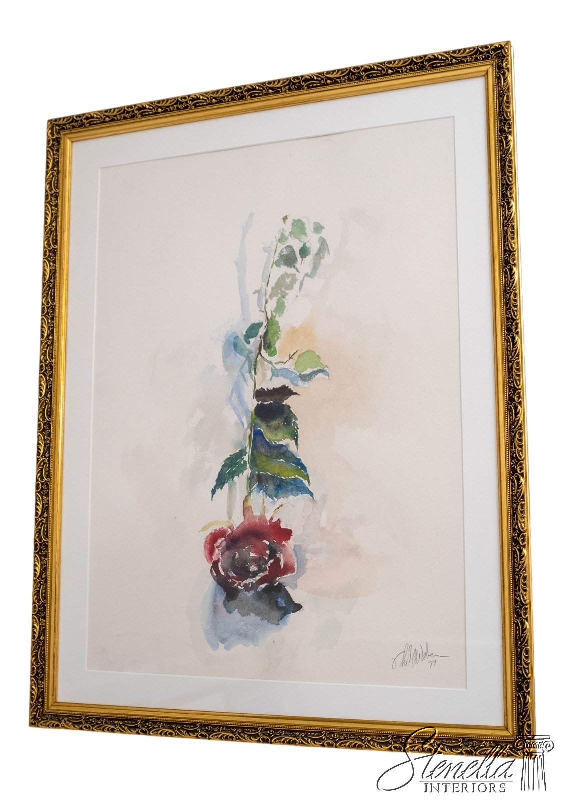 F69223: Abstract Single Red Rose Watercolor Painting Signed
