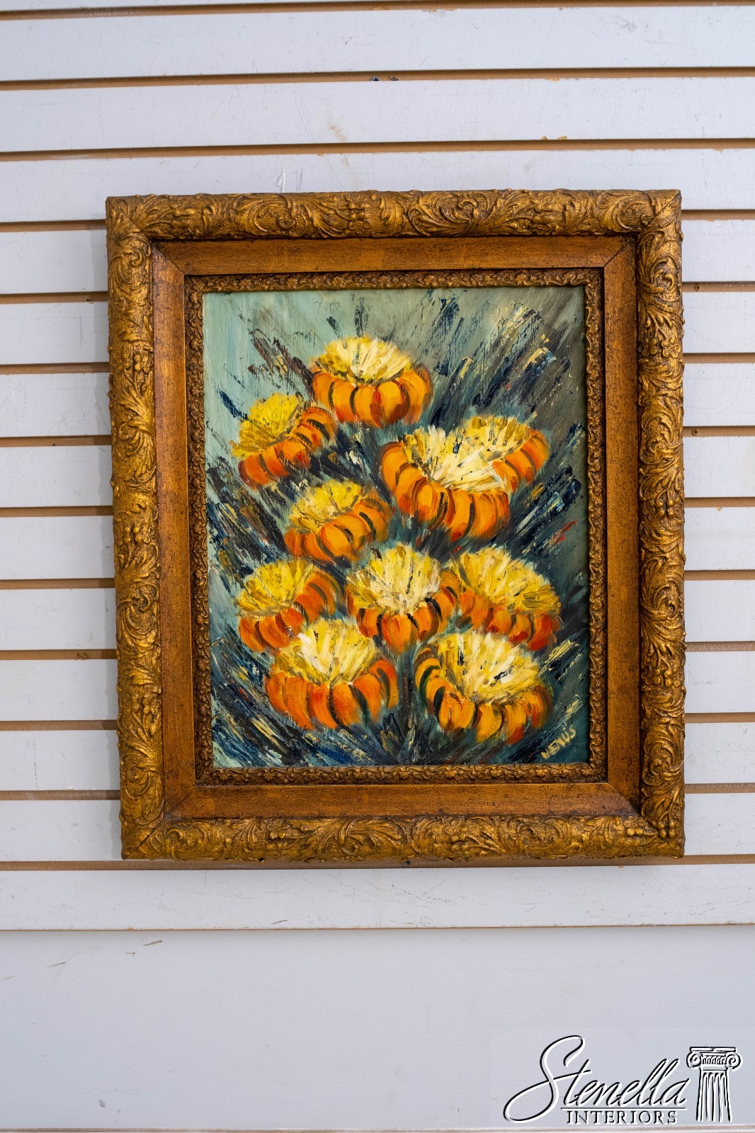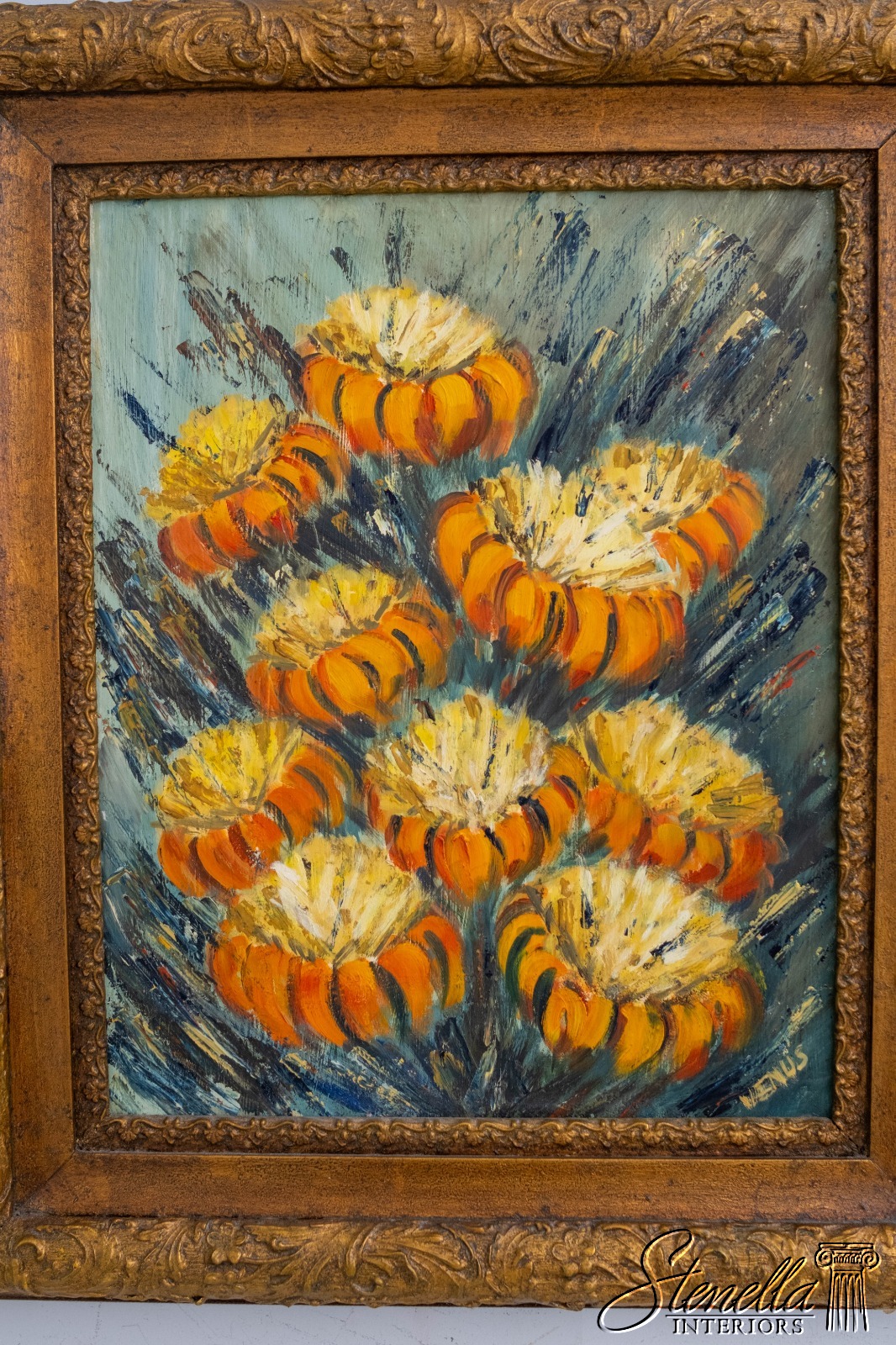 F69229: Abstract Still Life Orange Flowers Oil Painting On Canvas Painting Signed