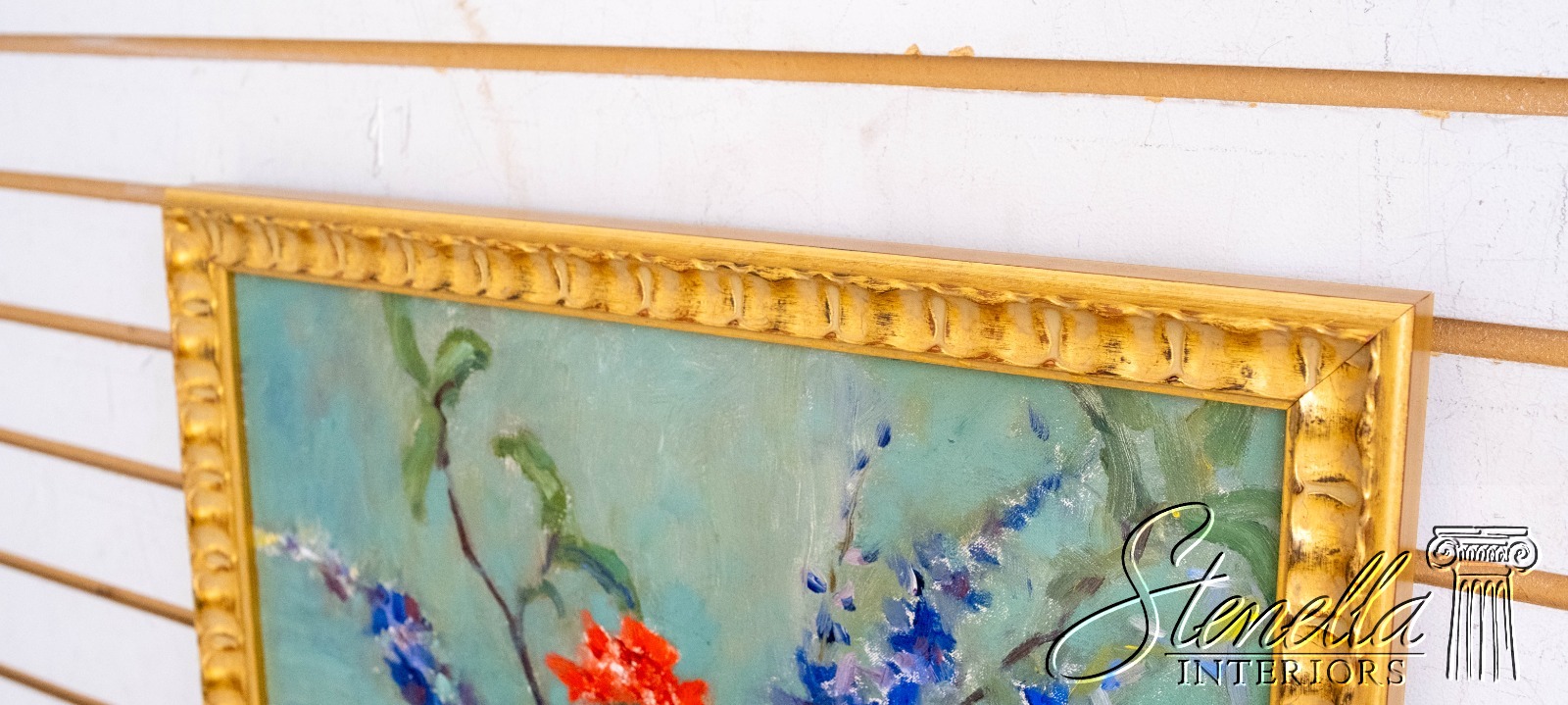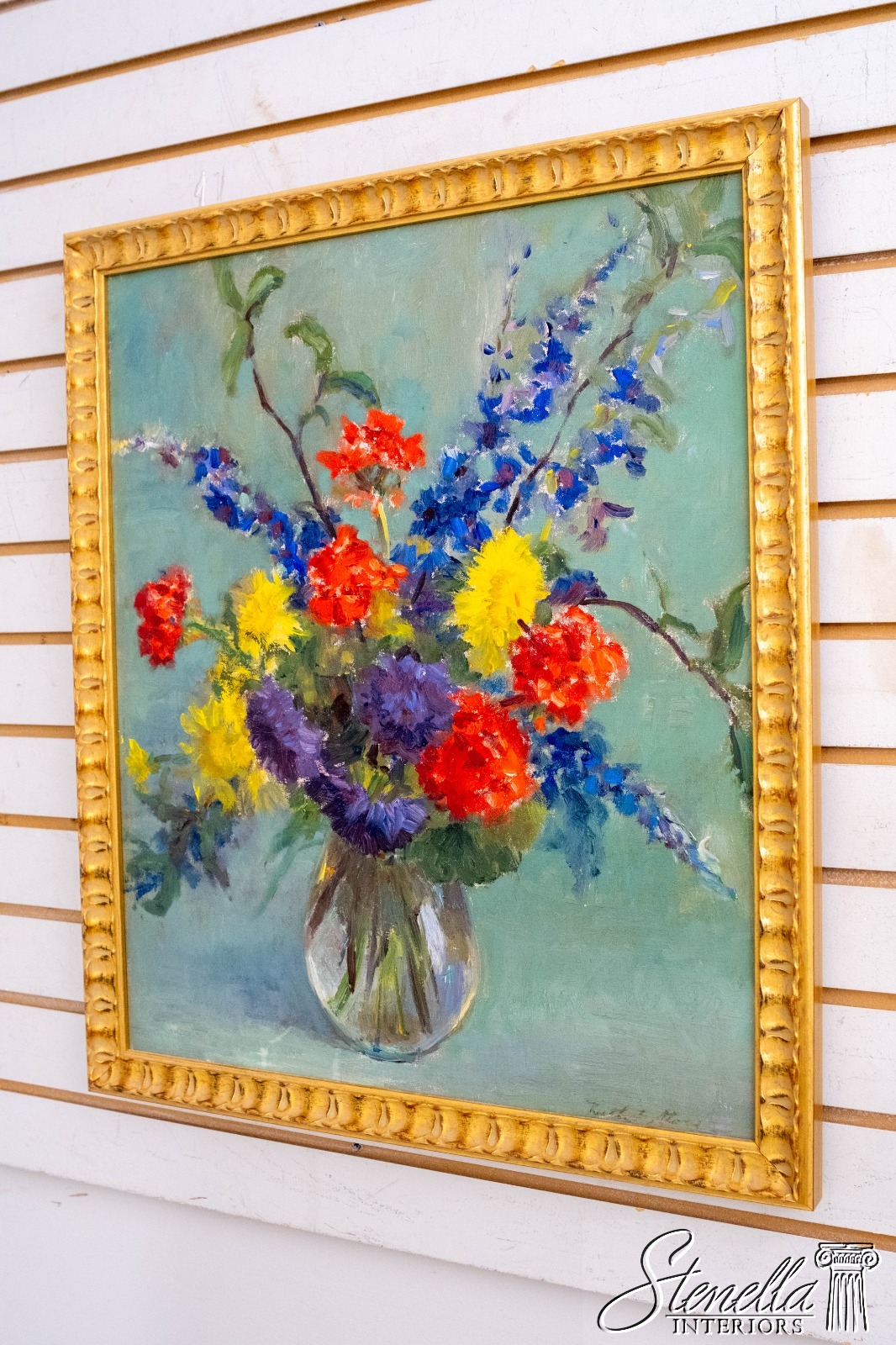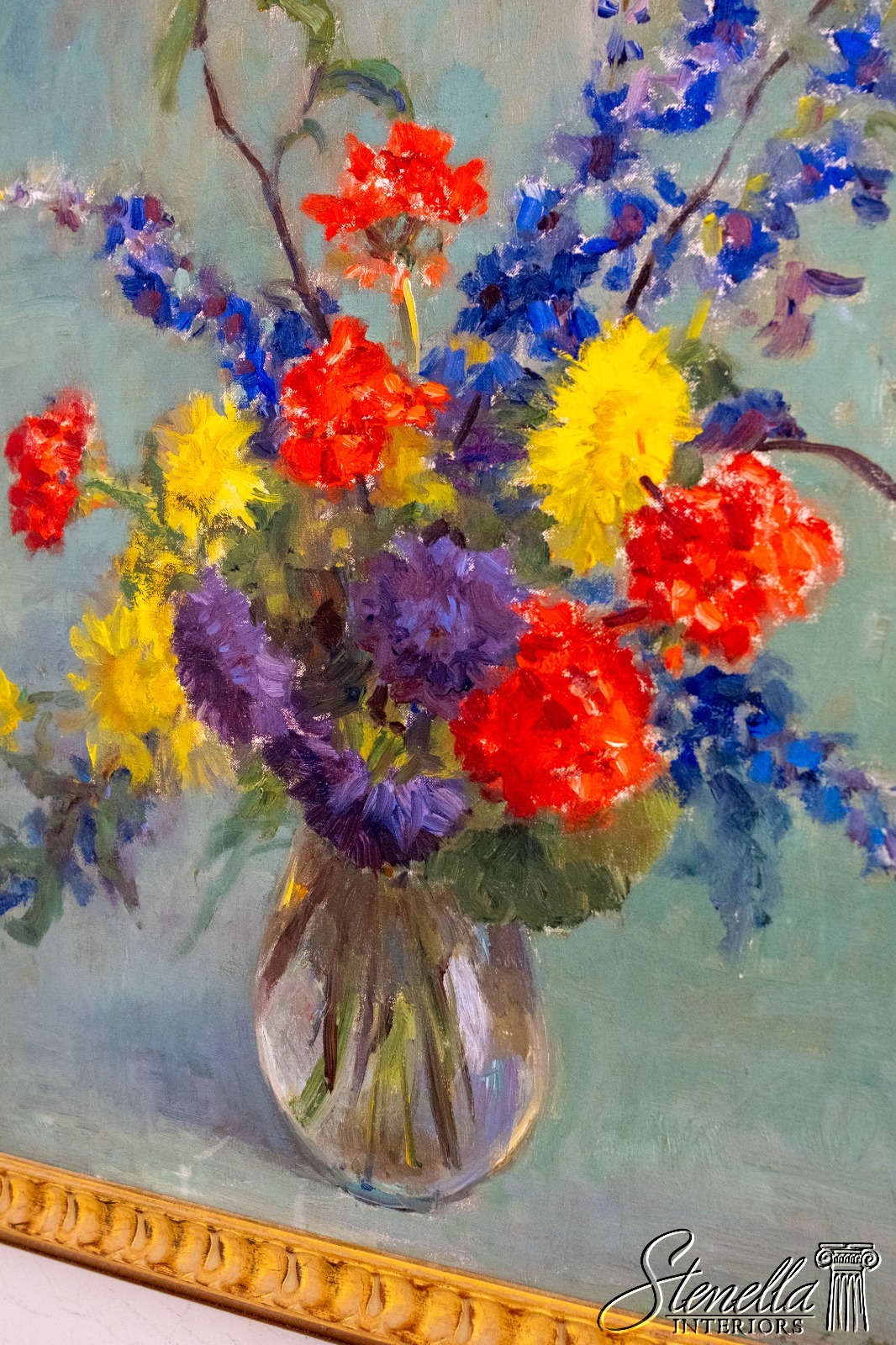 F69252: Abstract Still Life Flowers In Vase Oil Painting Signed