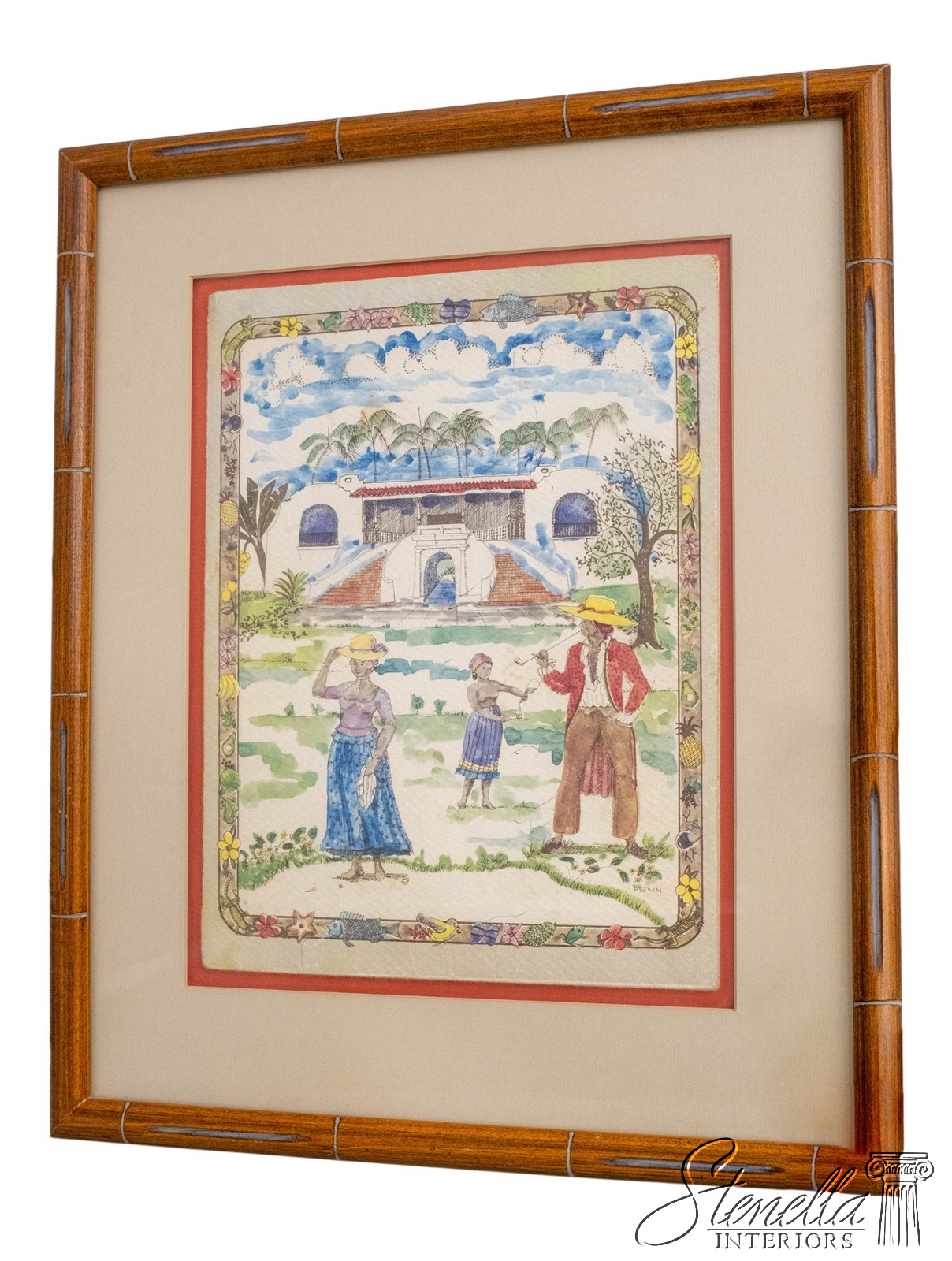 F69267: Caribbean Watercolor Tropical Plantation Scene Painting Signed FENN