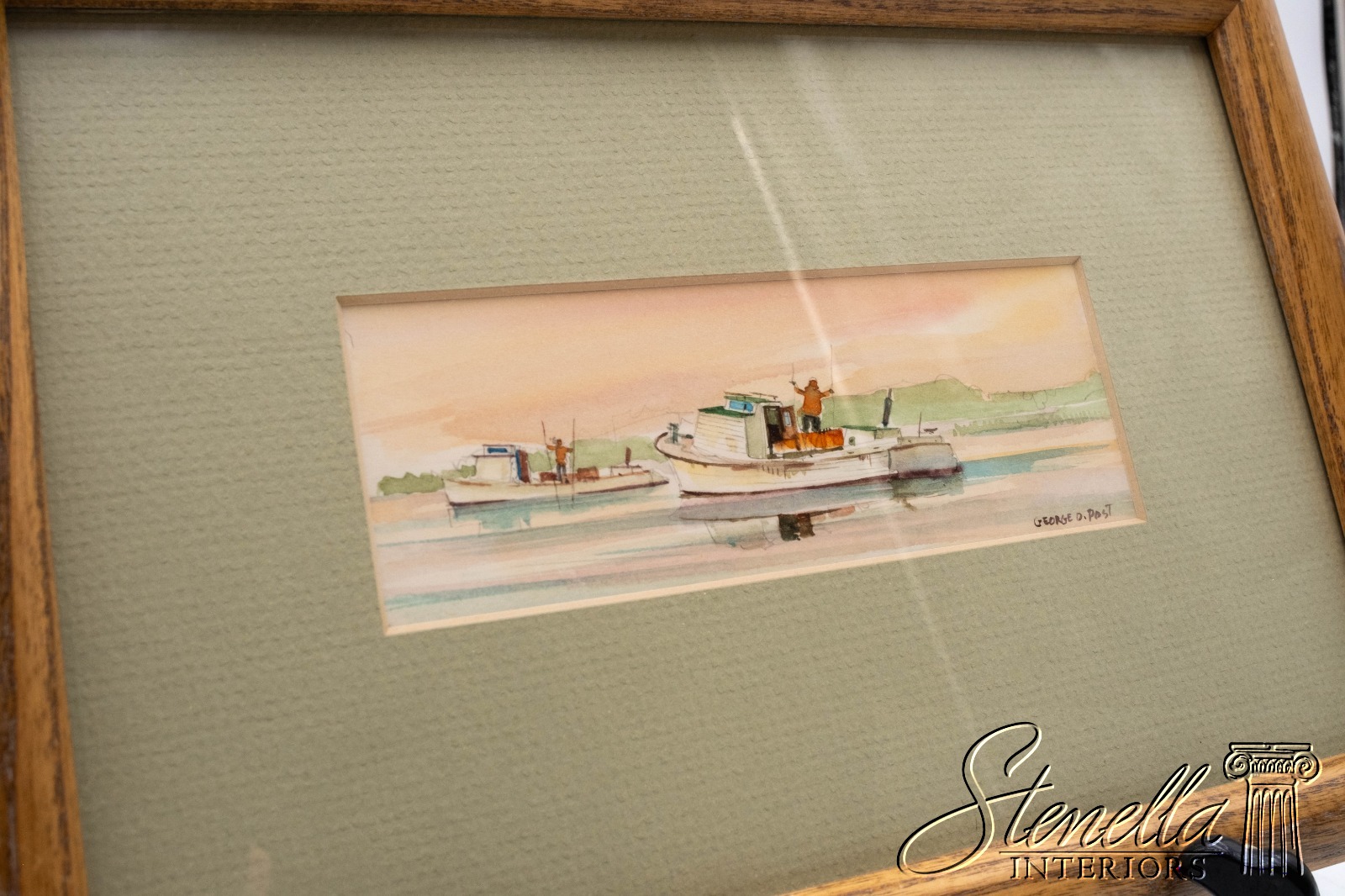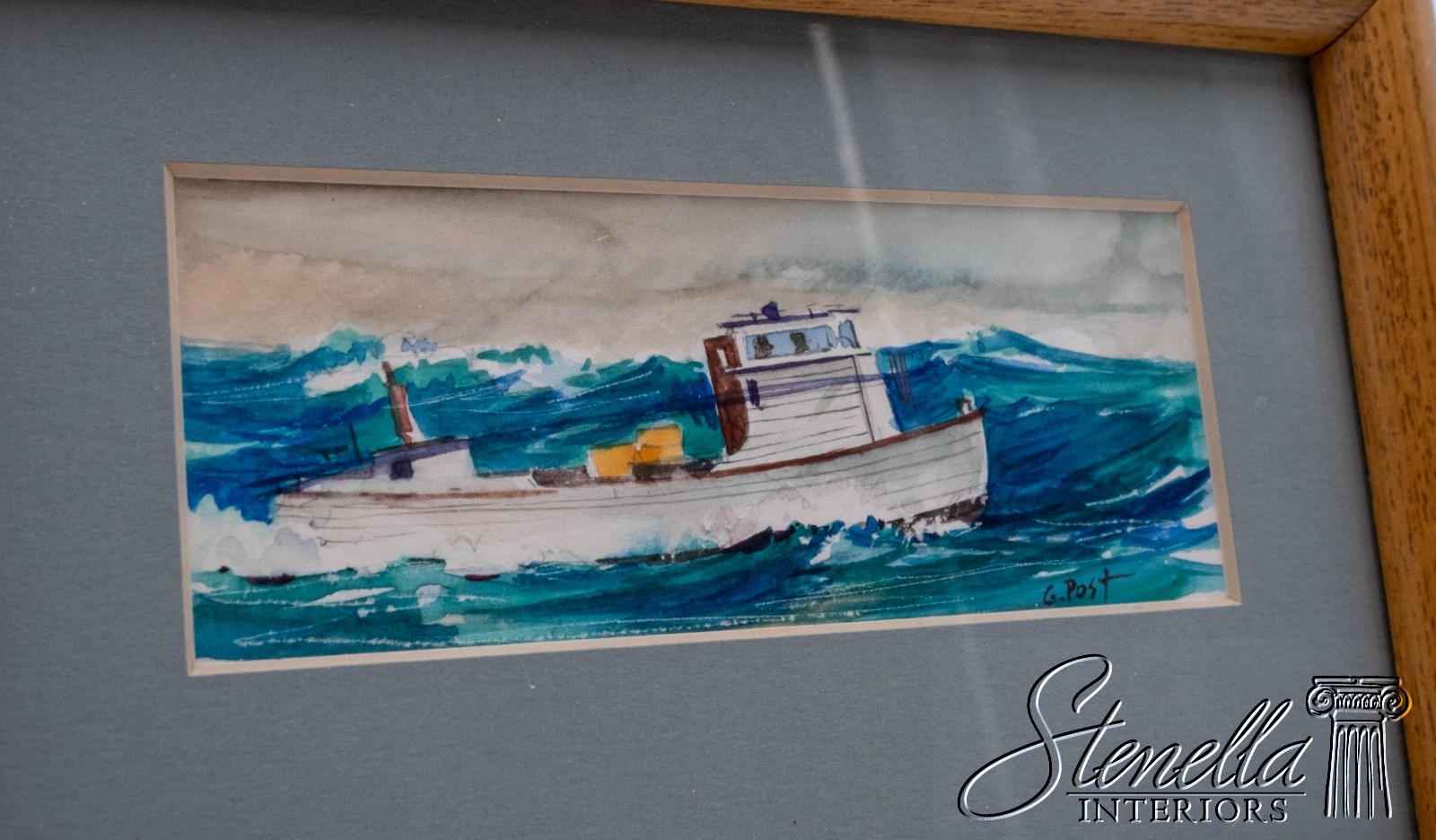 F69308: Pair of Nautical Watercolor Paintings Fishing Boats Fishermen Signed George D Post