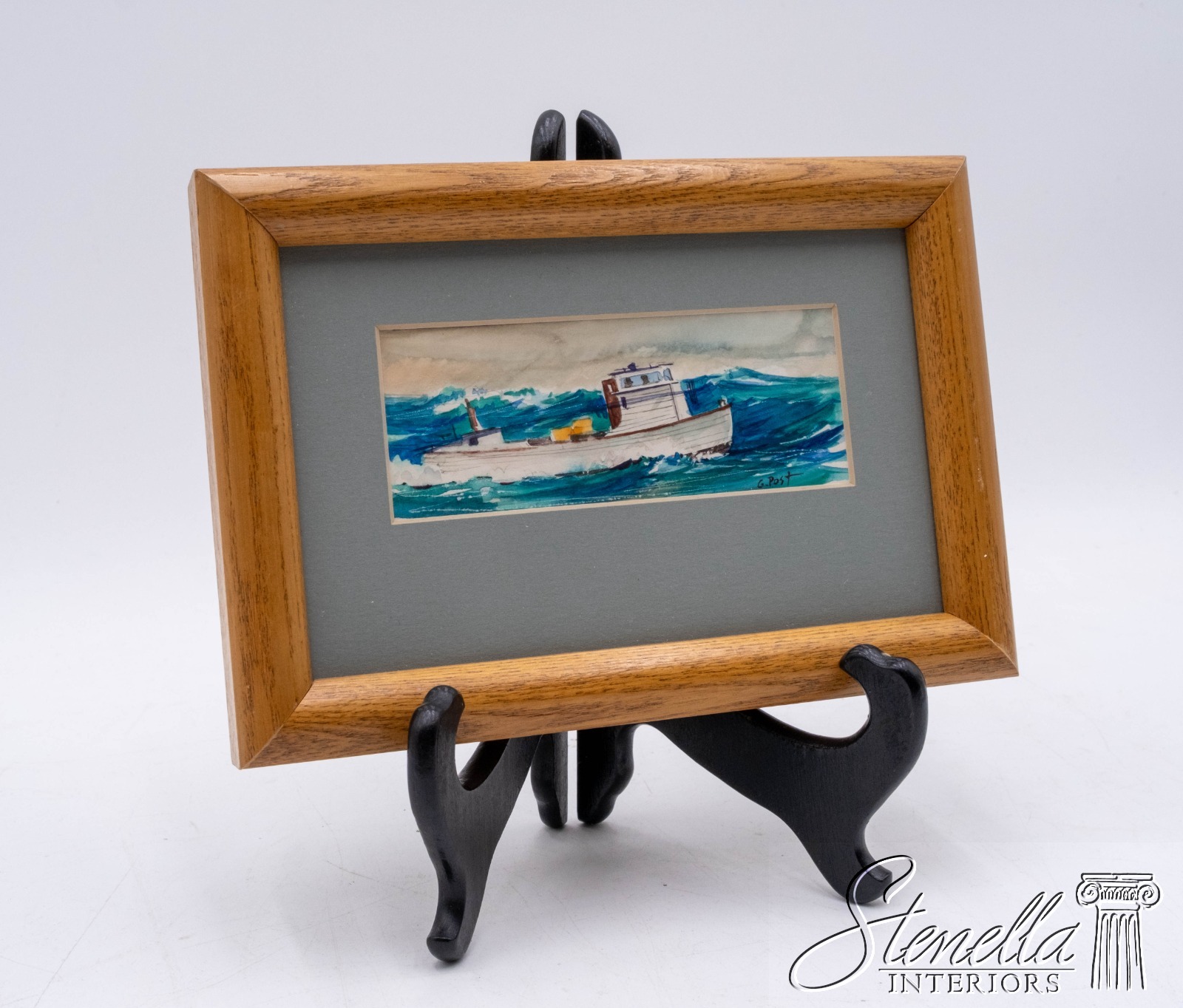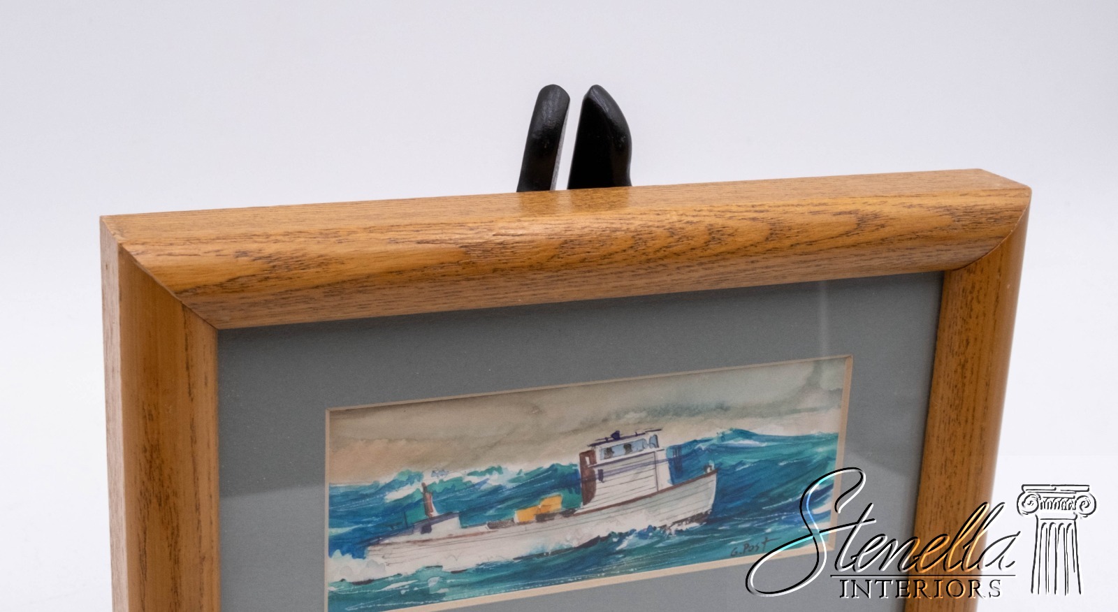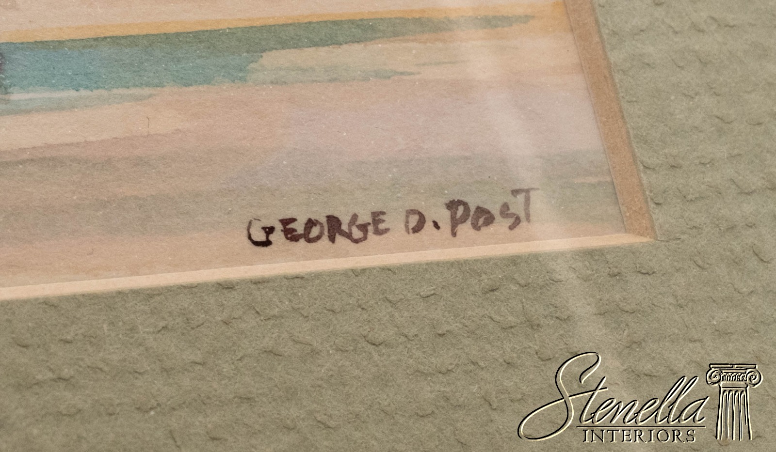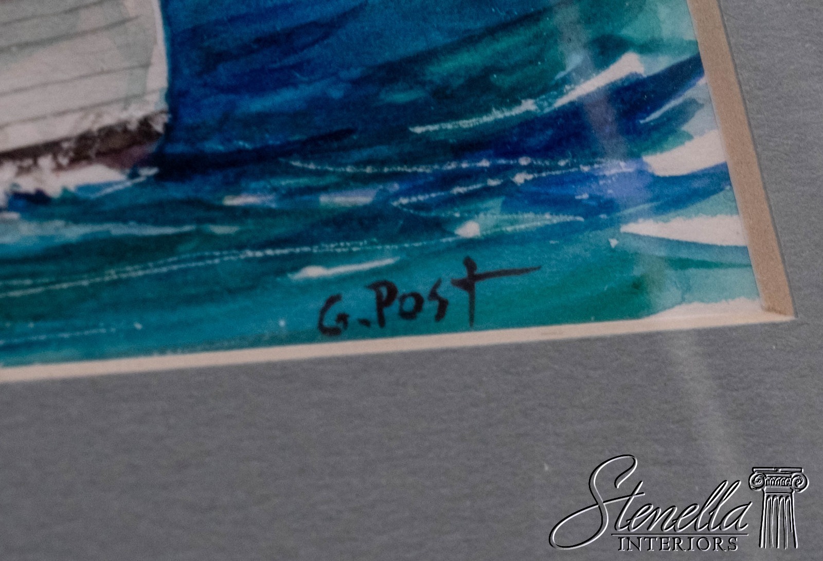 Details: Fishing boat in rough weather and 2 fisherman with poles. George D. Post (1906-1997), also known as George Booth Post, was an American watercolorist and art educator known for his contributions to the California School of Watercolor. Other painting 11.5 x 1 x 10.5