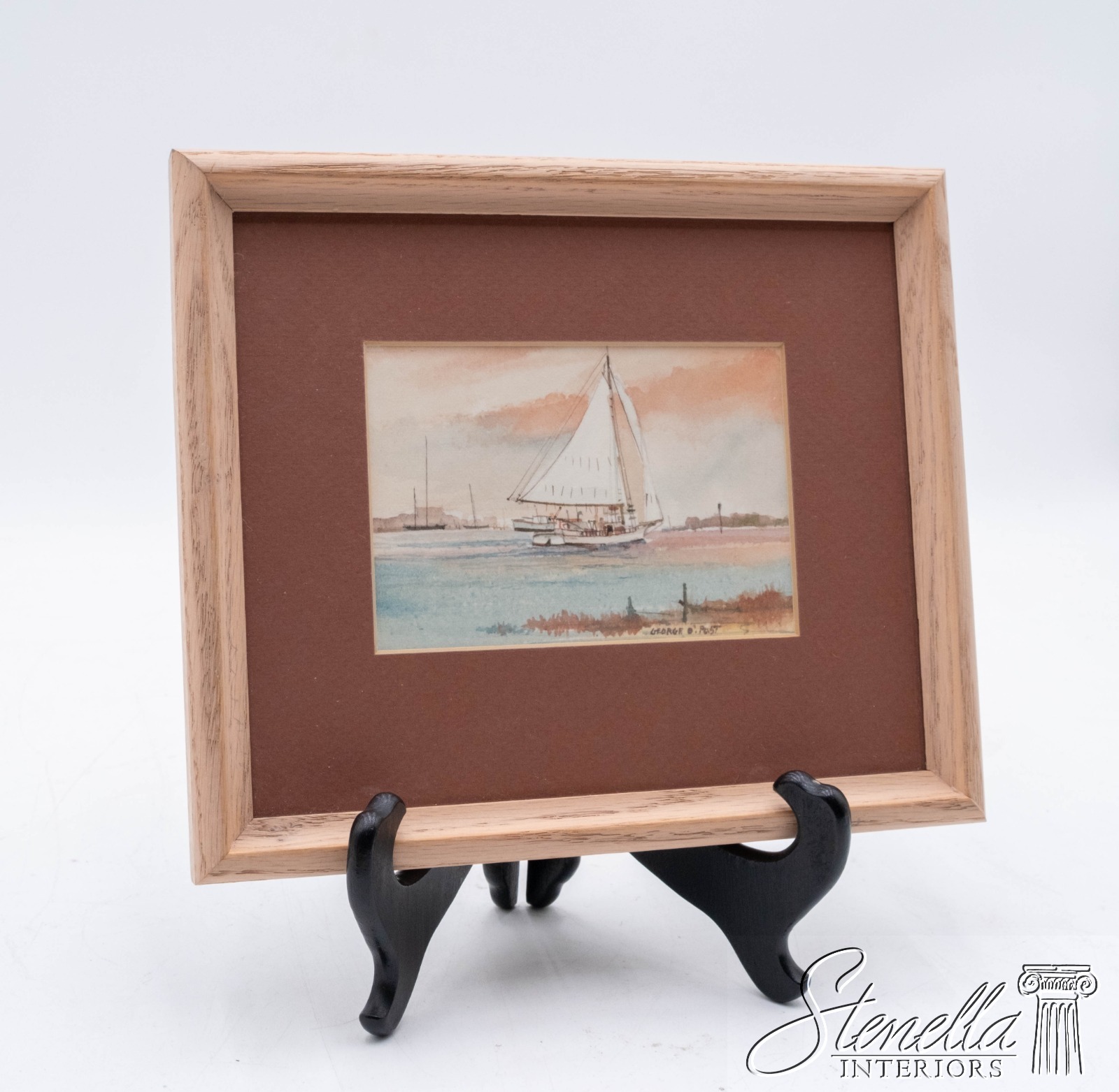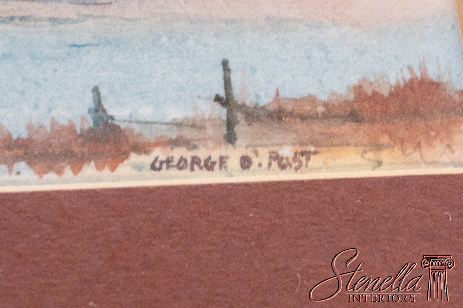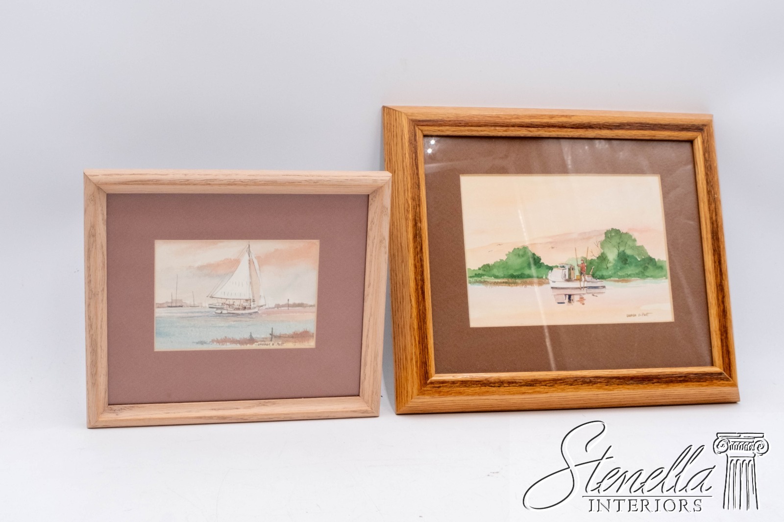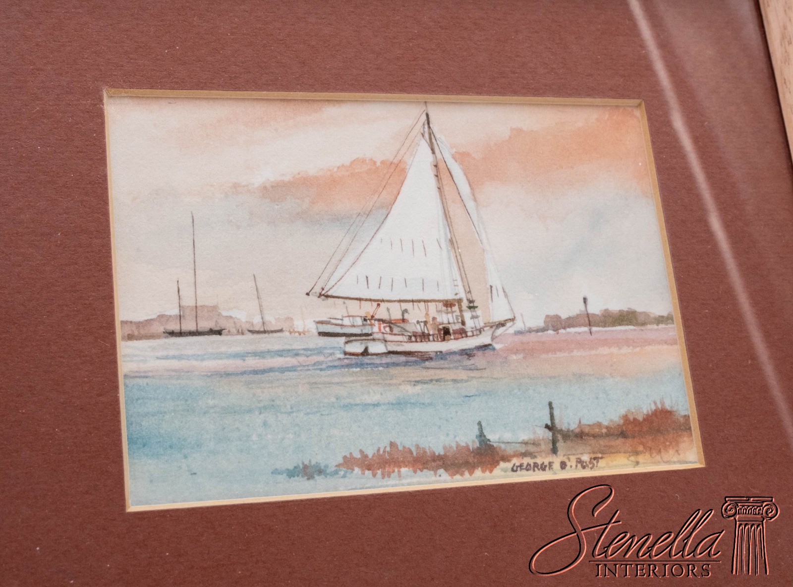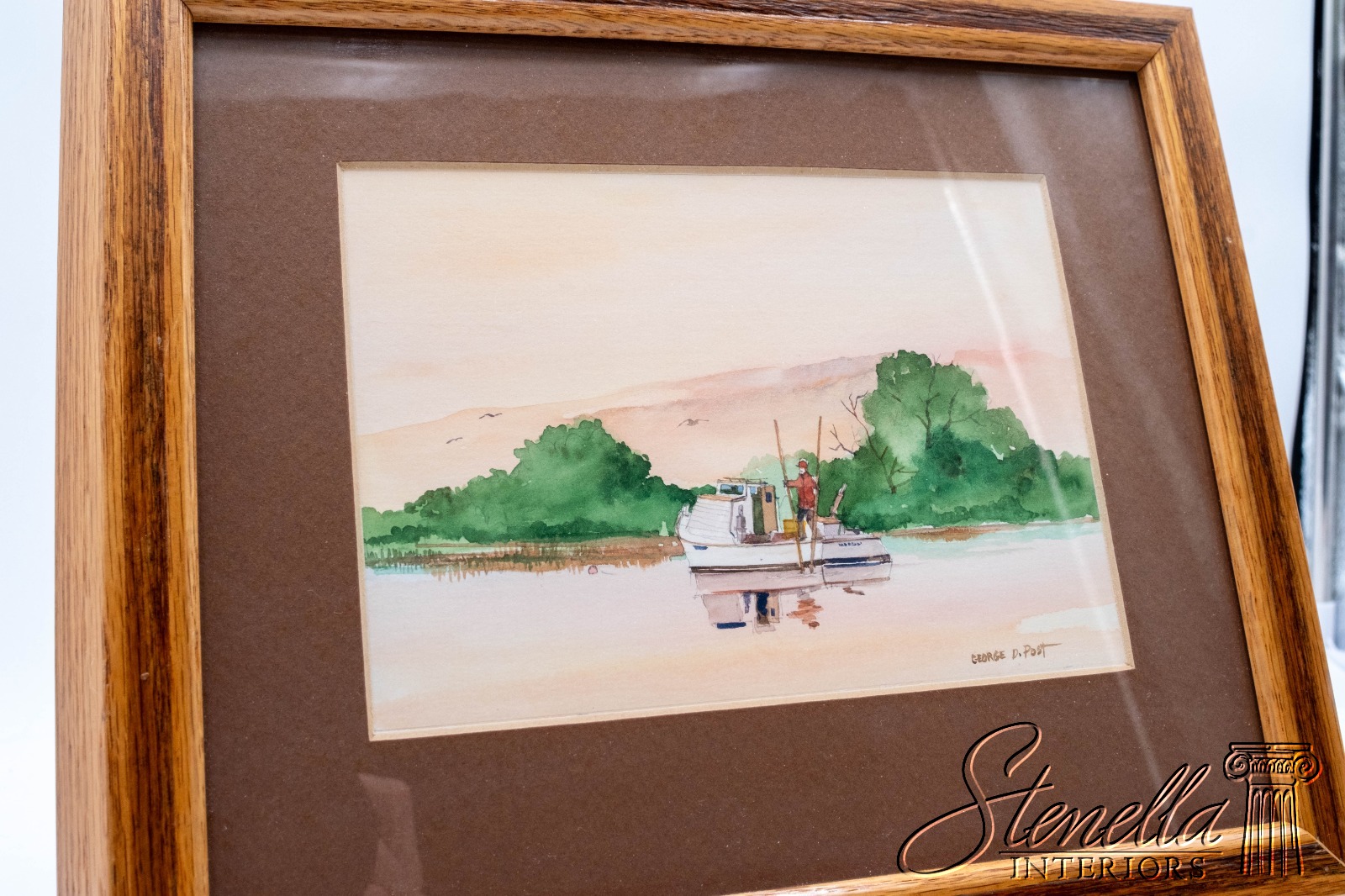 F69311: Pair of Nautical Watercolor Boats Fishing Paintings Signed George D Post