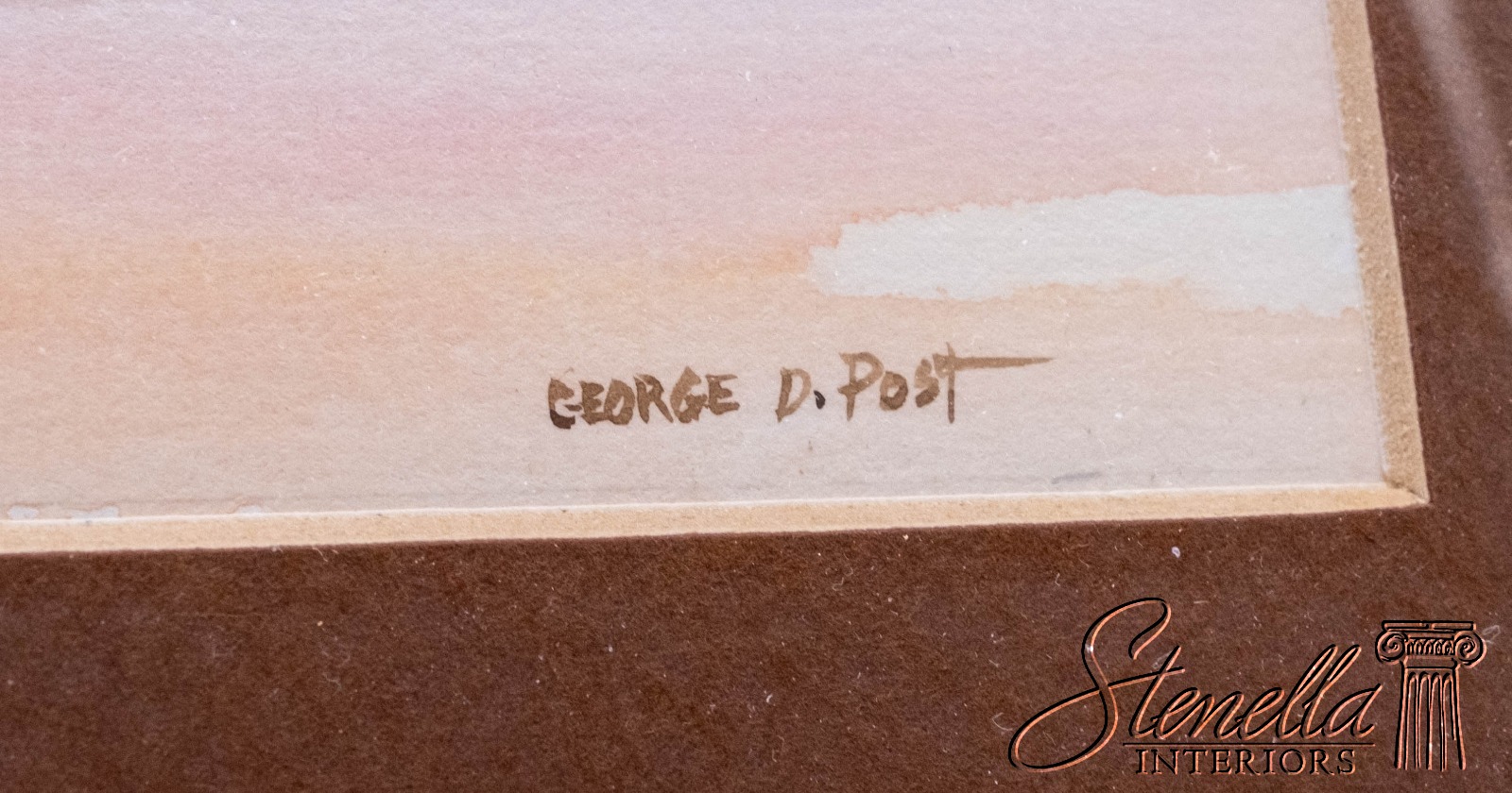 Details: Fisherman out alone and sailboats on the water. George D. Post (1906-1997), also known as George Booth Post, was an American watercolorist and art educator known for his contributions to the California School of Watercolor. Other painting 11.5 x 1 x 10