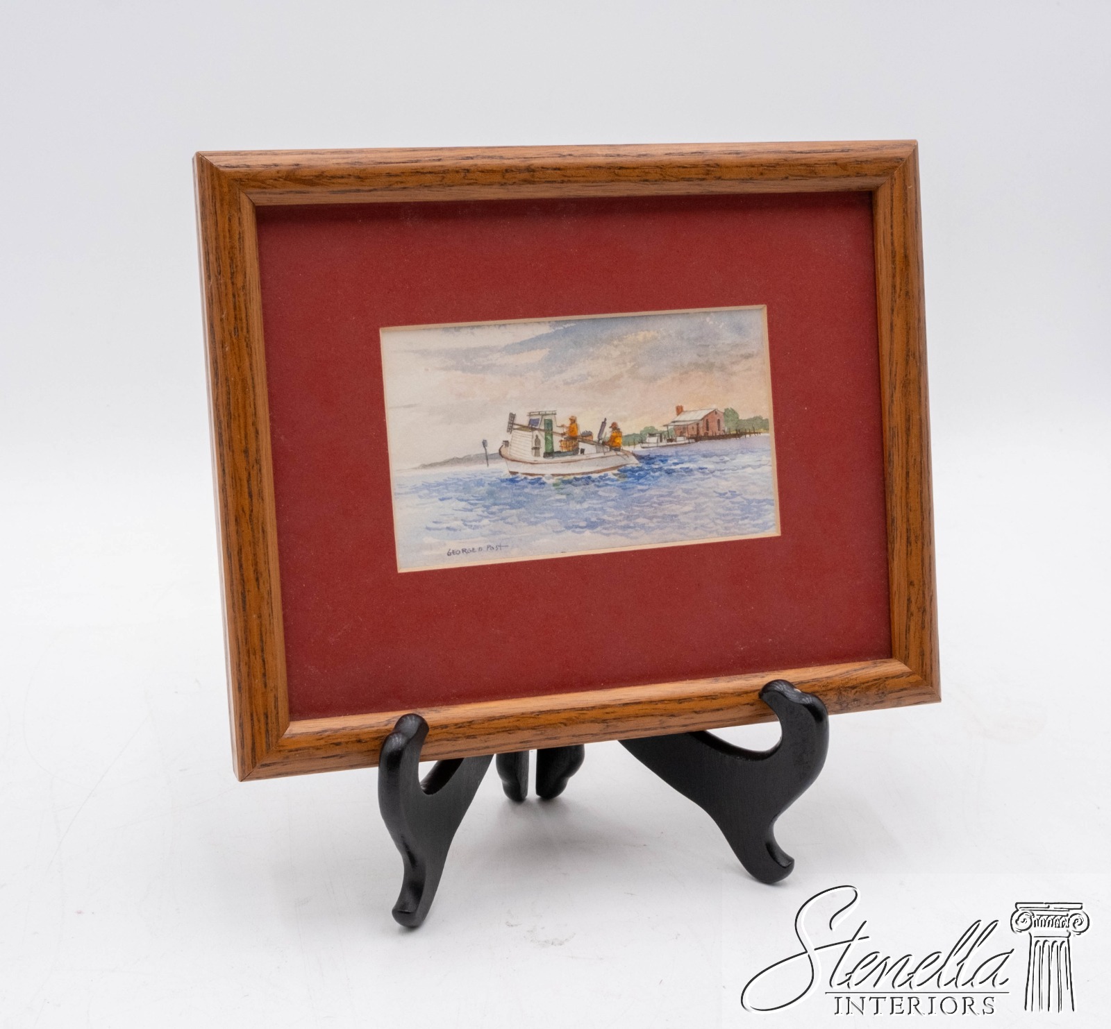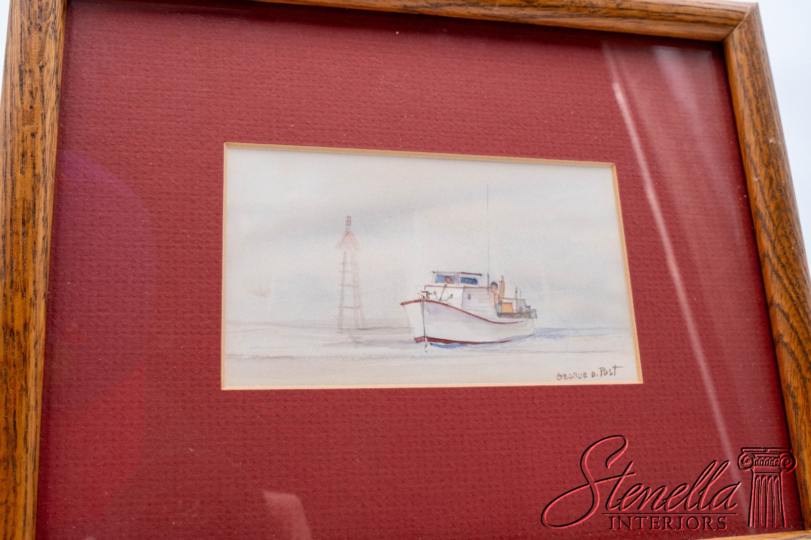 F69312: Pair of Nautical Watercolor Fishing Boat Channel Marker Paintings Signed George D Post