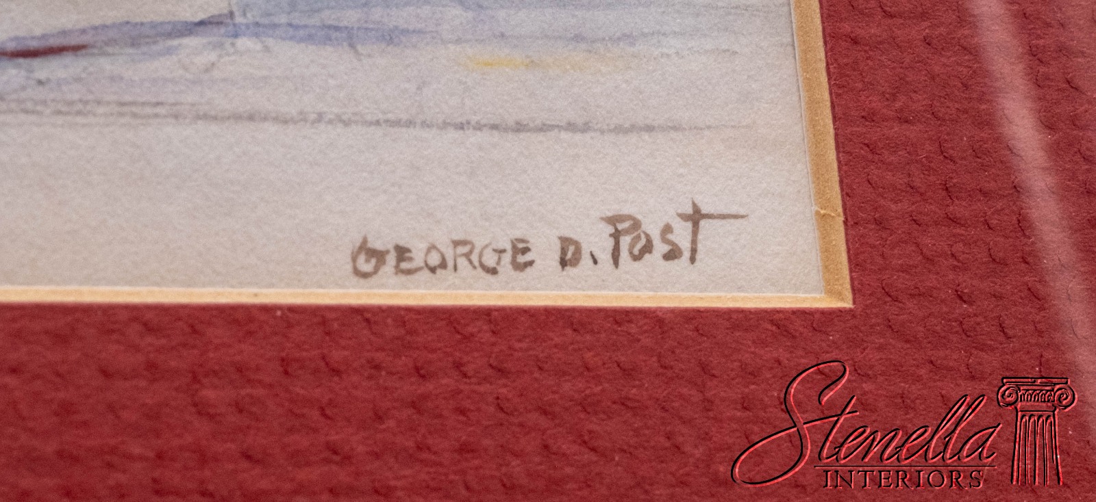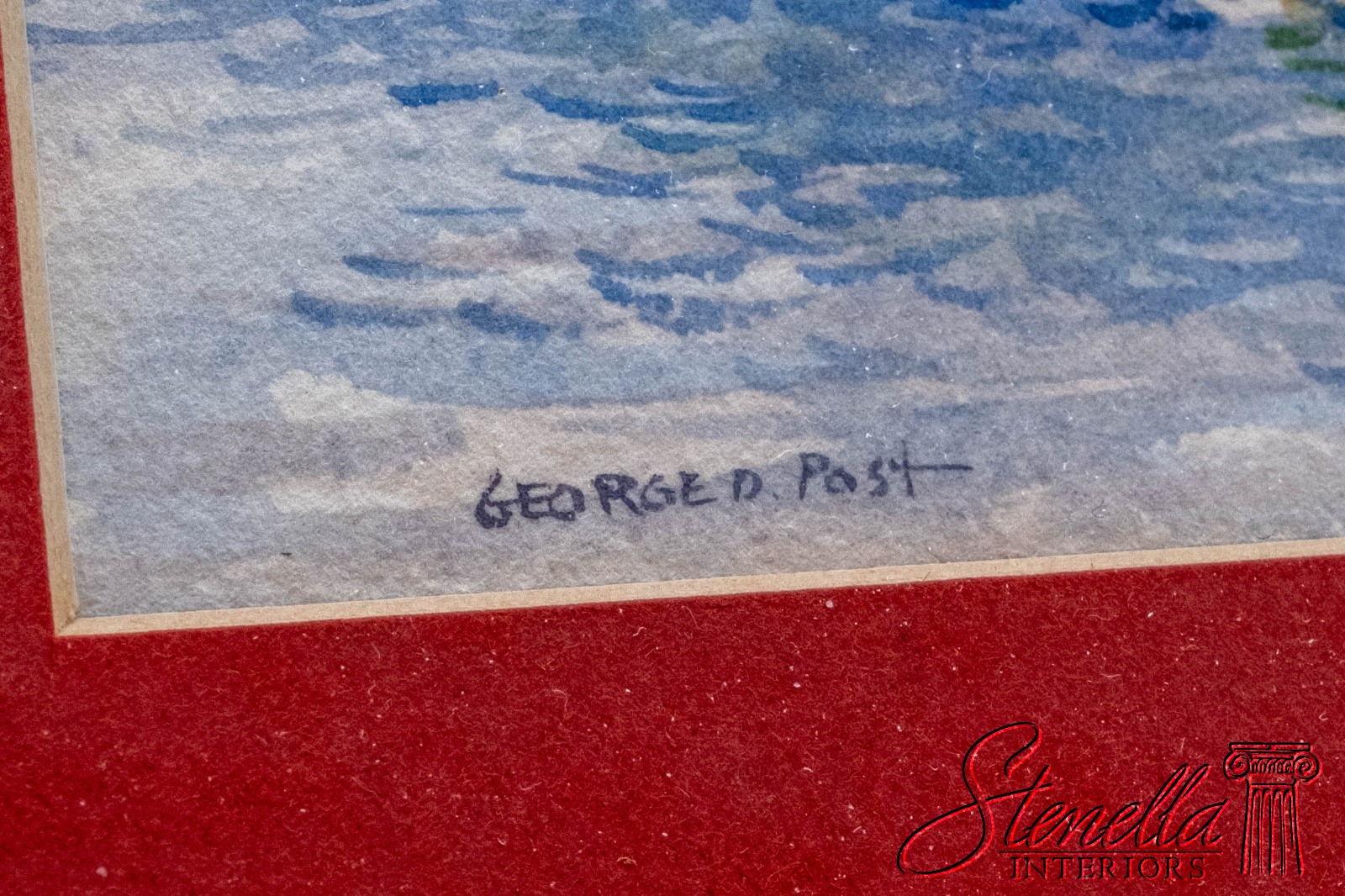 Details: Fishing boat near buoy and boat near channel marker. George D. Post (1906-1997), also known as George Booth Post, was an American watercolorist and art educator known for his contributions to the California School of Watercolor. Other painting 10 x 1 x 8