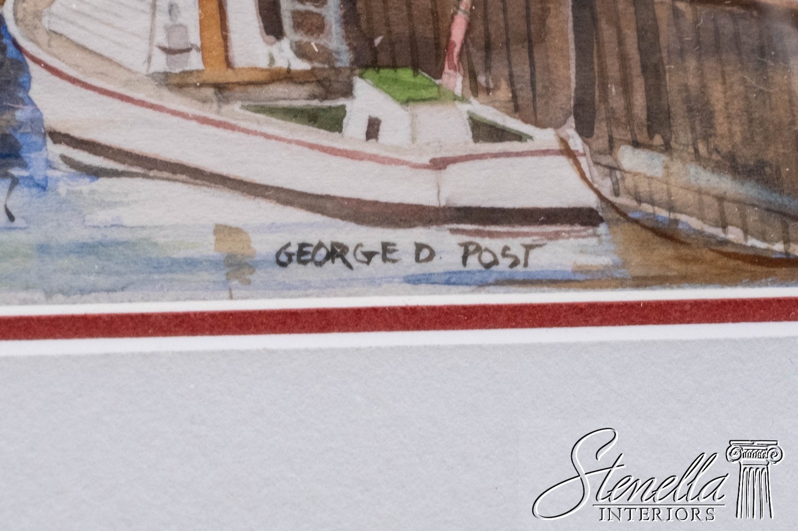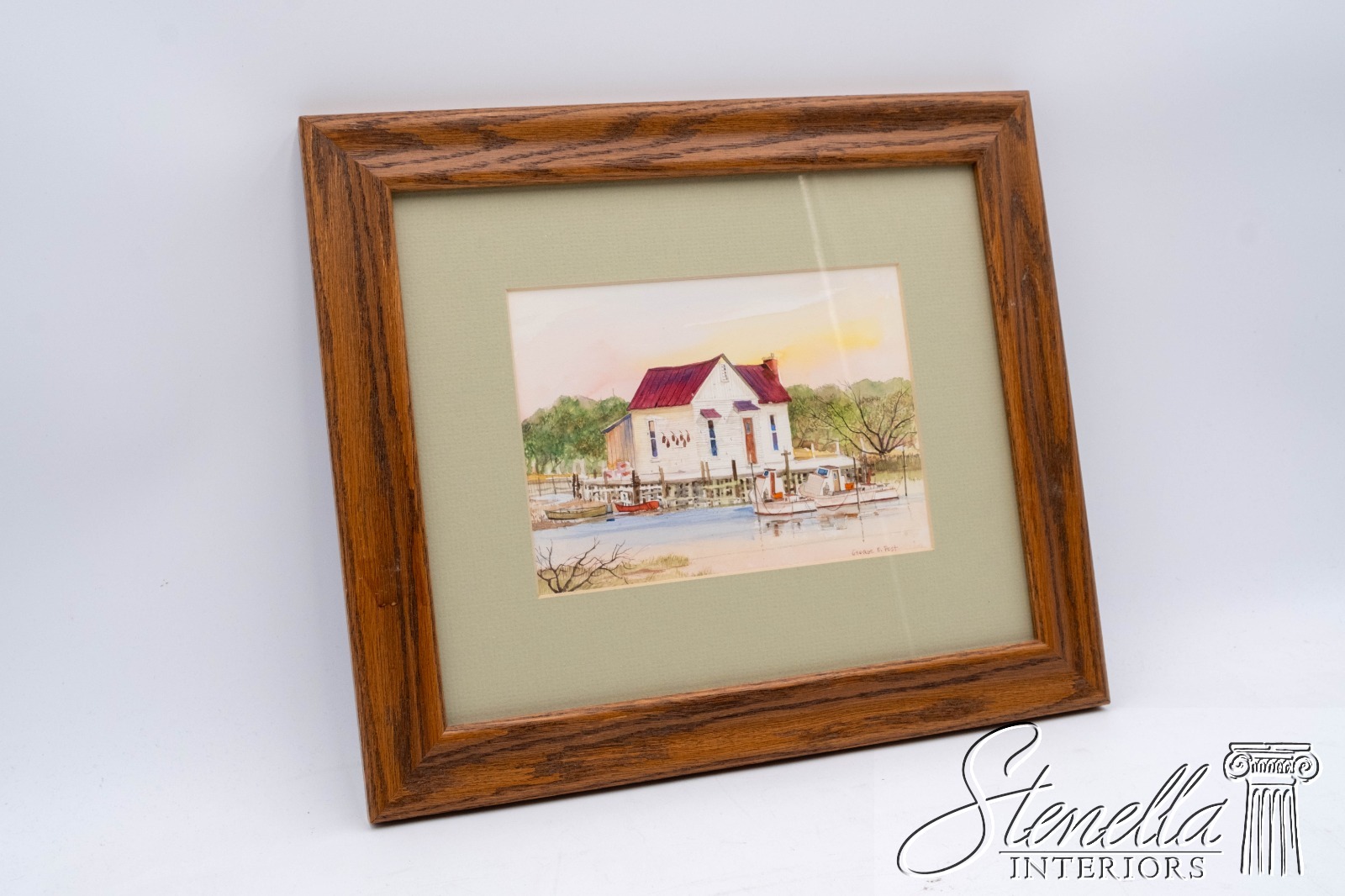 Details: Fishing boats docked at home and fish market restaurant. George D. Post (1906-1997), also known as George Booth Post, was an American watercolorist and art educator known for his contributions to the California School of Watercolor. Other painting 14.5 x 1 x 12.5