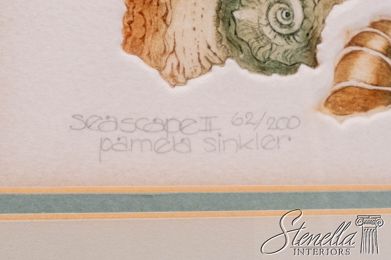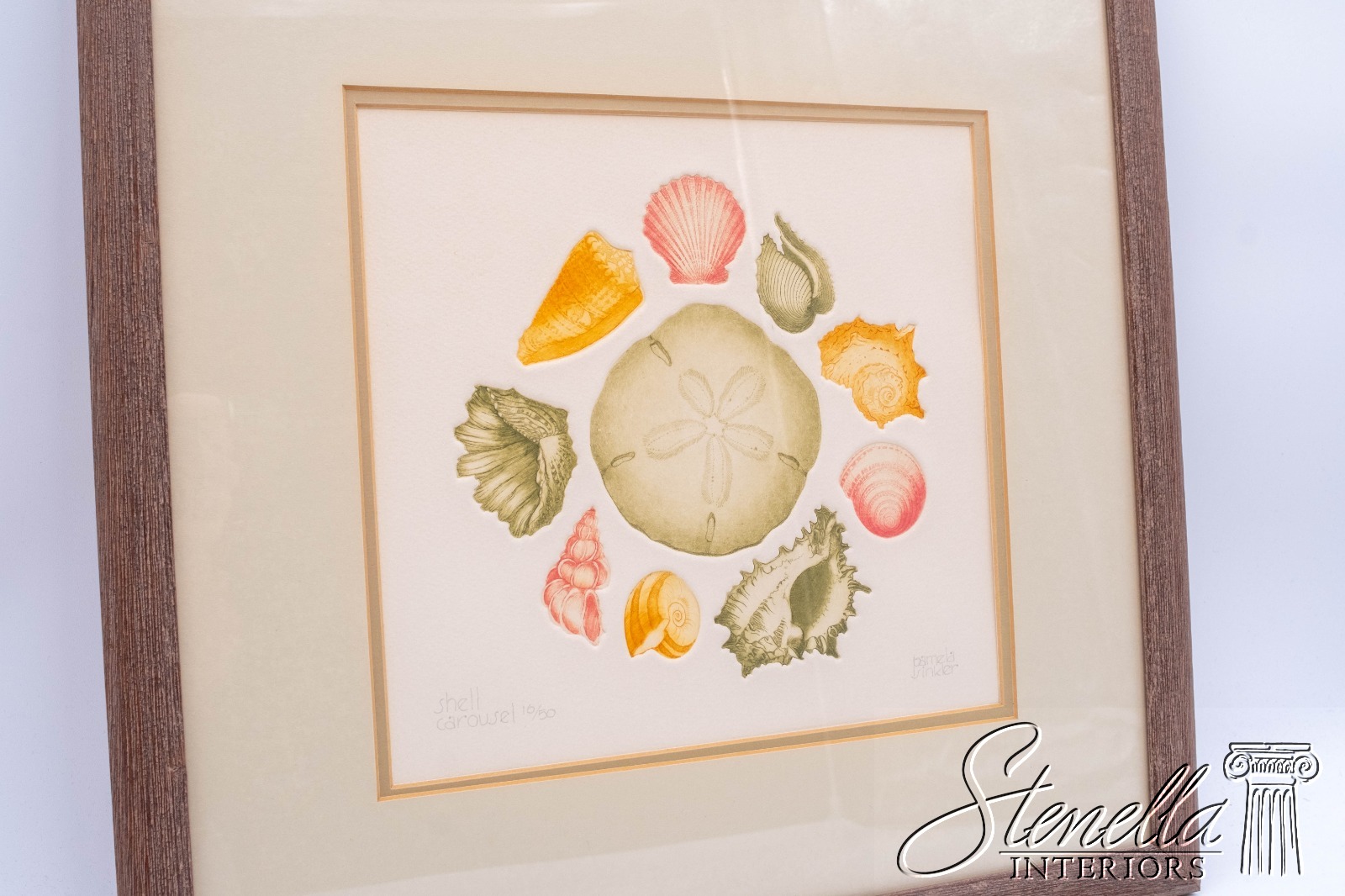 Details: "Seascape II" #62/500 and "Shell Carousel" #16/50 study art pieces. Pamela Sinkler (1938-) has been a working artist living in the Philadelphia area since the 1970s. She has worked in intaglio etching, watercolor, pastels, pencil and oil, and has won prizes at juried and invitational shows. Other painting 17.5 x 1 x 17