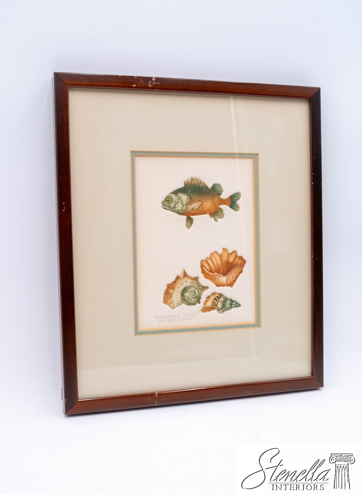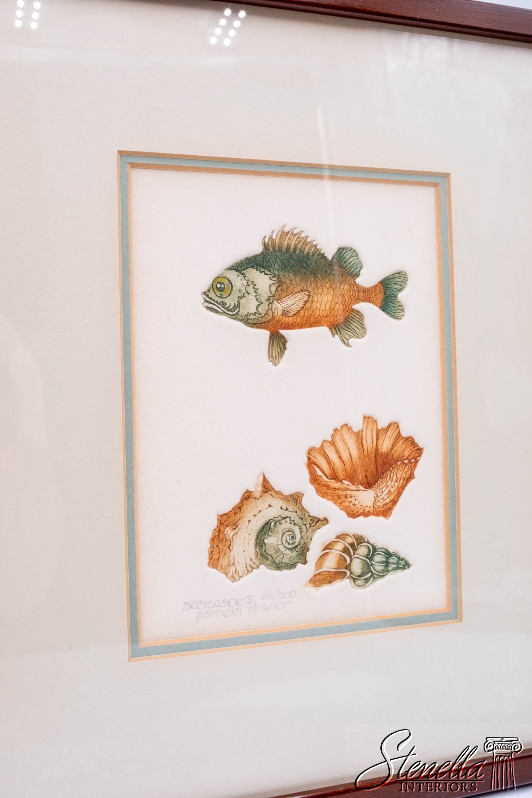 F69315: Pair of Framed Signed & Numbered Art Study Nautical Shells Fish Drawings Pamela Sinkler