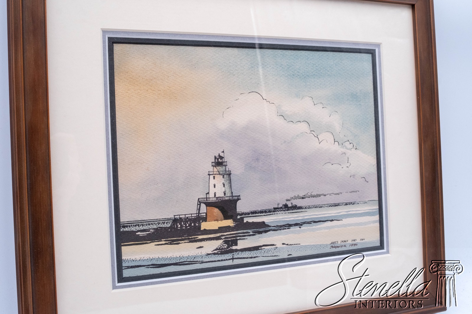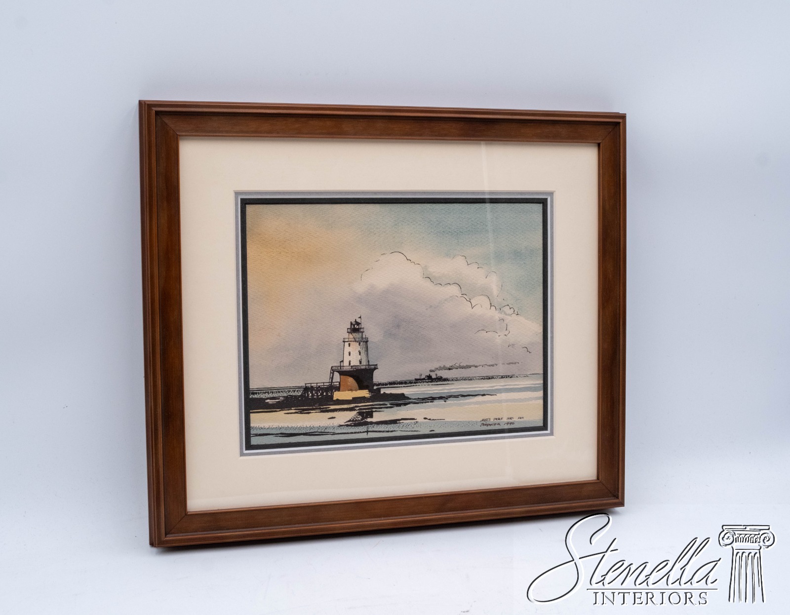 Details: Detailed art piece depicting a lighthouse and fishing boat in the distance. James Drake Iams has been painting the Chesapeake Bay since the mid 1950's, and he has recorded his observations with the knowledge of the sailor and the eye of the painter