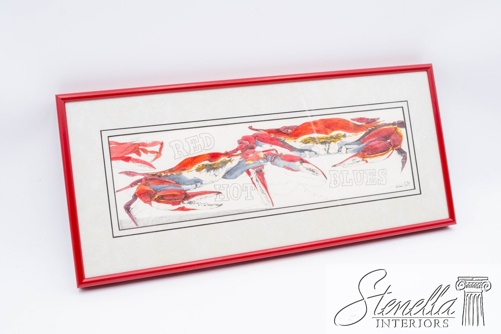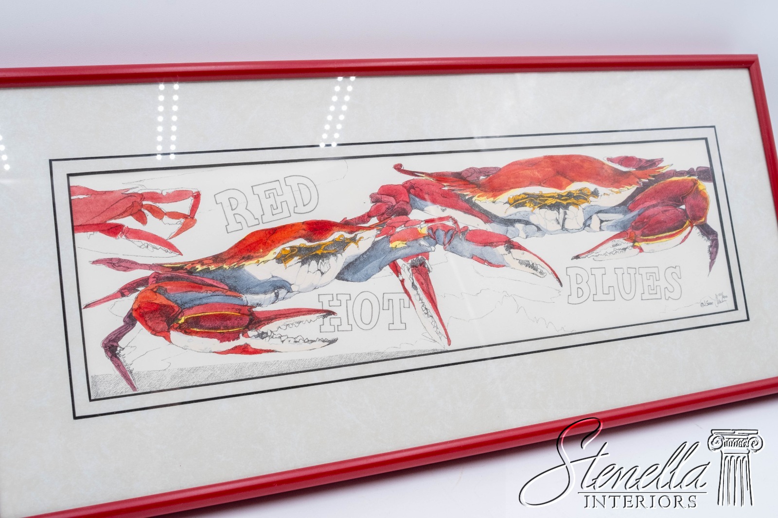 F69323: "Red Hot Blues" Crabs Drawing Watercolor Signed J. Swan Numbered