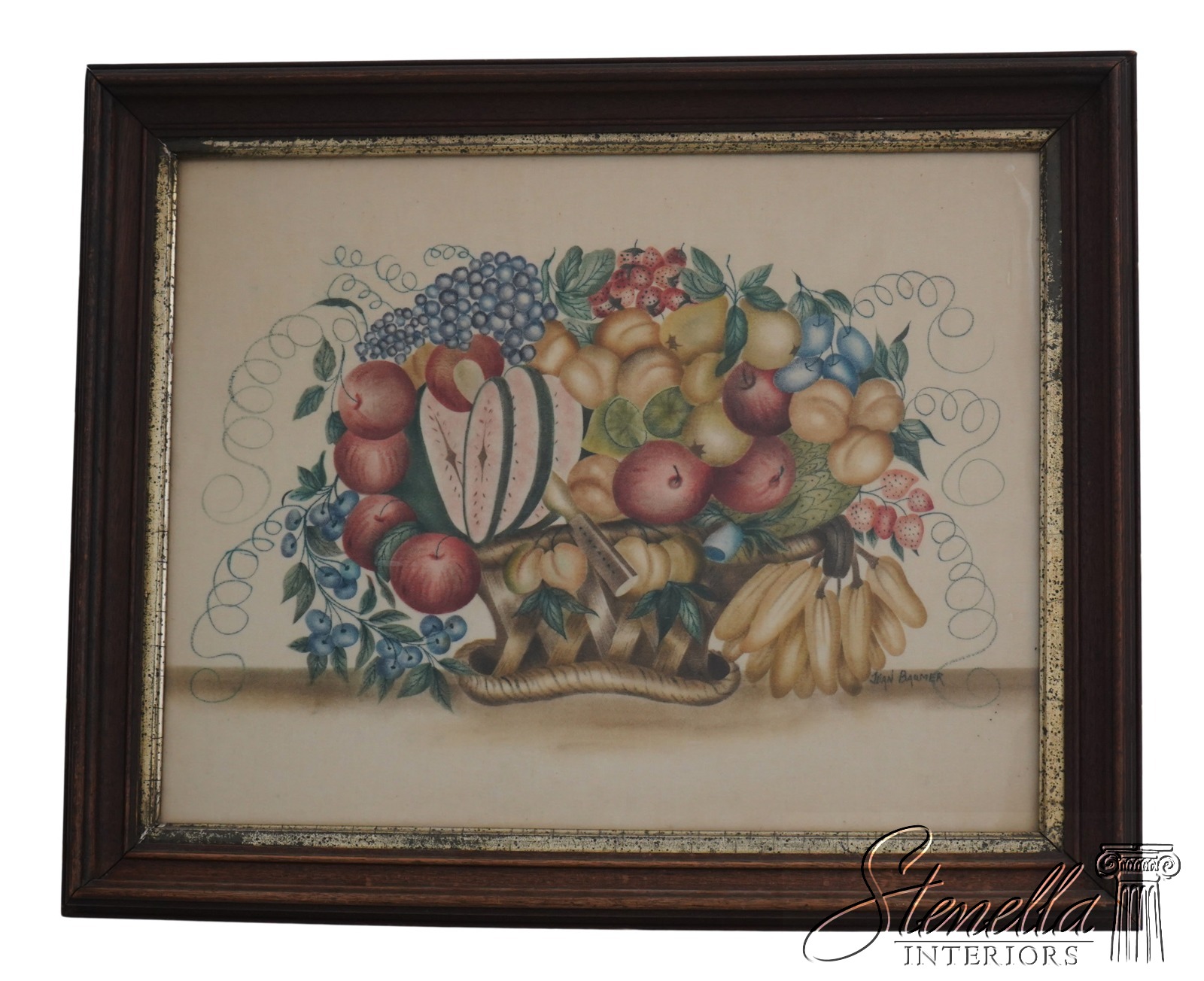 F70987: Still Life Fruit Basket Jean Baumer Theorem Painting Stencil Artwork On Cotton Signed