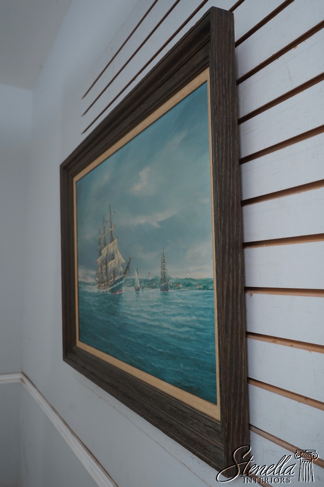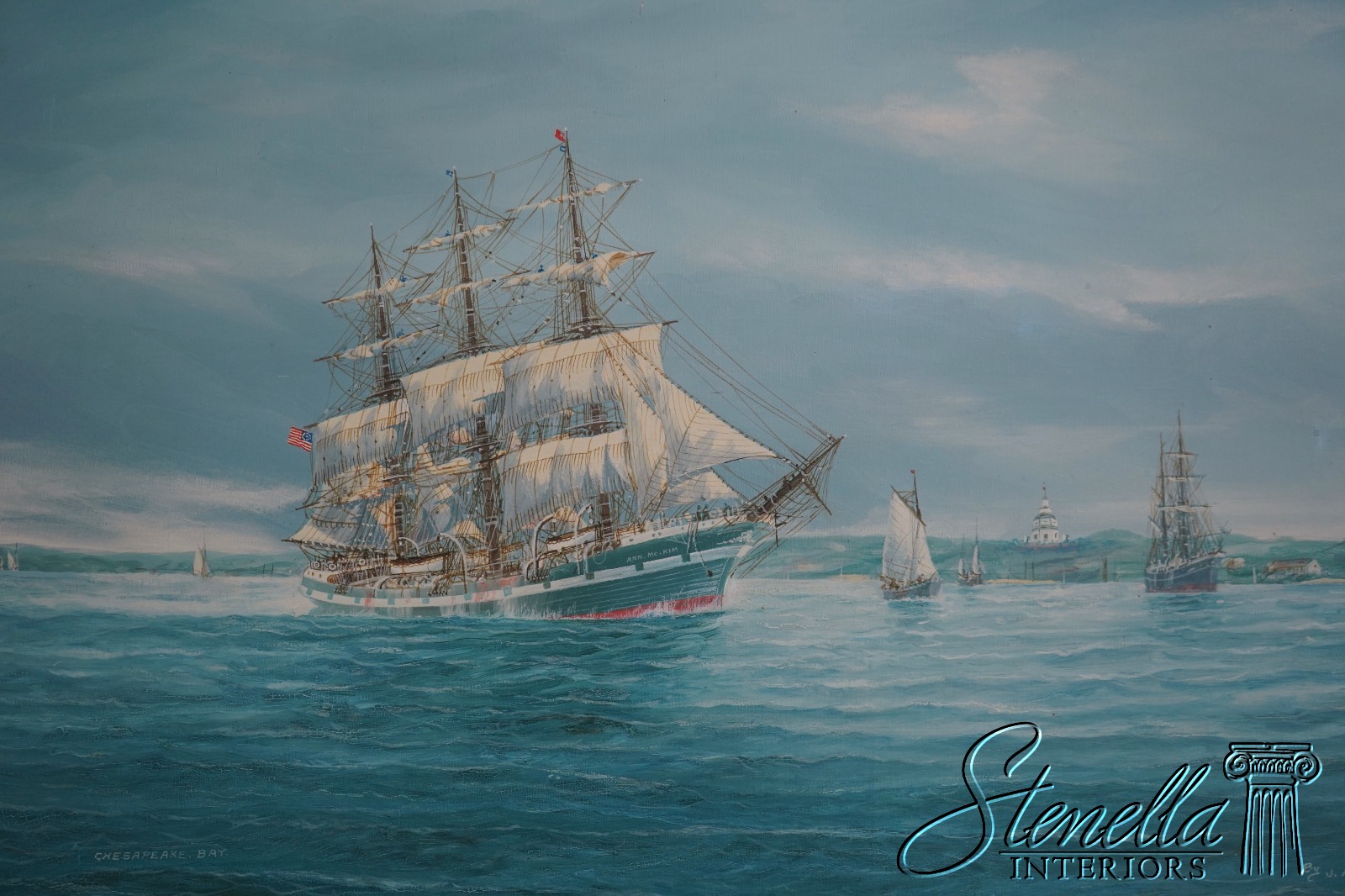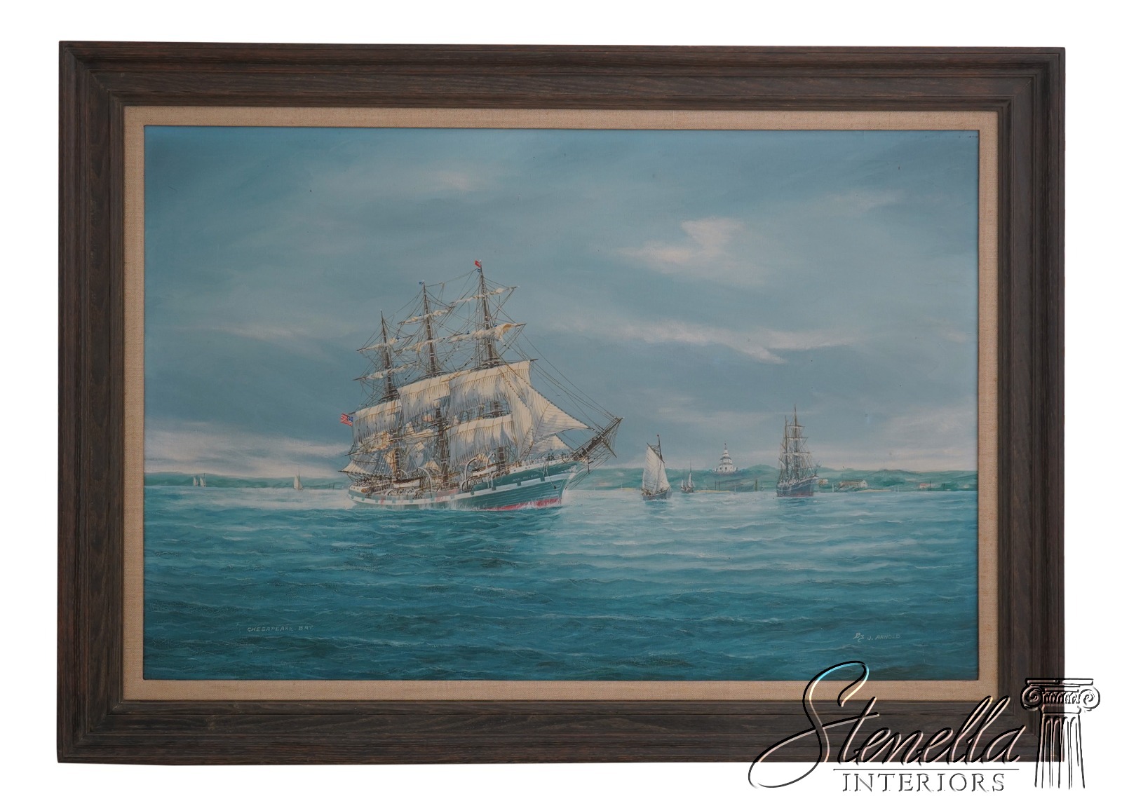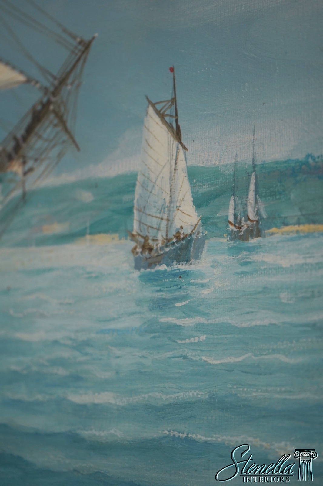 F70988: Vintage Tall Sailing Ships Oil Painting On Canvas Of Chesapeake Bay Signed