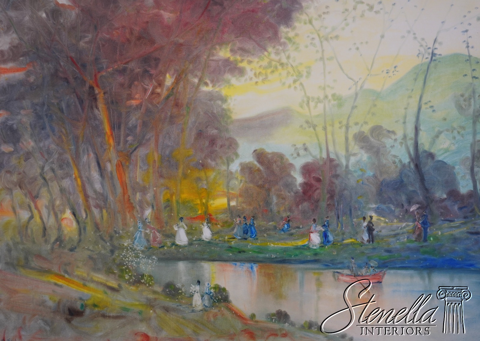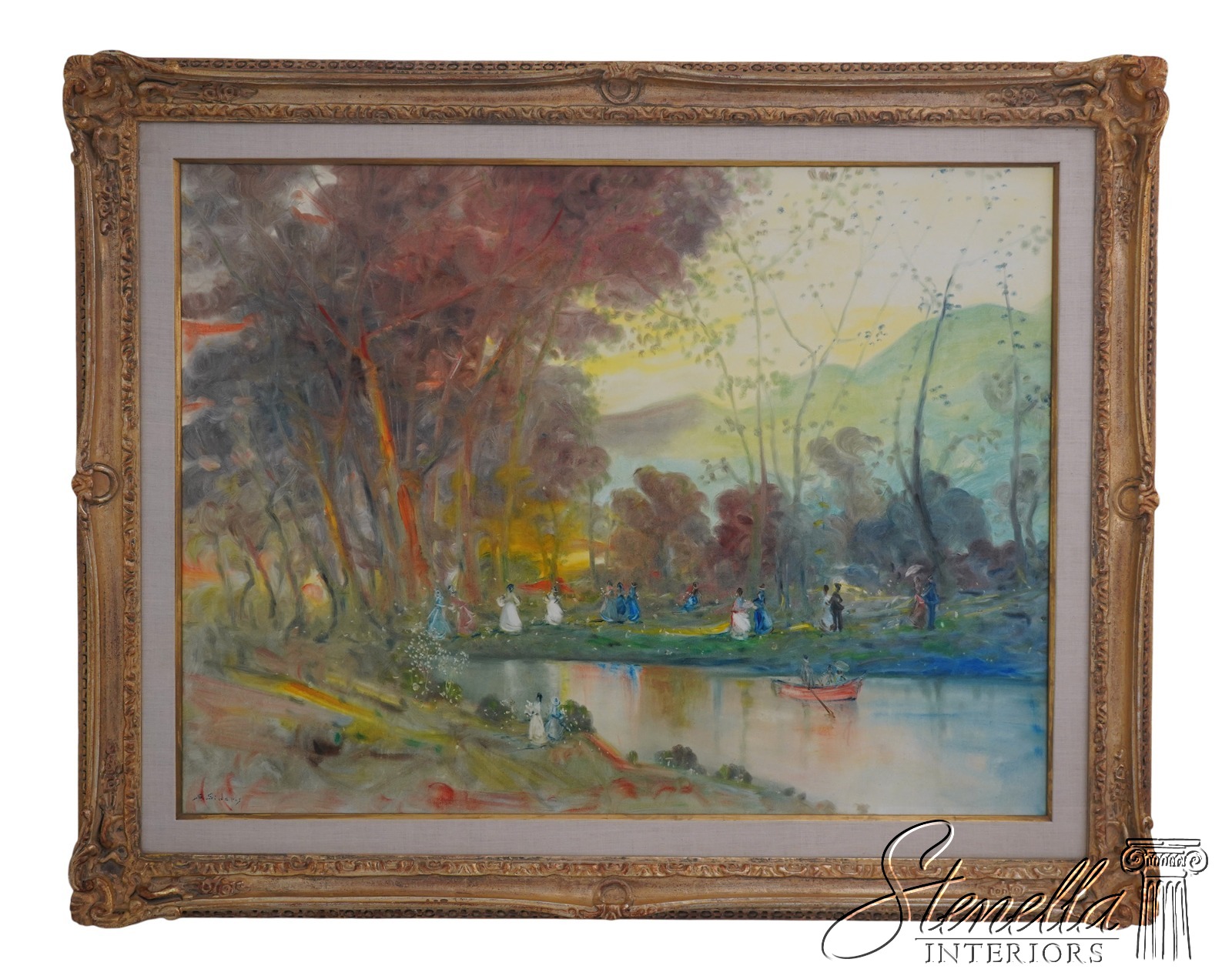 - F71523: A. SIDERIS Impressionist Lake Scene Oil Painting On Canvas
