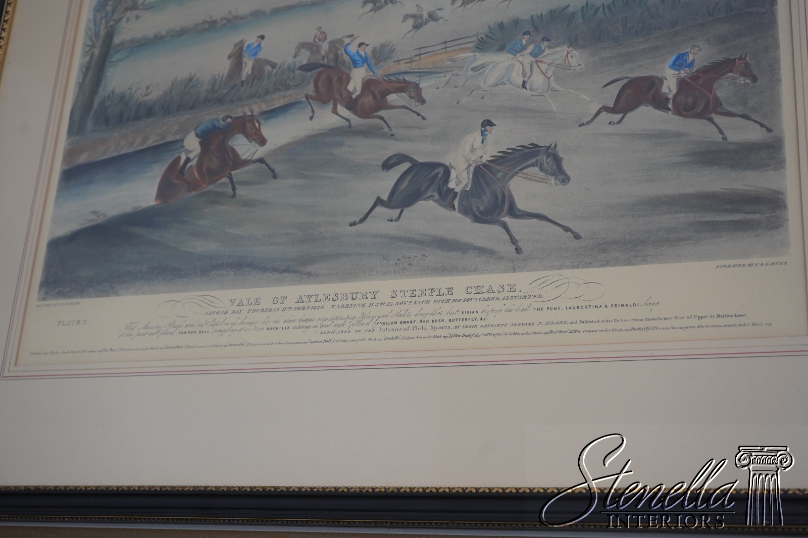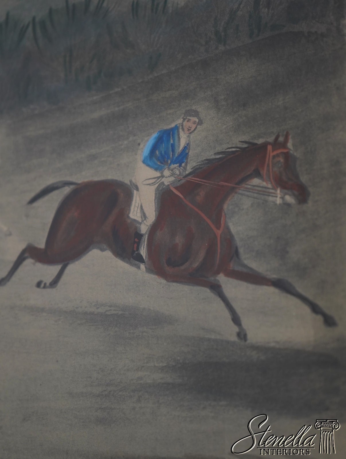 F72248: Vintage Hand Painted Horse Racing Engraving Etching