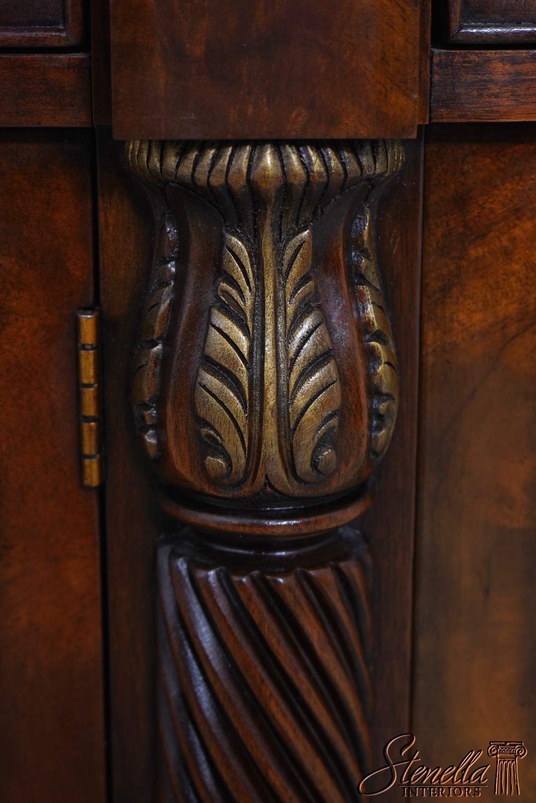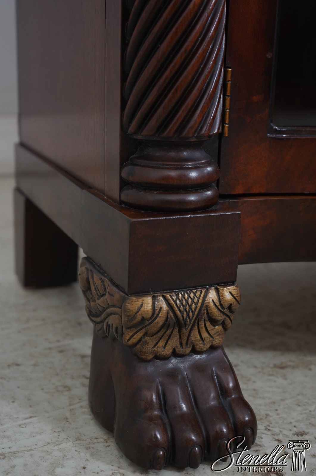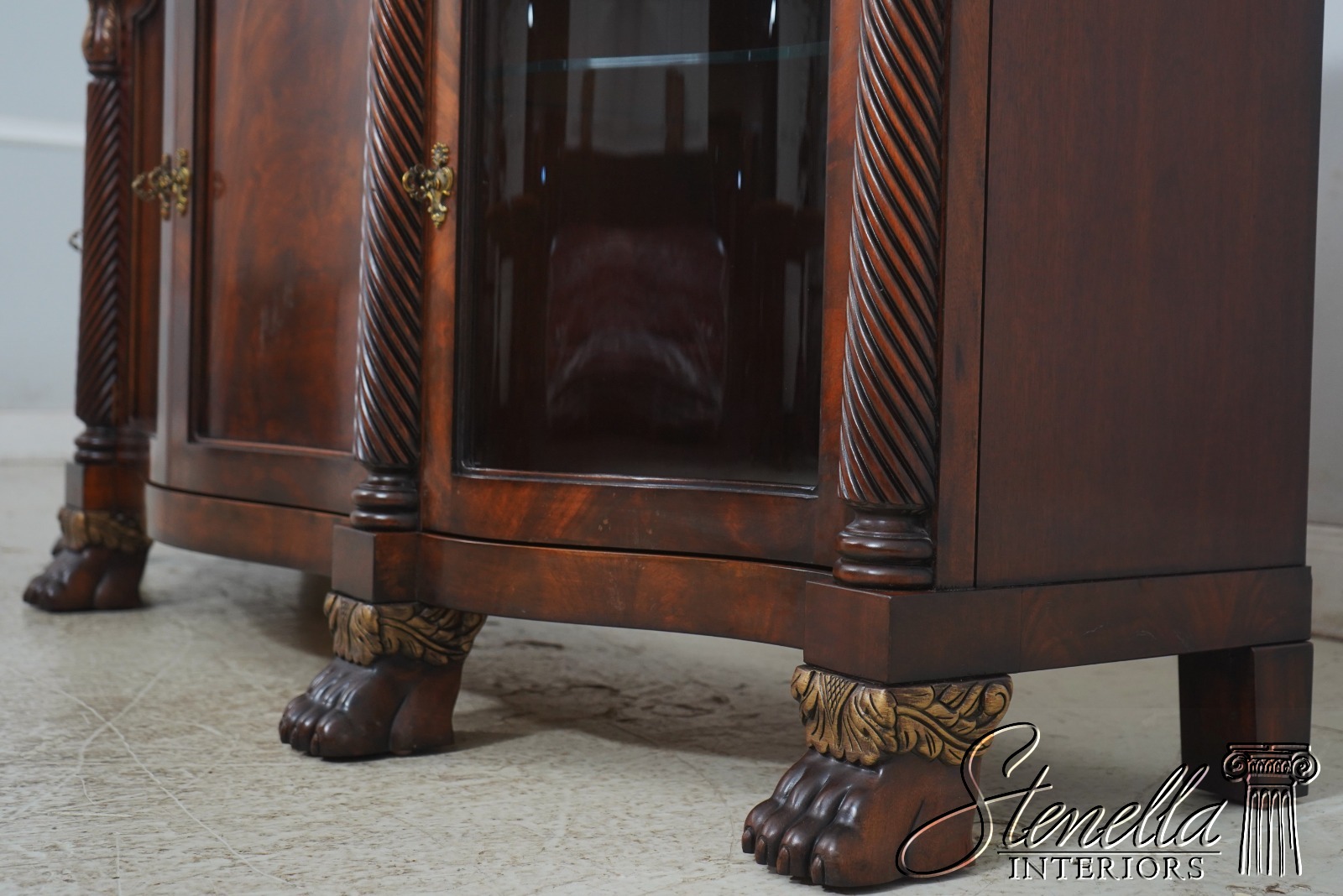 Details: Empire Style Historic Natchez Collection Mahogany Adjustable Shelves Ball & Claw Feet Dovetailed Drawer Construction Carved Details High Quality Construction Large Impressive Cabinet Lighted Interior Mirrored Back Individual Pane Glass Doors Solid Brass Hardware Curved Glass Curio Doors 2 Felt Lined Drawers Offered @ Fraction Original Retail Cost
