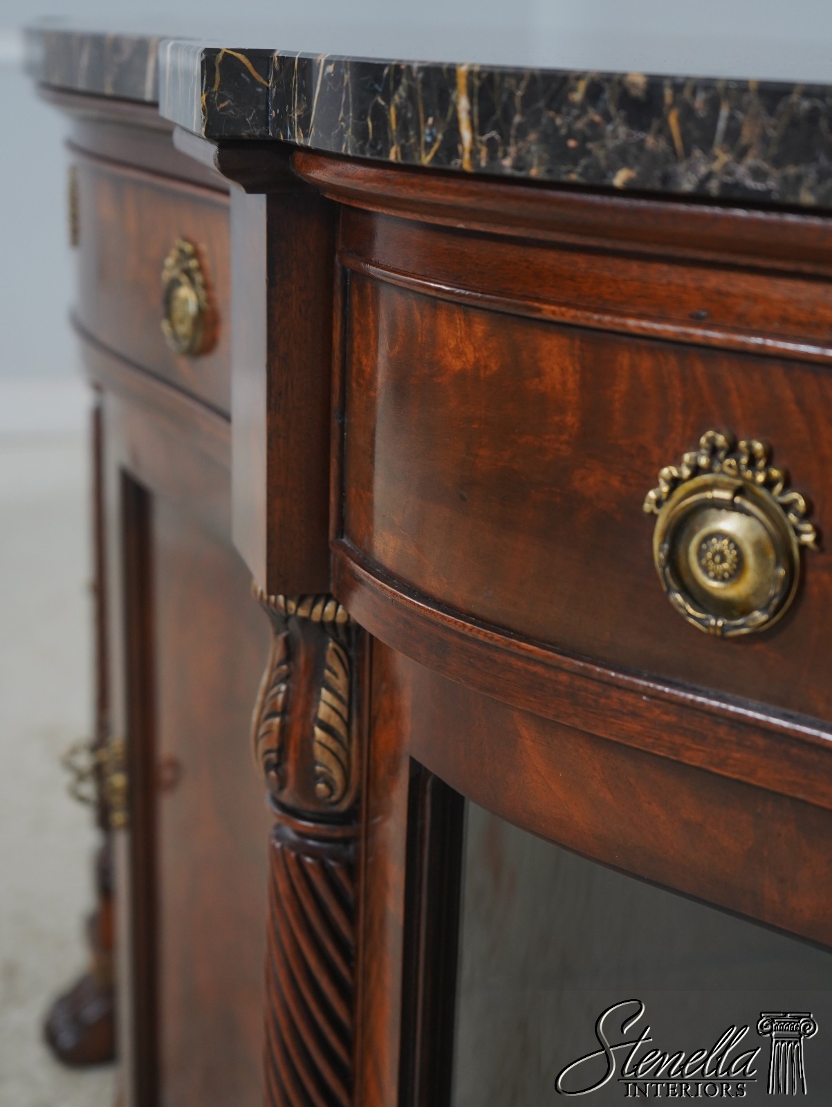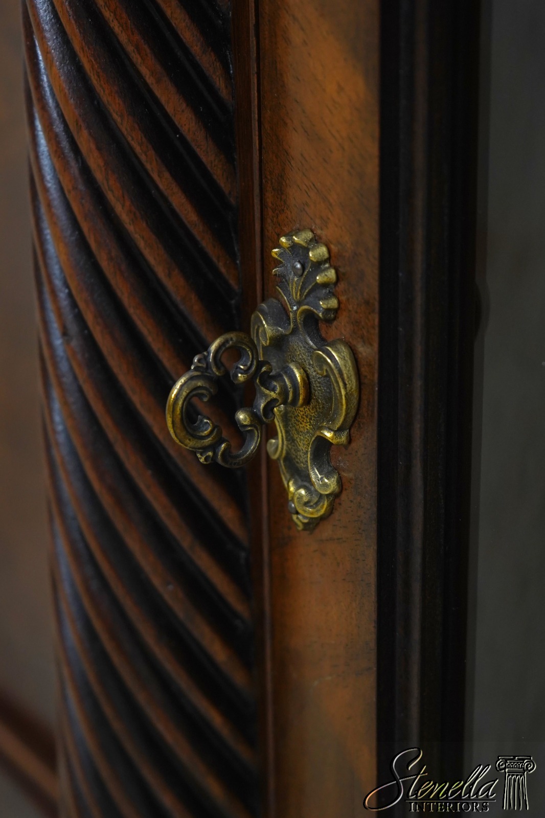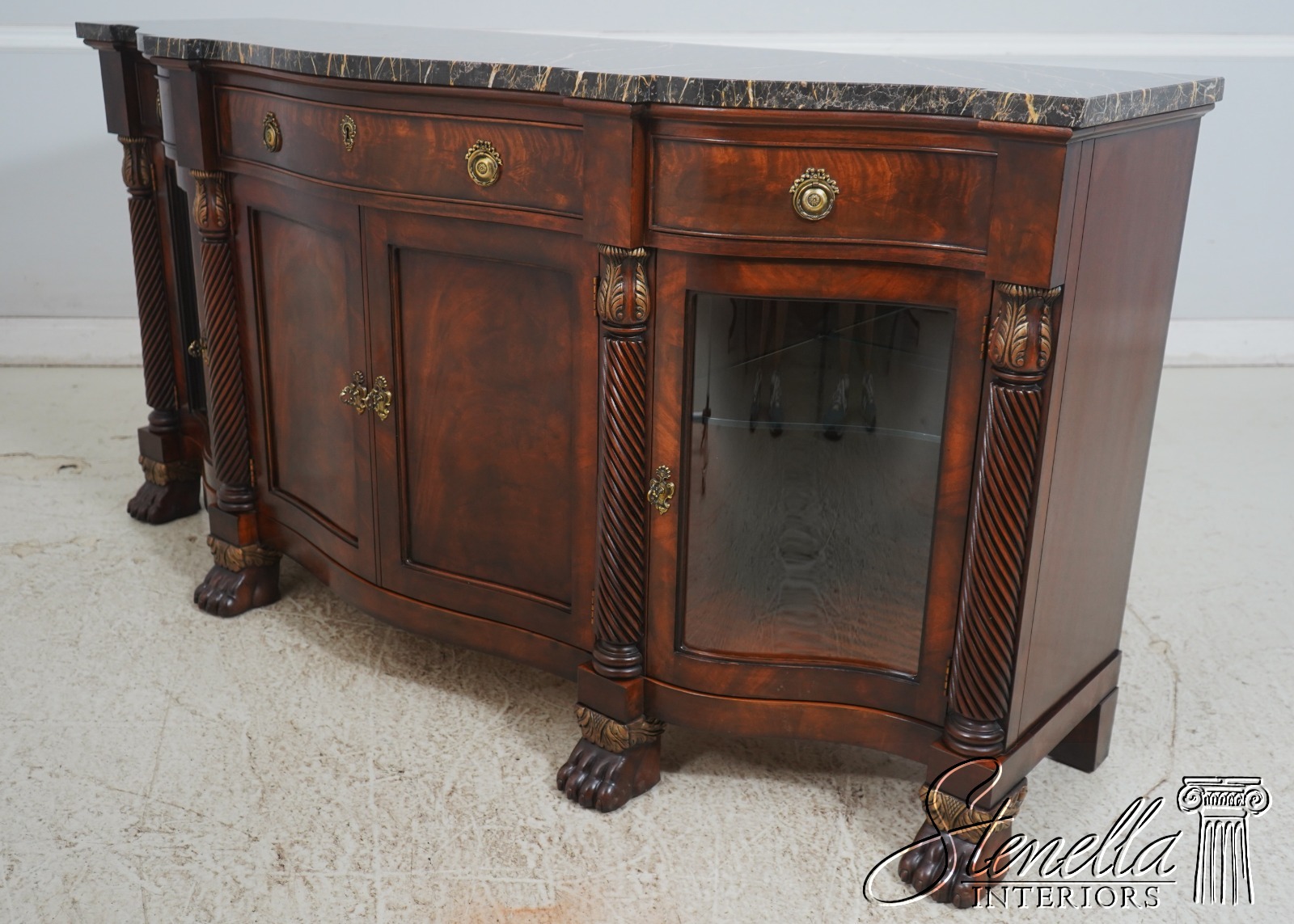 Details: Empire Style Historic Natchez Collection Mahogany Adjustable Shelves Ball & Claw Feet Dovetailed Drawer Construction Carved Details High Quality Construction Large Impressive Cabinet Lighted Interior Mirrored Back Individual Pane Glass Doors Solid Brass Hardware Curved Glass Curio Doors 2 Felt Lined Drawers Offered @ Fraction Original Retail Cost
