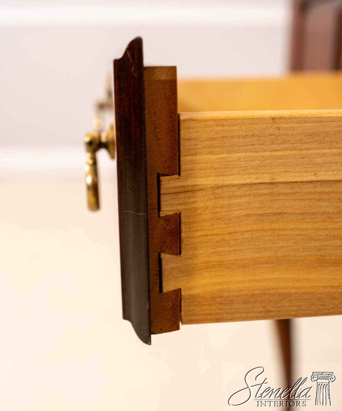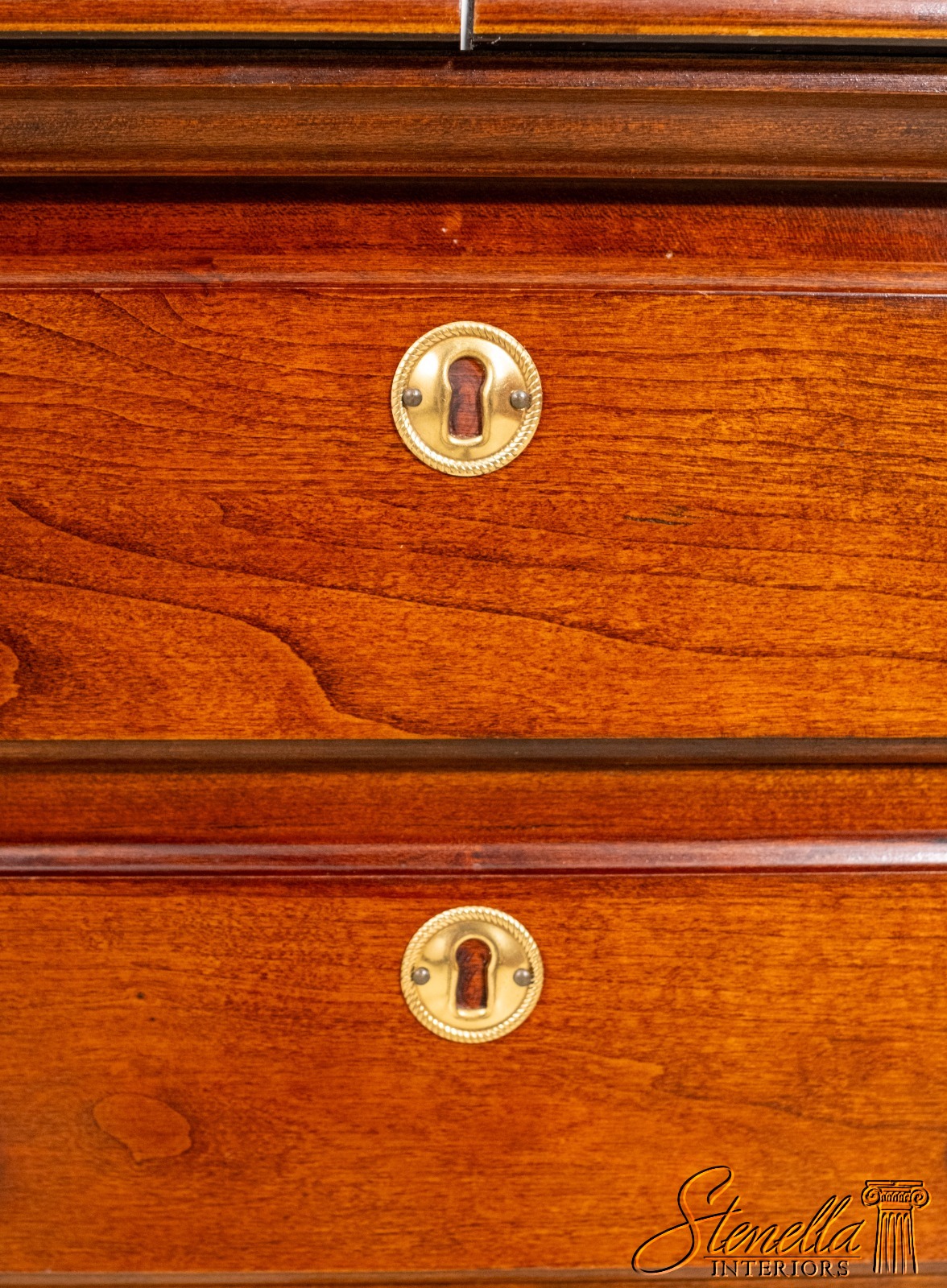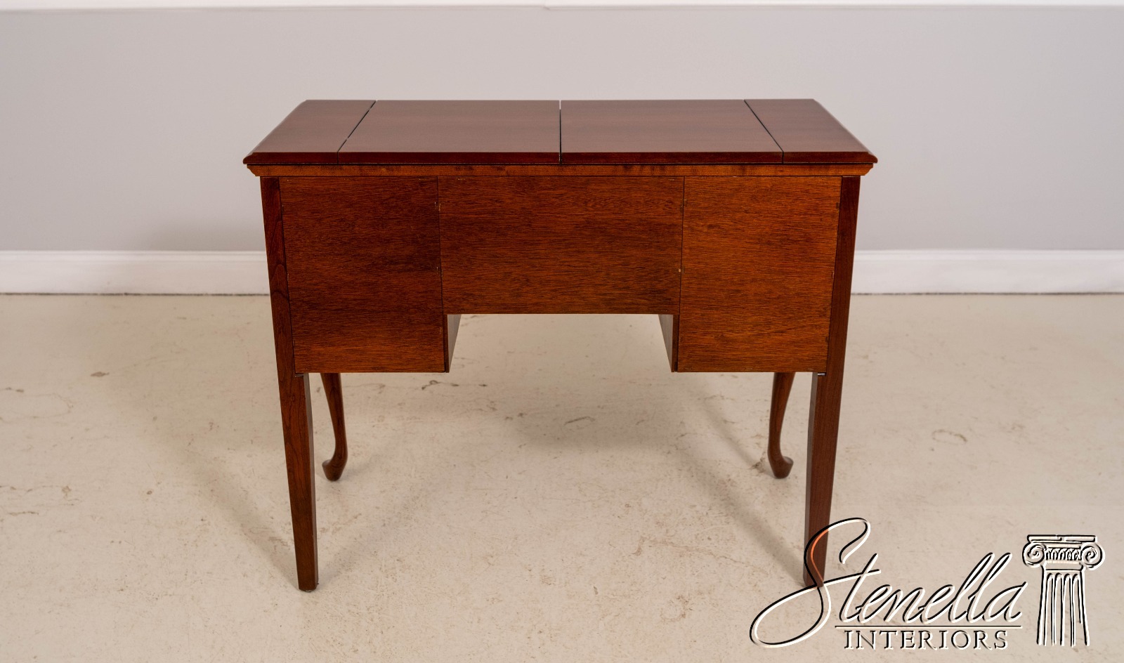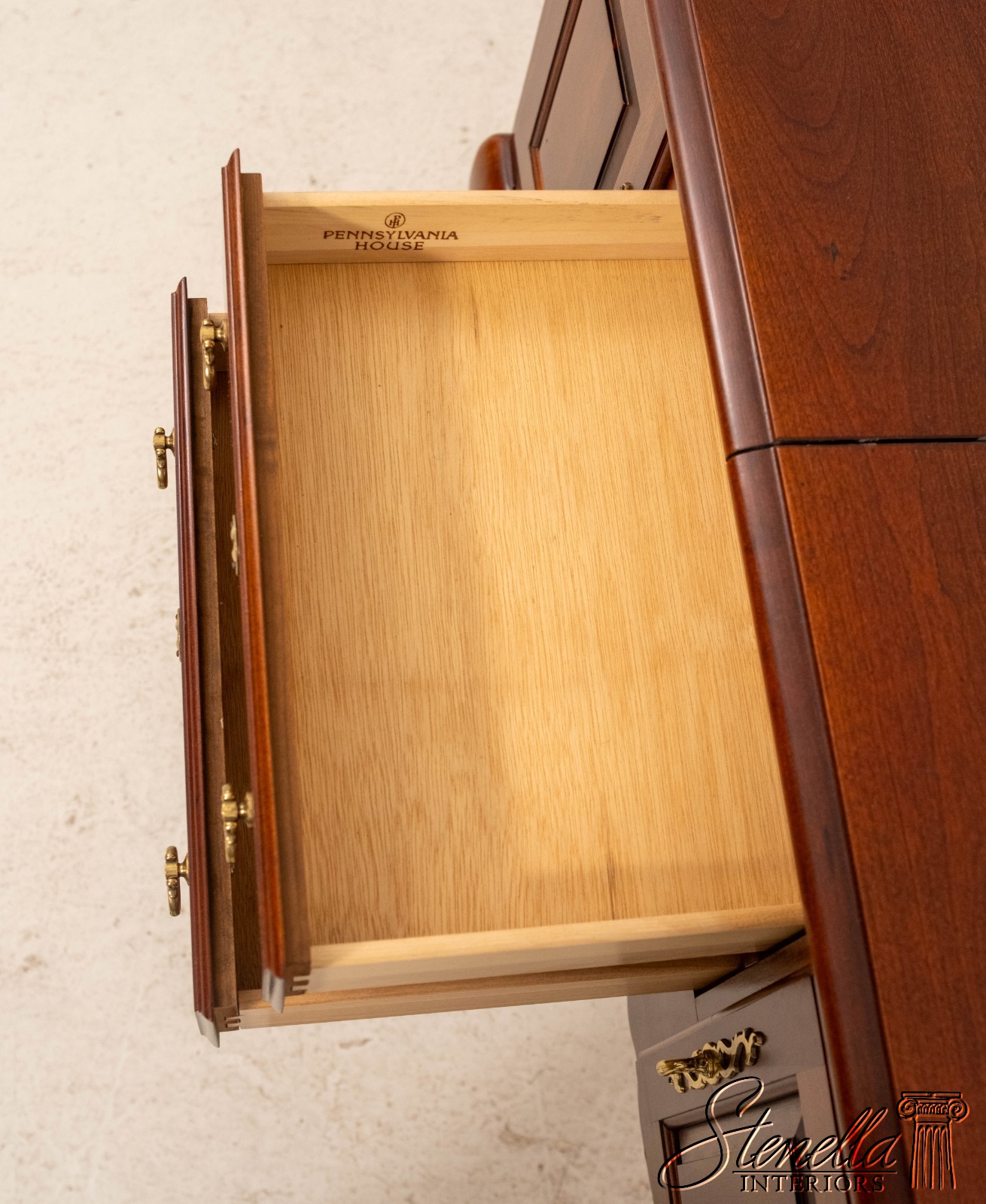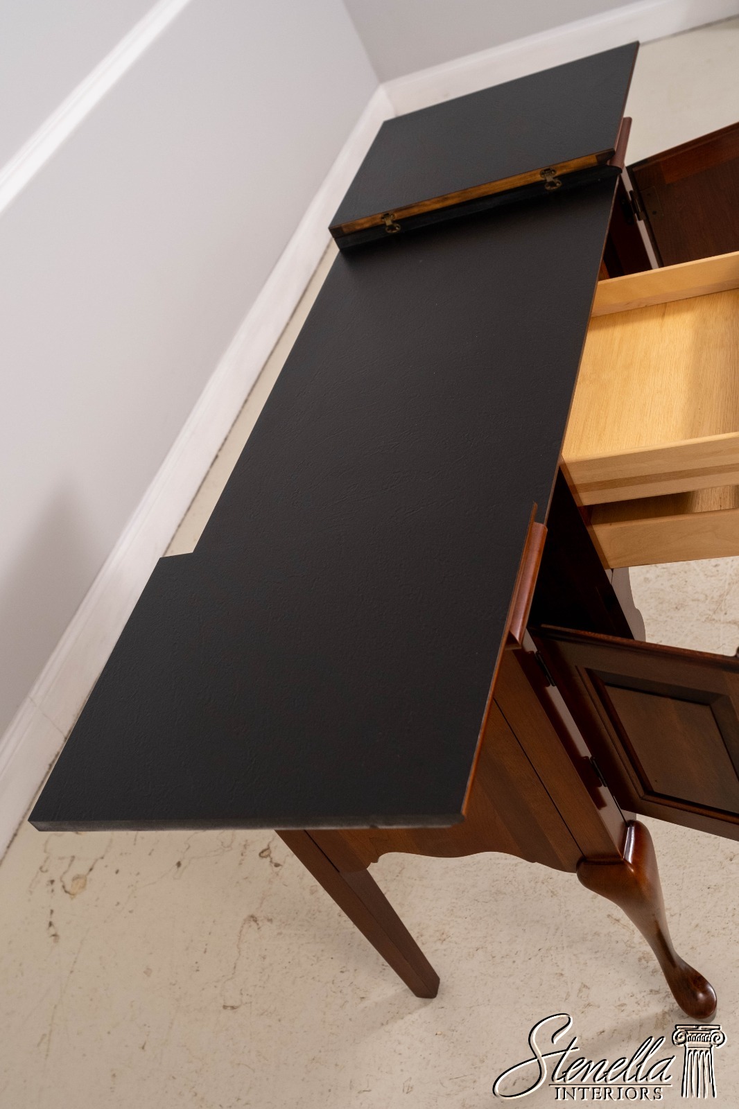 Details: Cherry Dovetailed Drawer Construction Fine Carved Details Quality Construction Queen Anne Legs & Pad Feet Raised Panel Doors Traditional Style Solid Brass Hardware Formica Top Surface Faux Key Plates Offered @ Fraction Original Retail Cost