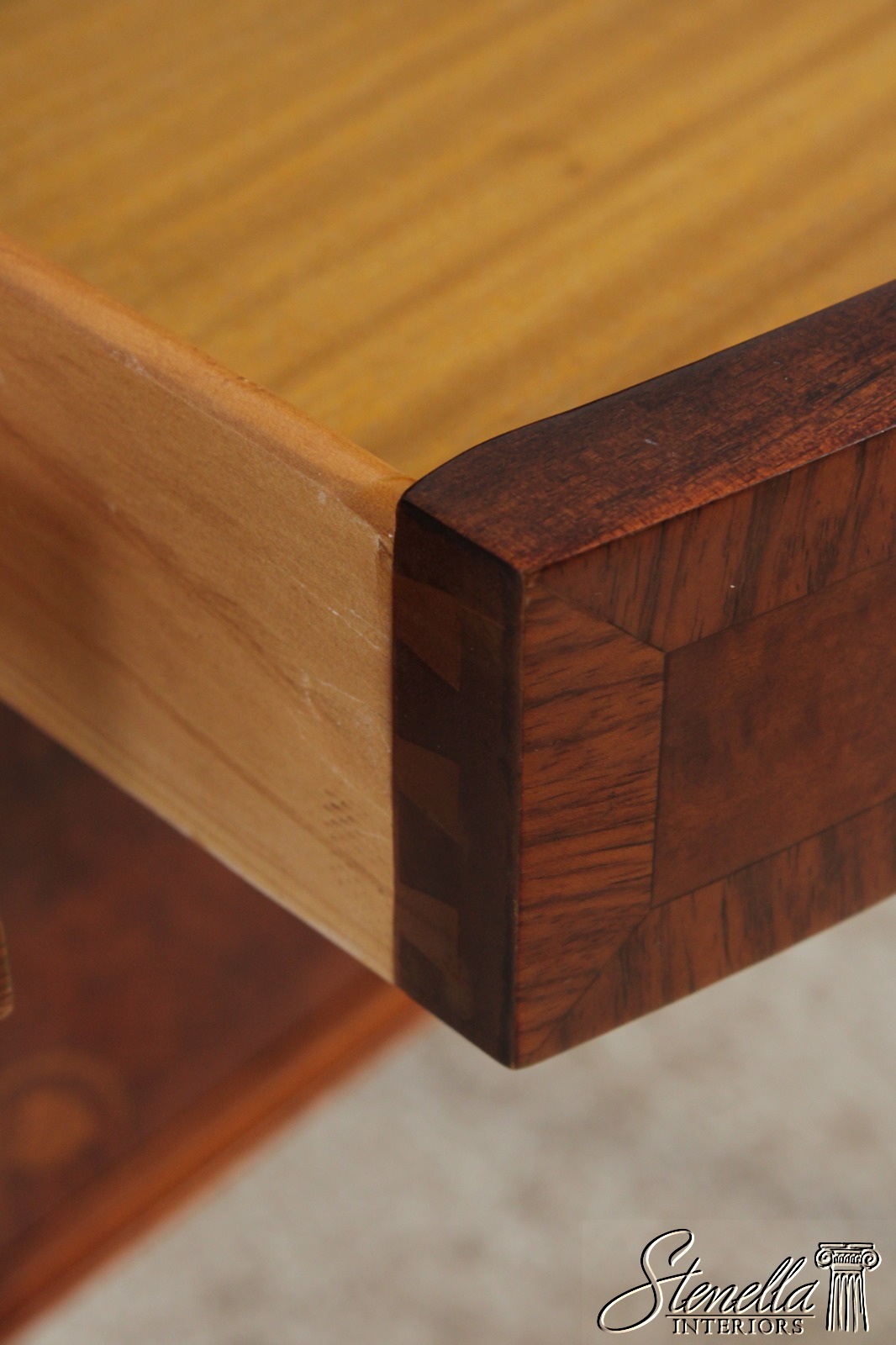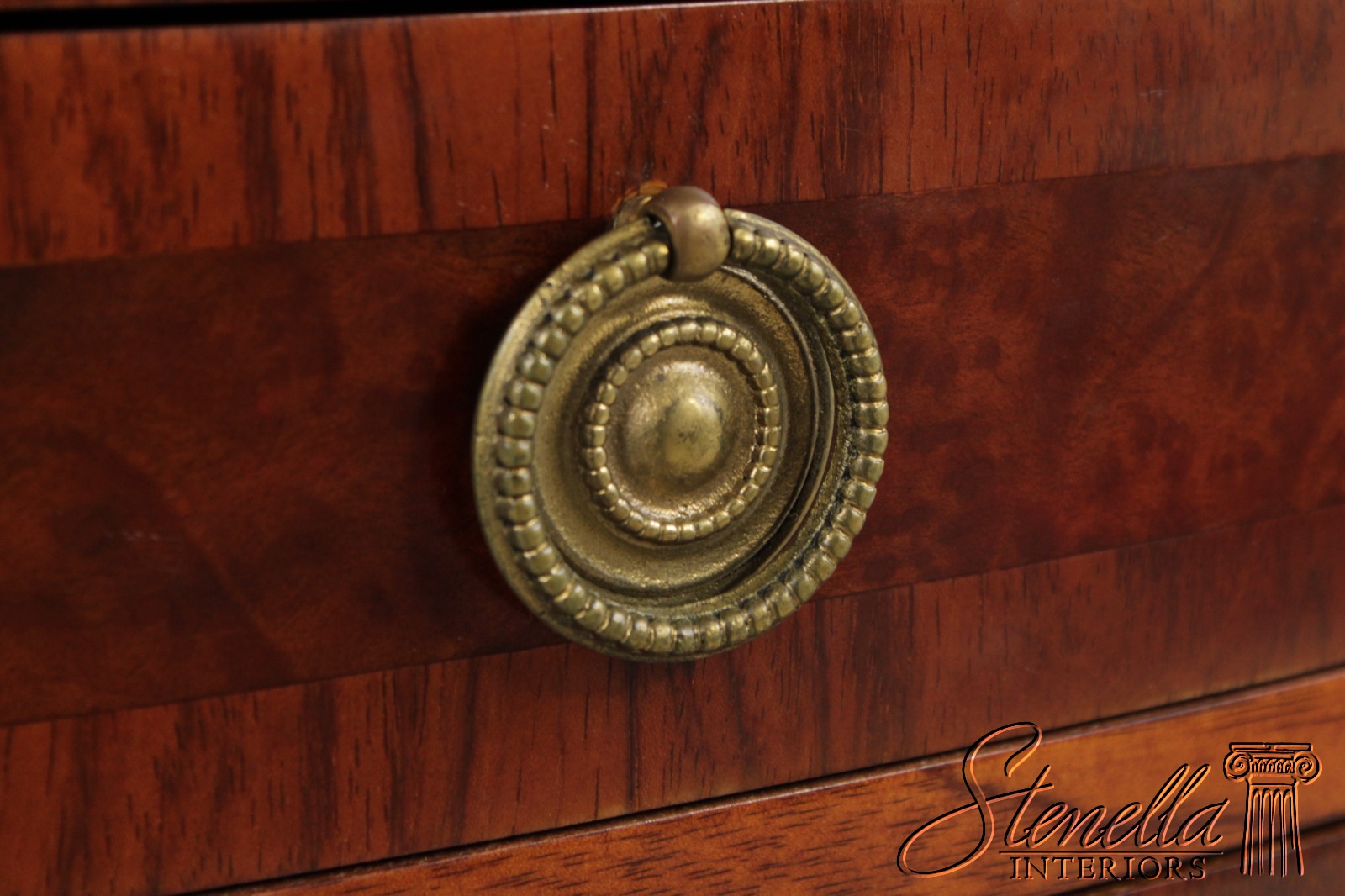 Details: Stunning Walnut Finish Dovetailed Drawer Construction Fine Carved Details High Quality Construction Custom Crafted Sideboard Nice Inlay Work Throughout Federal Style Traditional Style Solid Brass Hardware Tapering Legs Banded Top 3 Drawer, 4 Door Offered @ Fraction Original Retail Cost