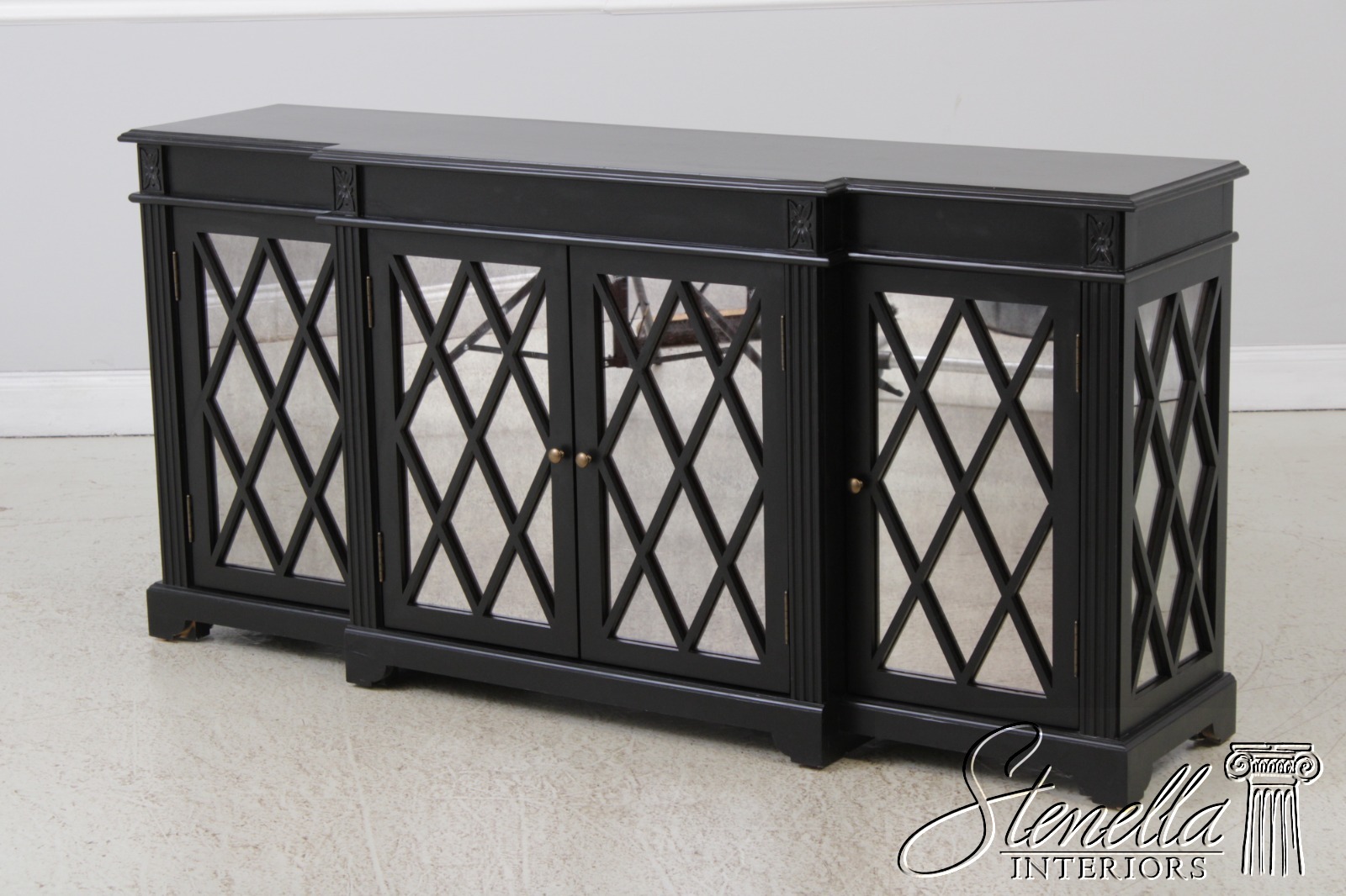 F72065: BALLARD DESIGNS Mirror Door Black TV Console Cabinet