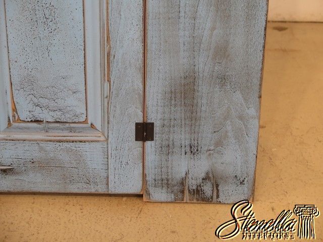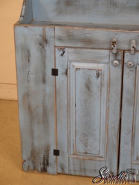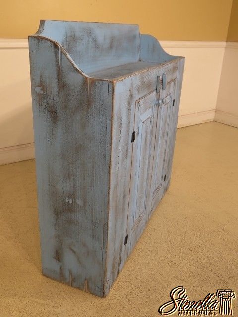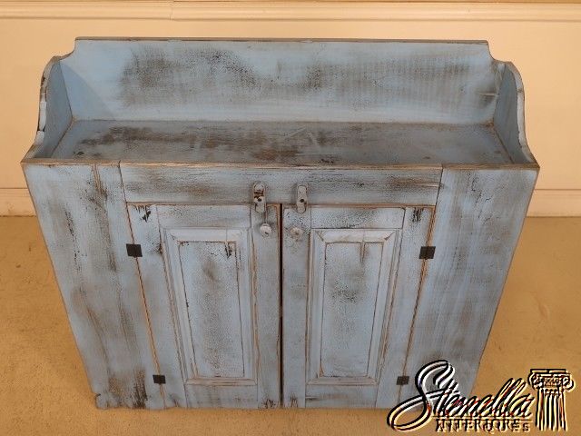 L44382: Blue Paint Decorated Primitive Style 2 Door Dry Sink Cupboard