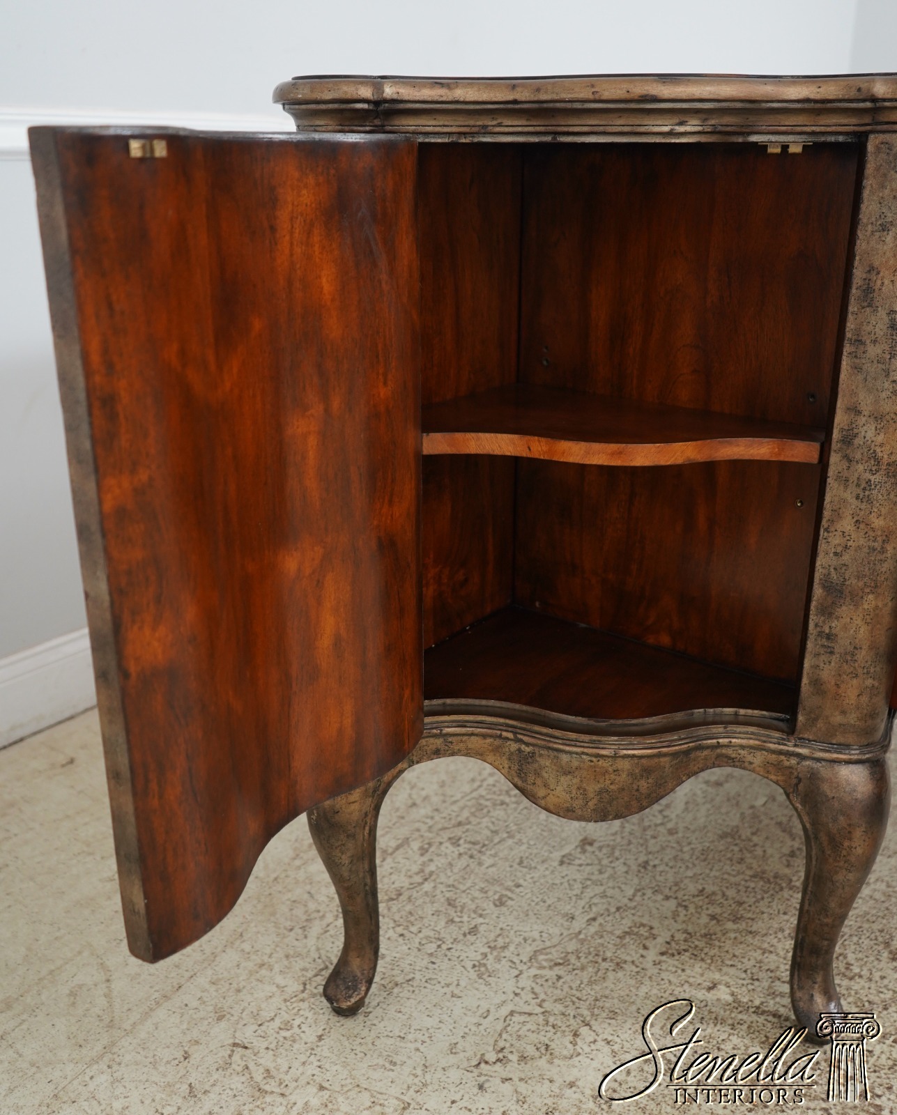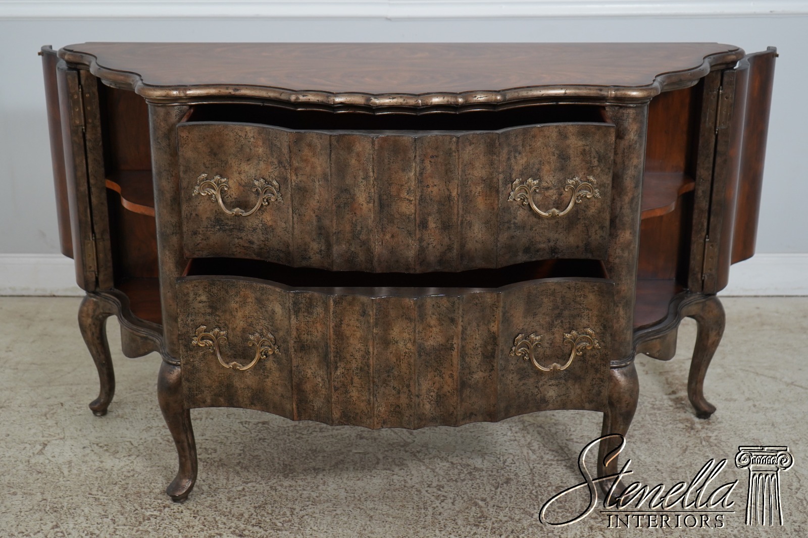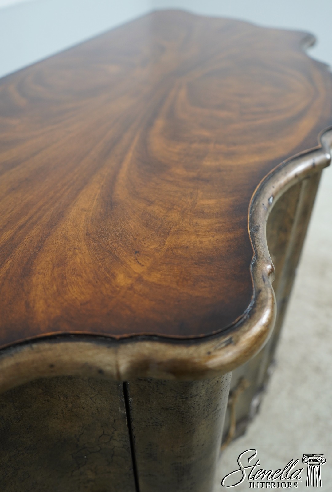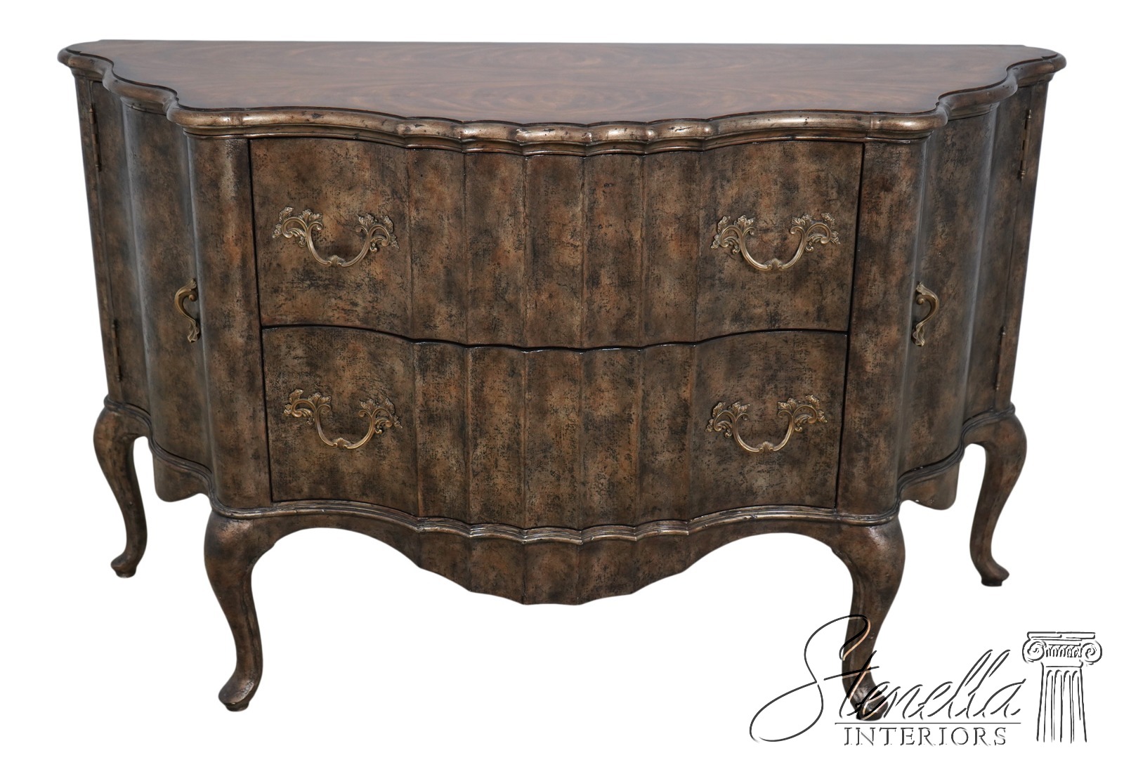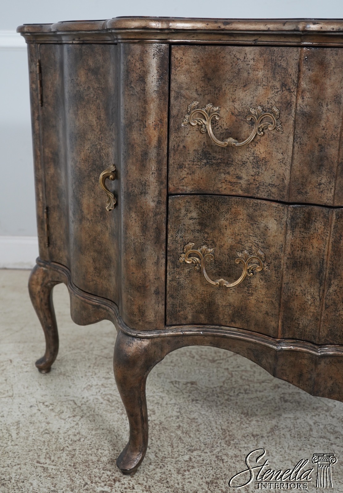 Details: Light Factory Distressing Figural Mahogany Top Decorative Silver Painted Finish On Base Quality Construction Solid Brass Hardware Nice Curved Front & Sides Cabinet Side Doors Great For Hallway, Foyer Or Dining Room Offered @ Fraction Original Retail Cost