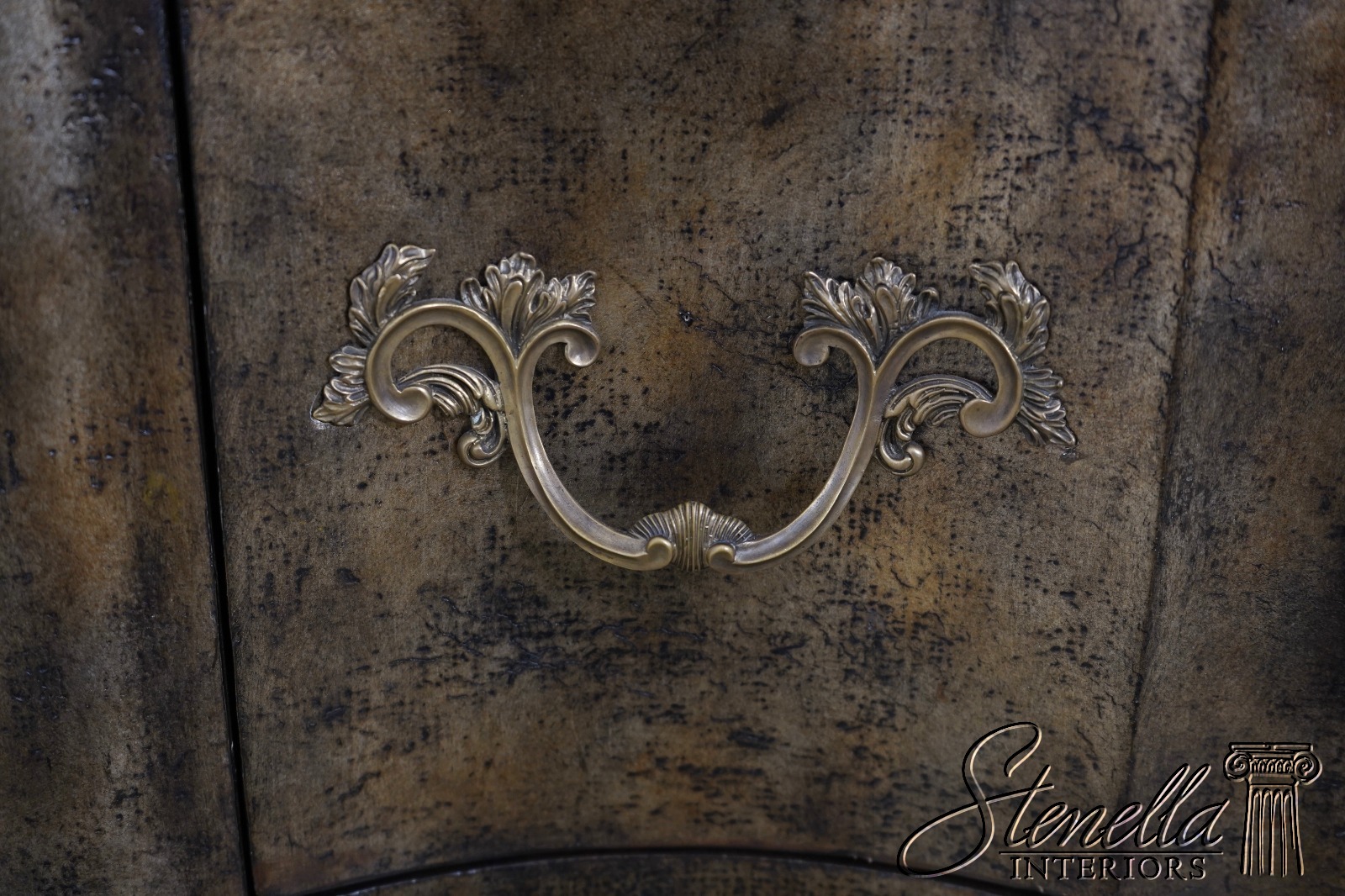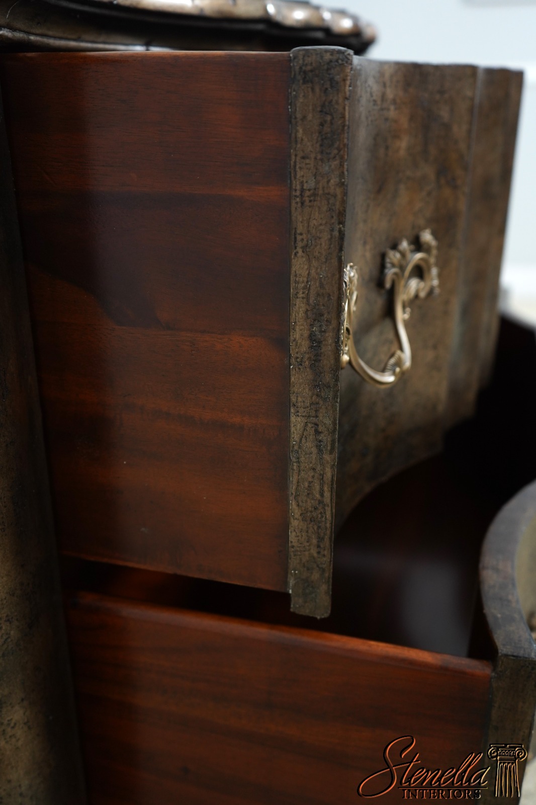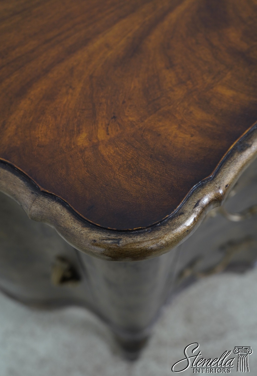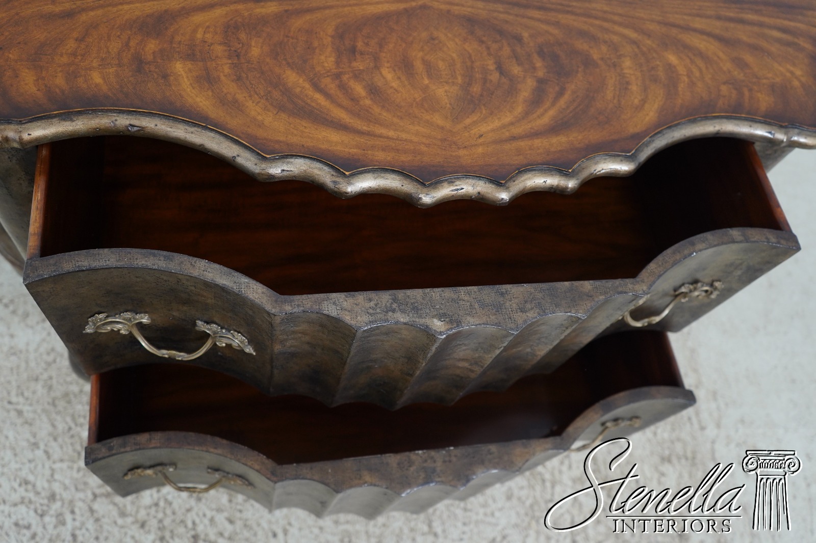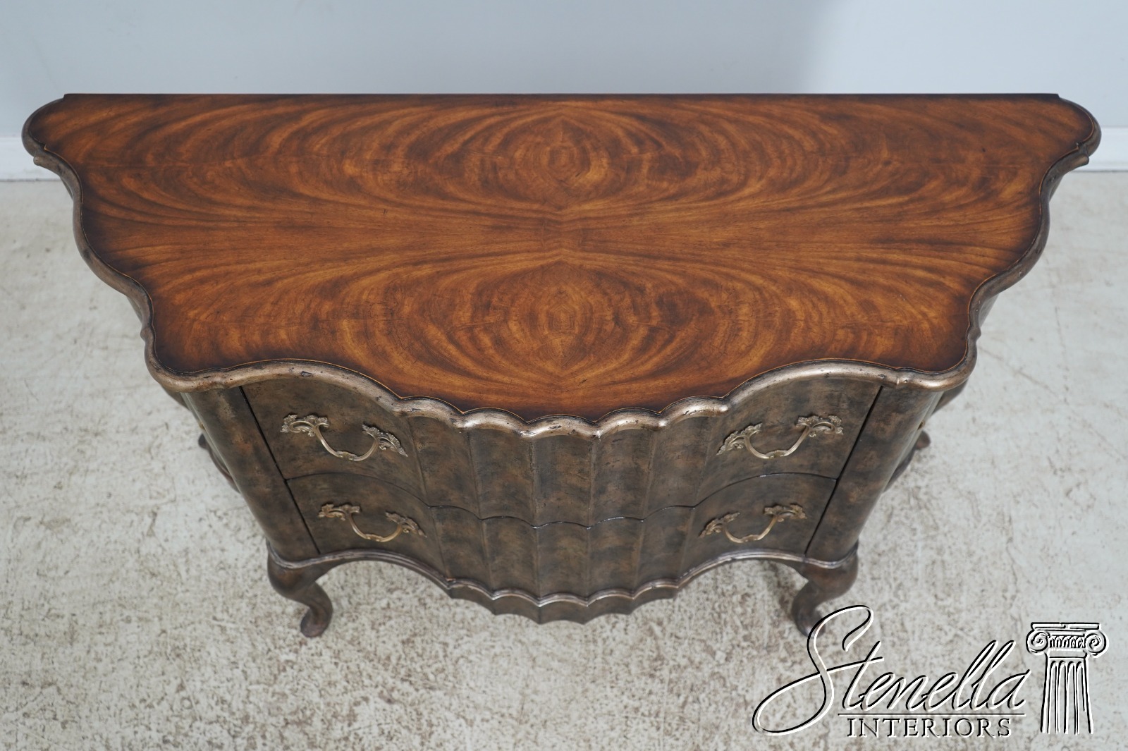Details: Light Factory Distressing Figural Mahogany Top Decorative Silver Painted Finish On Base Quality Construction Solid Brass Hardware Nice Curved Front & Sides Cabinet Side Doors Great For Hallway, Foyer Or Dining Room Offered @ Fraction Original Retail Cost