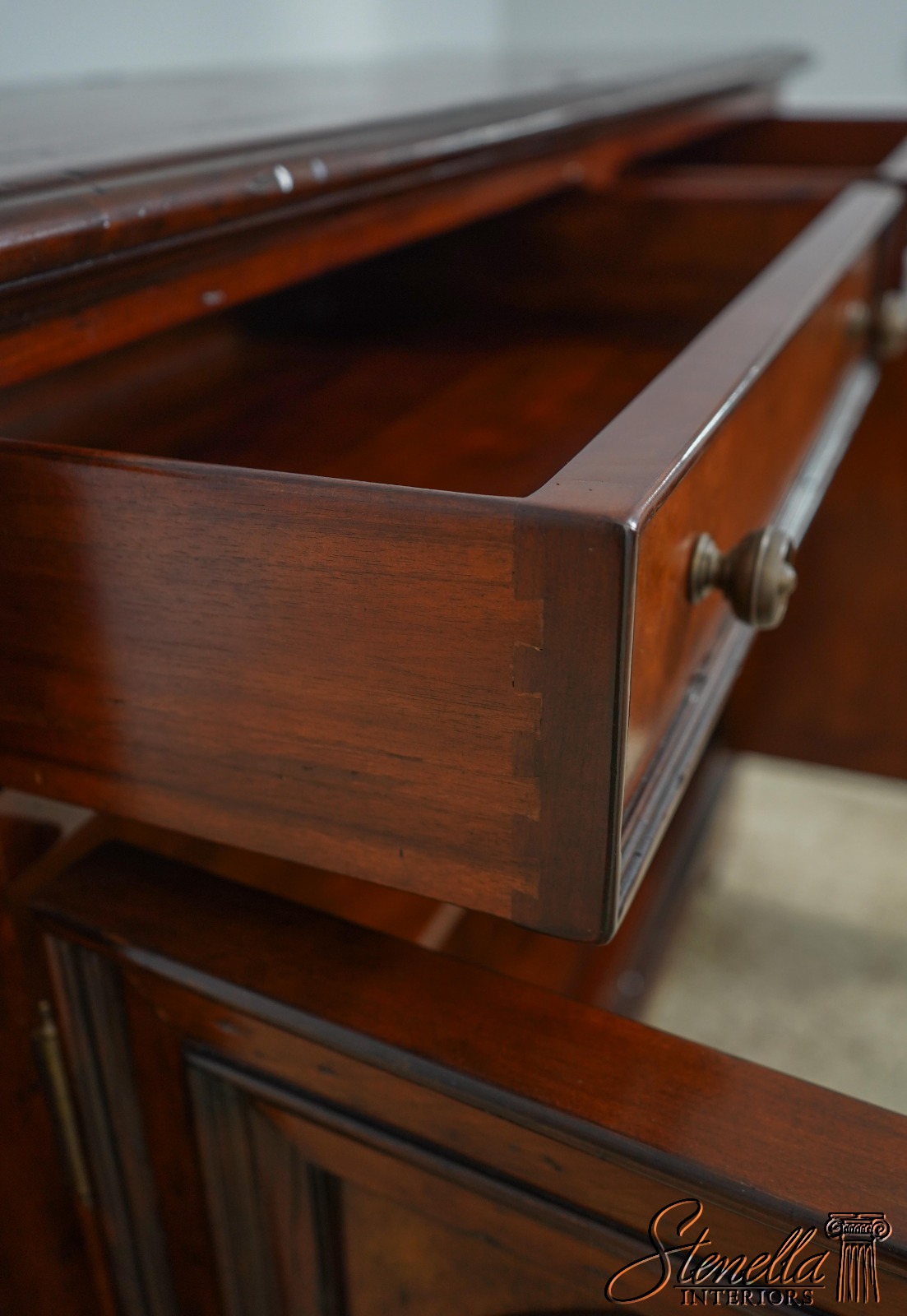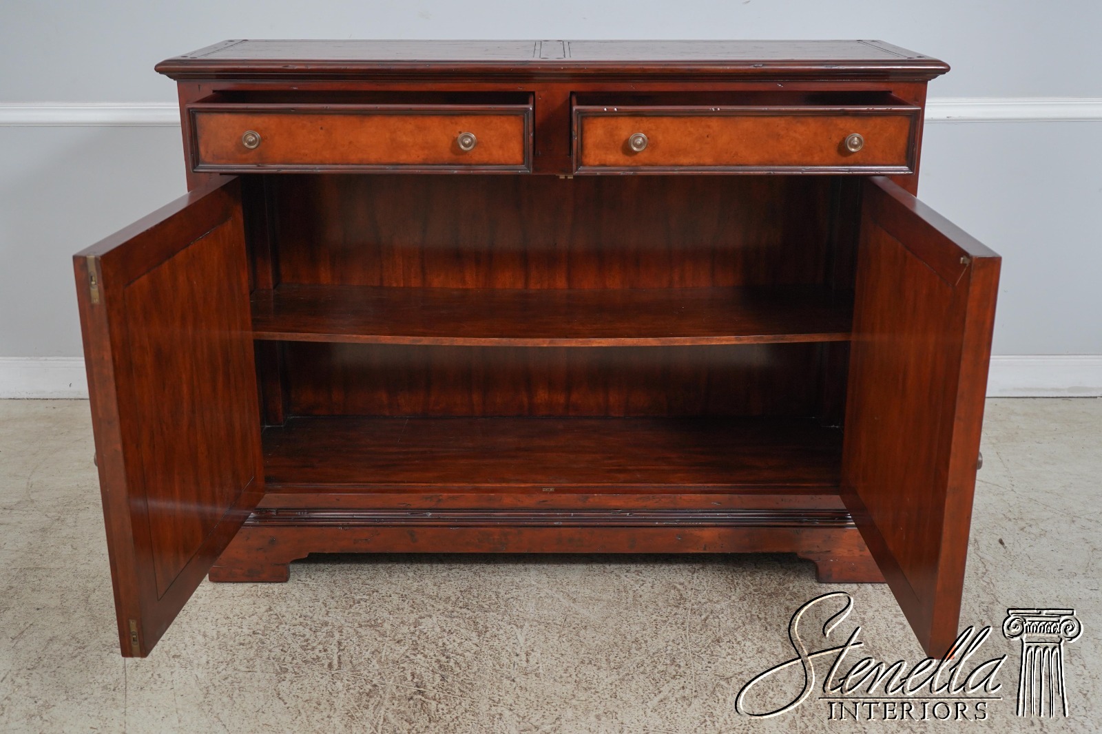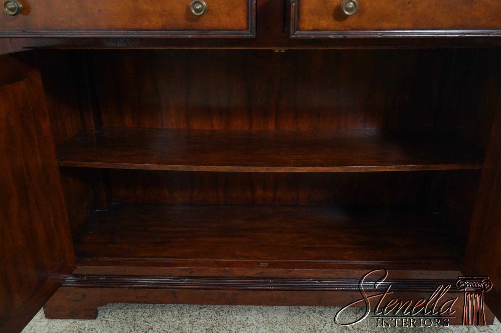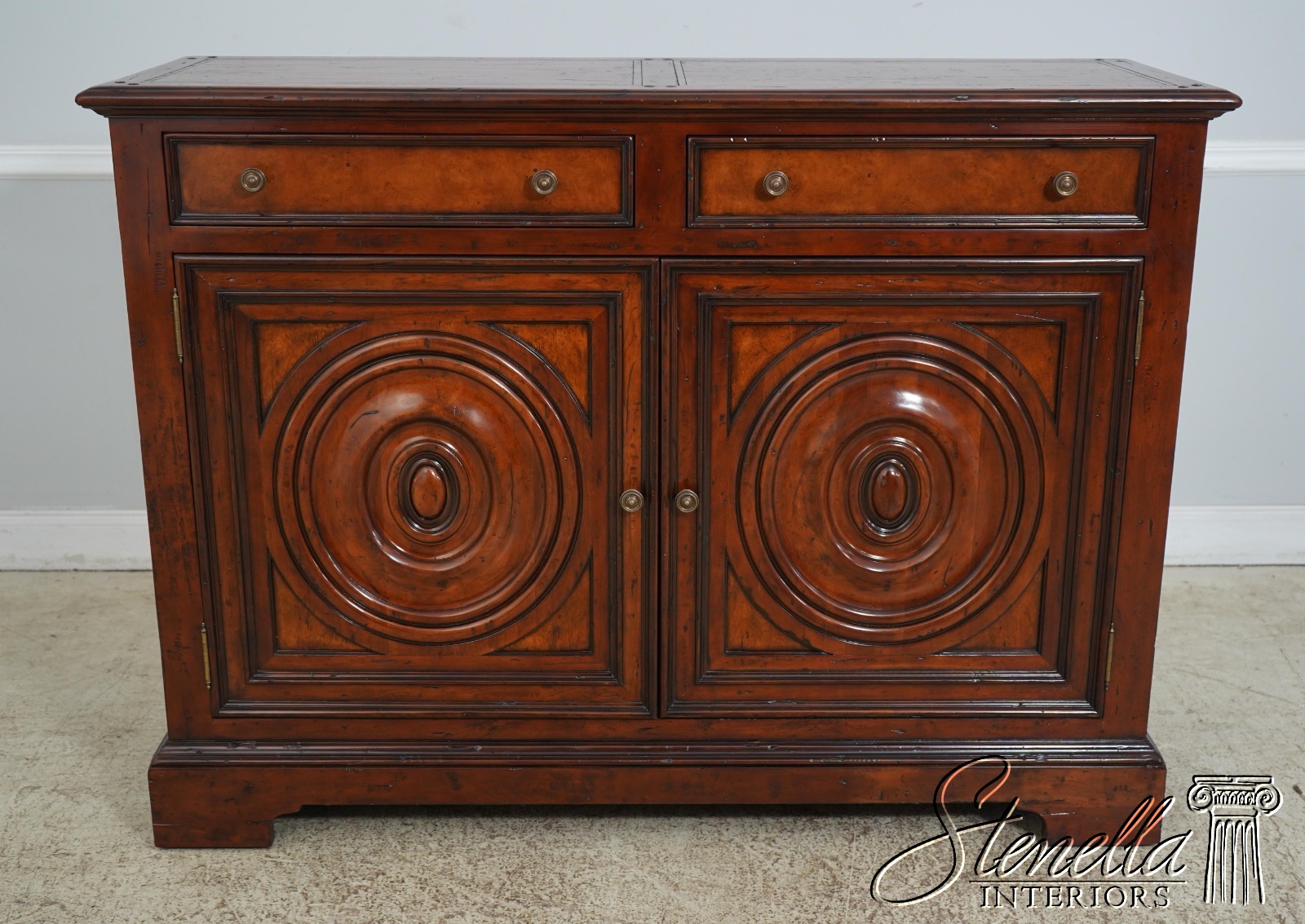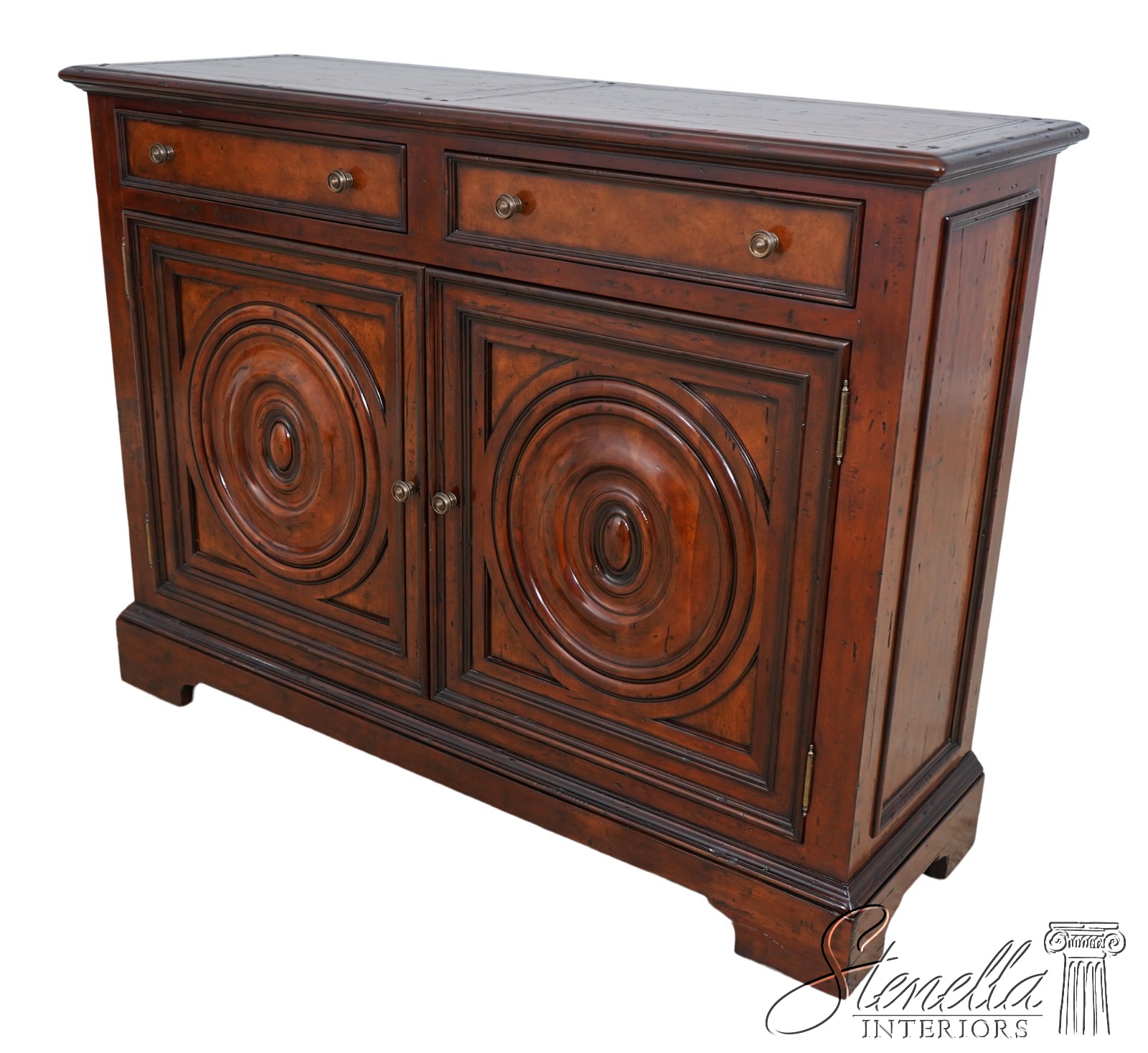 Details: New Floor Model Dovetailed Drawer Construction High Quality Construction Great For Under TV Or In Dining Room Carved Oval Design Doors Solid Brass Hardware Offered @ Fraction Original Retail Cost