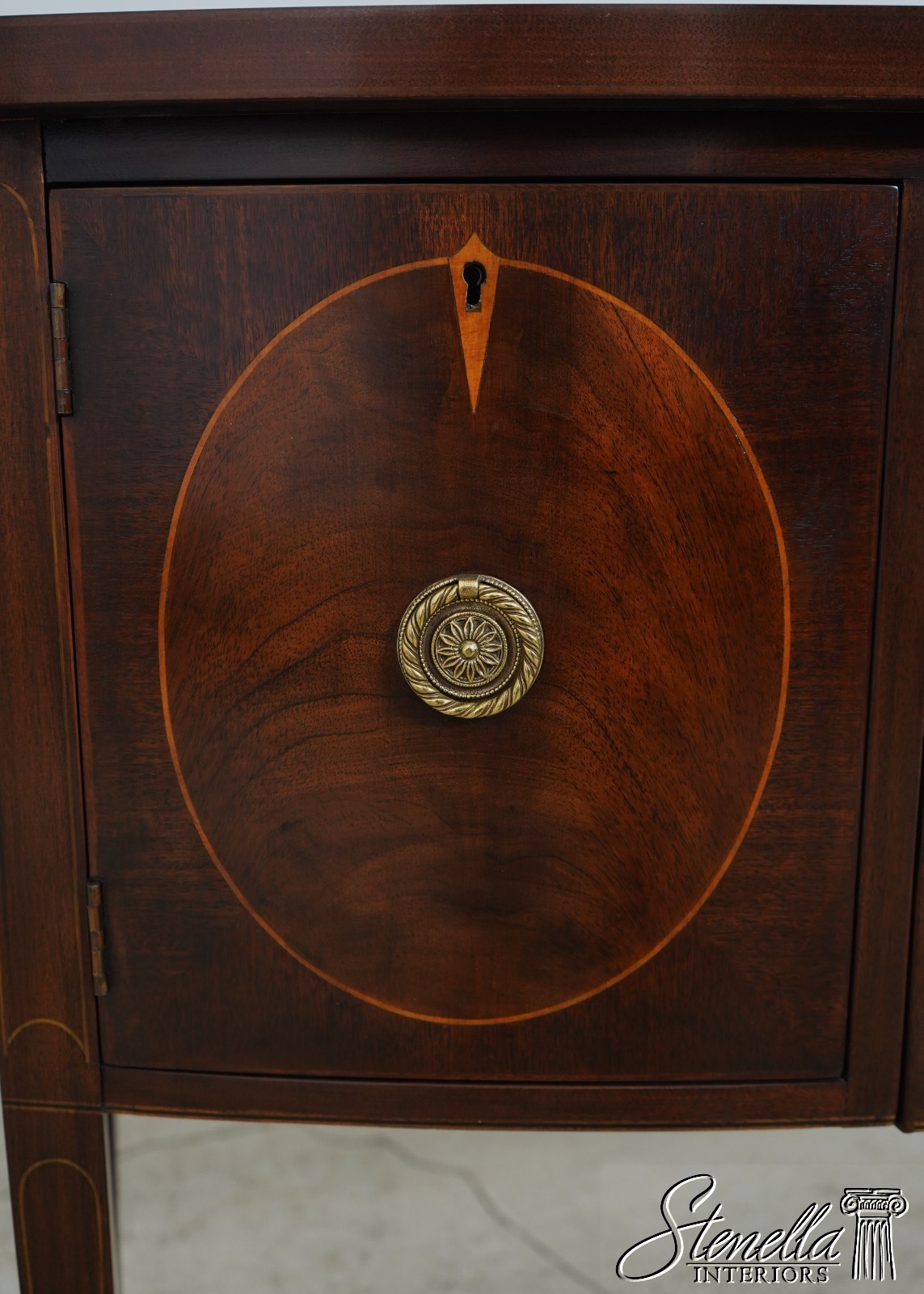 Details: Finish No.29 Mahogany High Quality Construction Nice Inlay Work Throughout Hepplewhite Felt Lined Silverware Drawer String Inlay 1 Drawer - 2 Door Has Keys For Key Locking Bow Front
