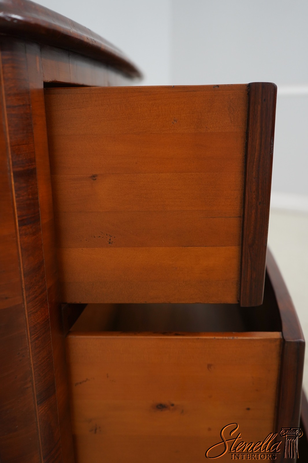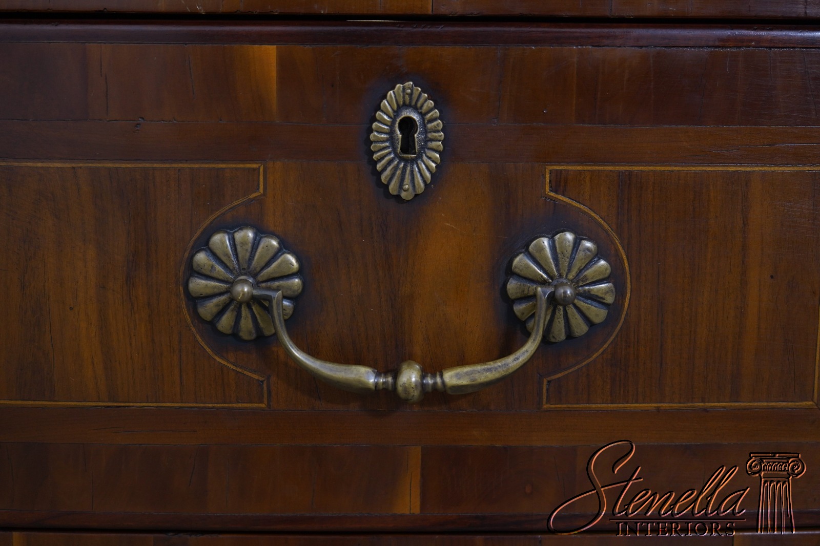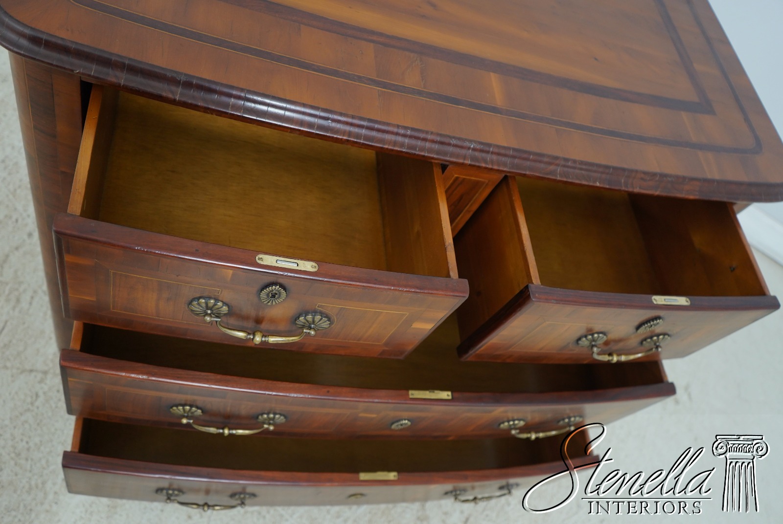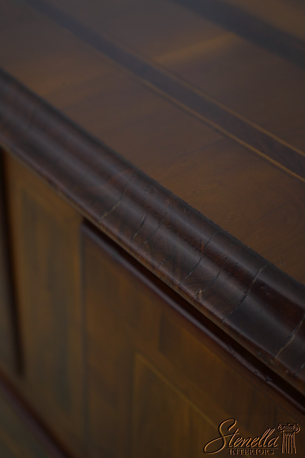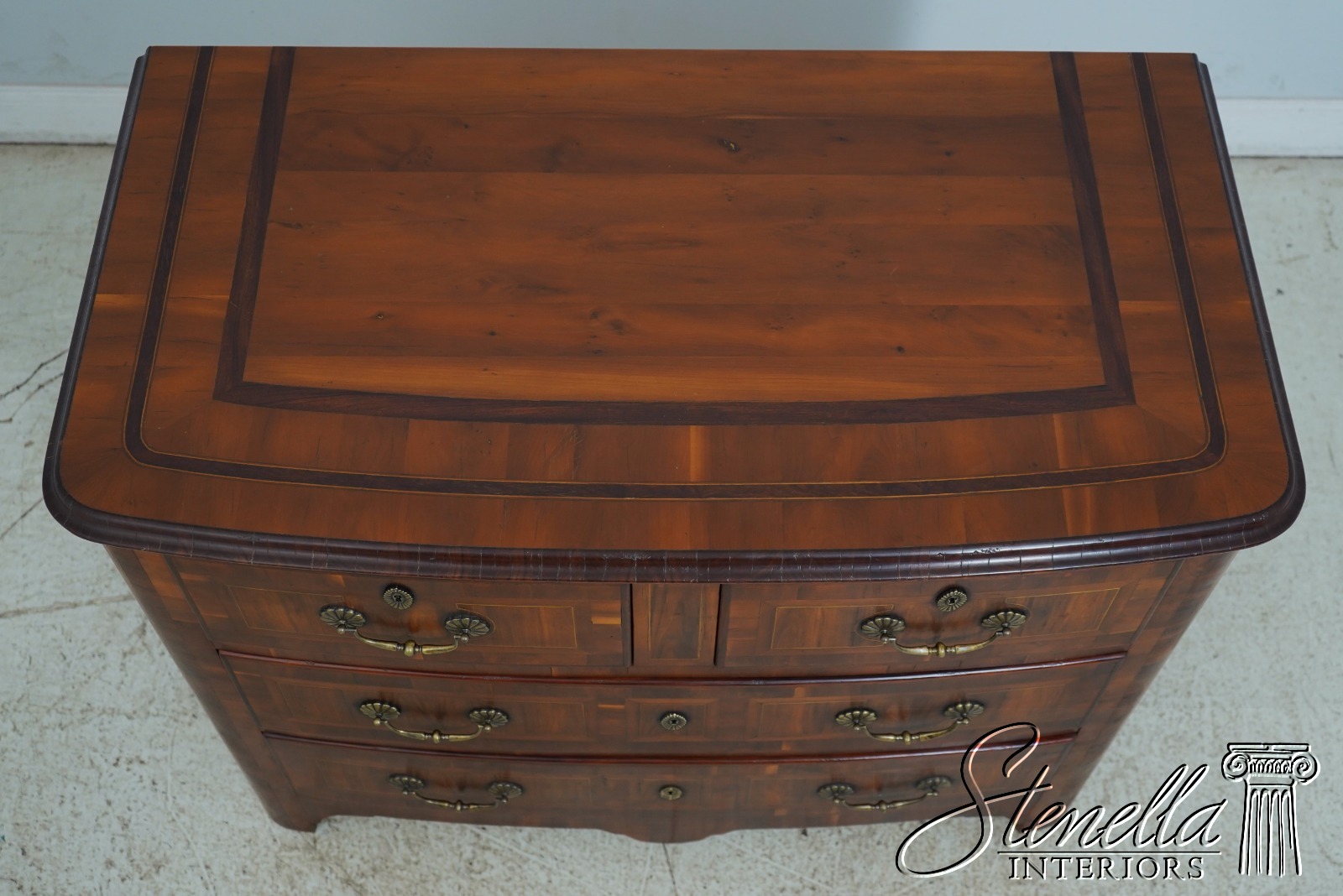 Details: Factory Distressed High Quality Construction Large Impressive Chest Raised Panel Back Stunning Continental Style Commode Chest Italian Style Yew Wood Case w. Inlay Work Throughout Offered @ Fraction Original Retail Cost