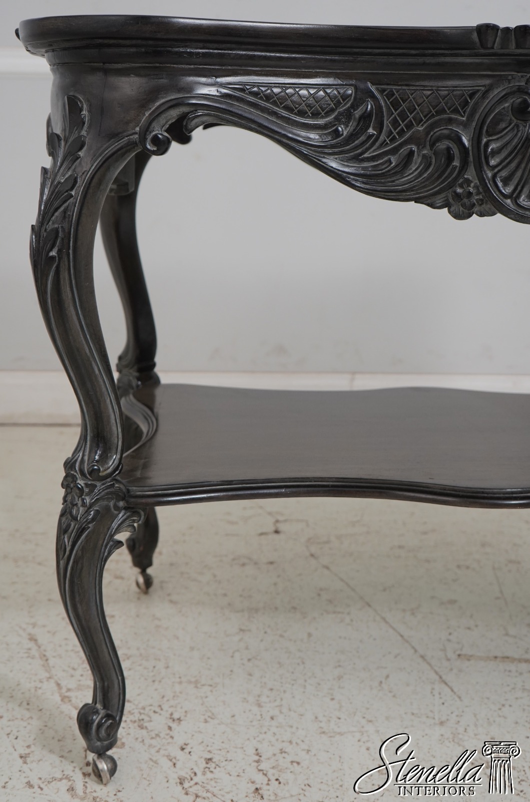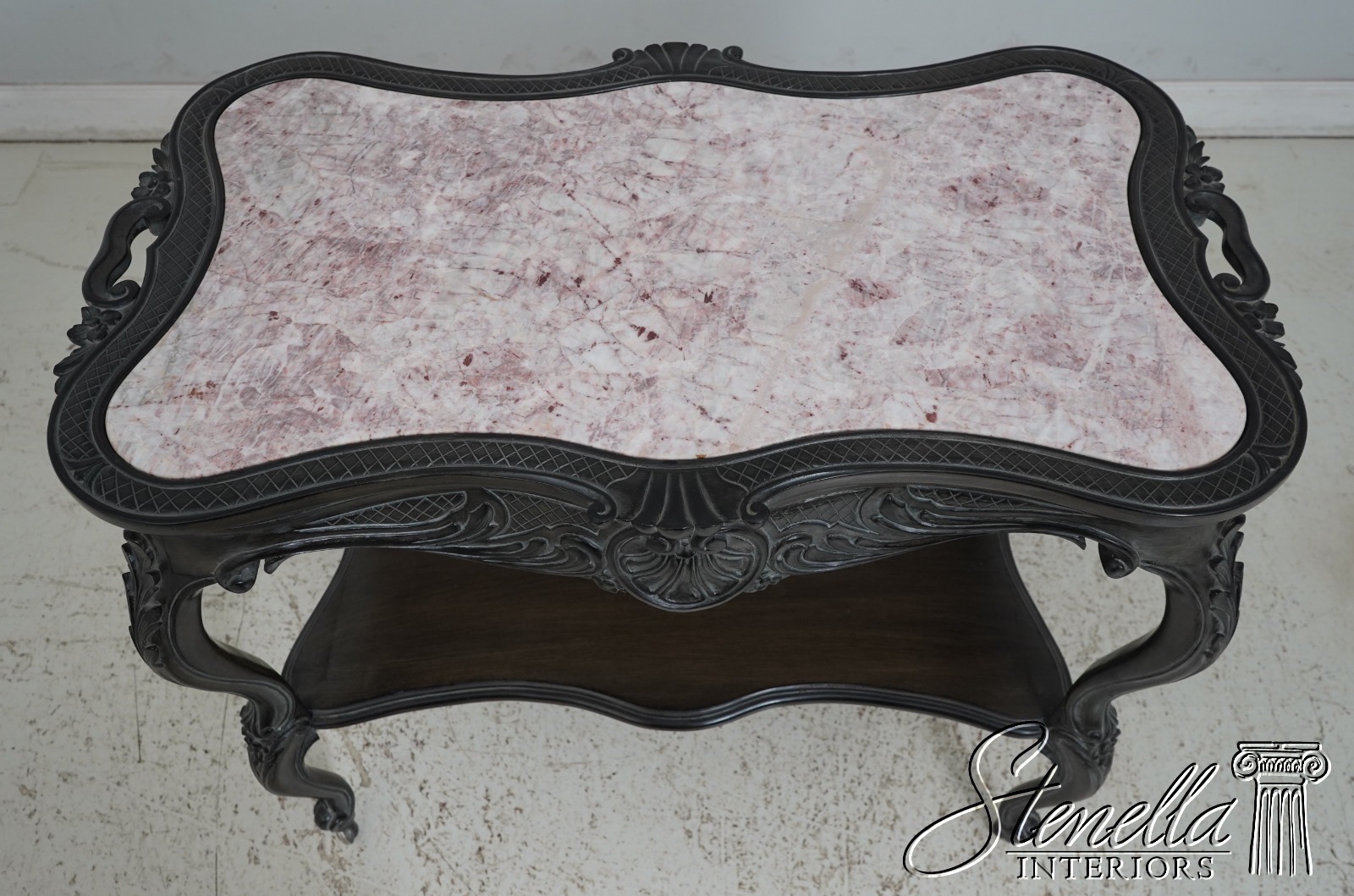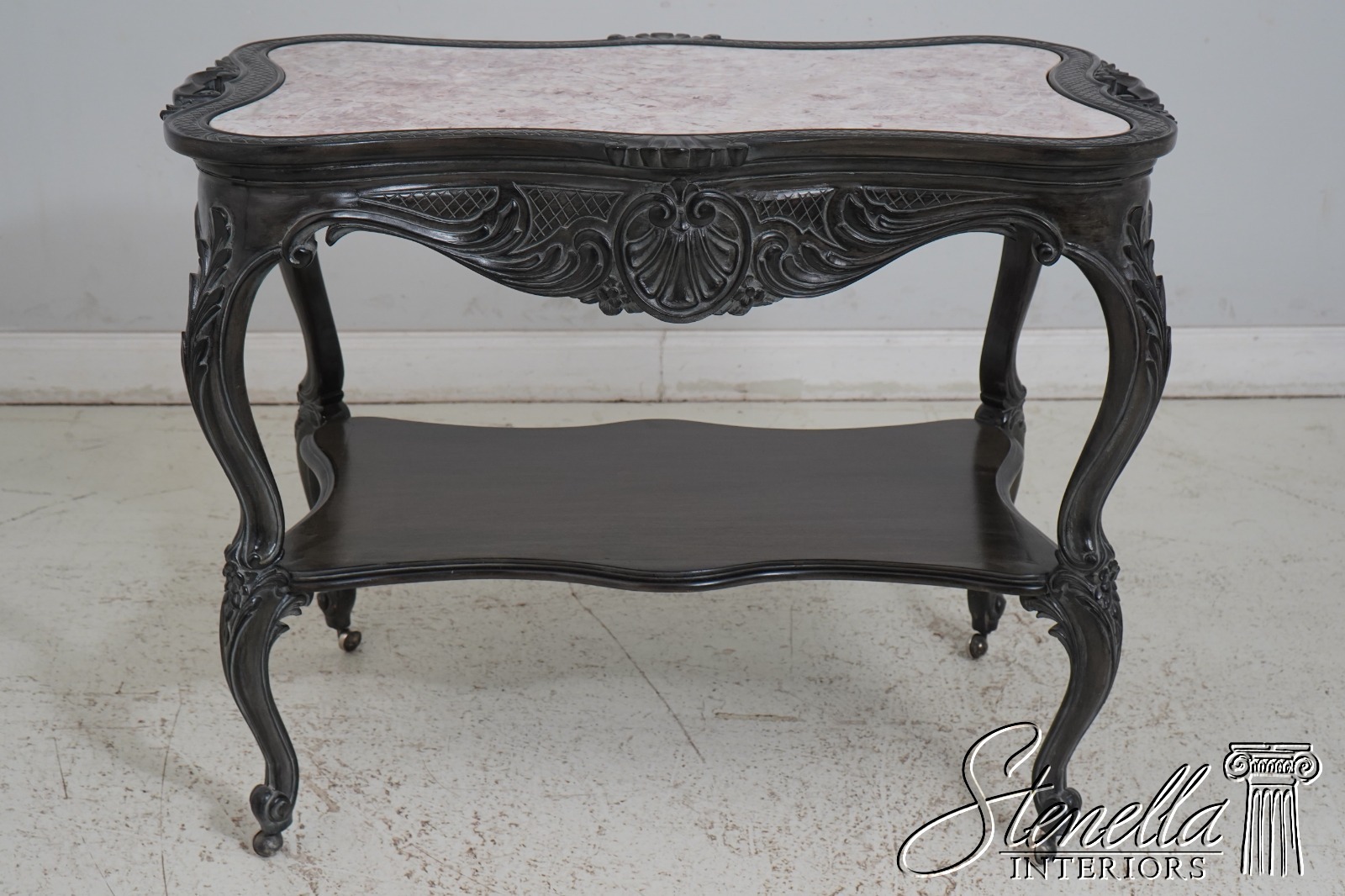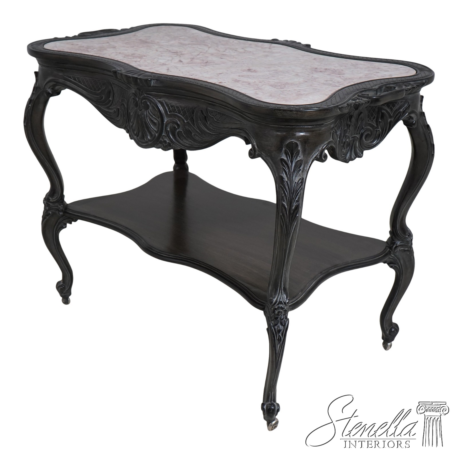 L66603: French Ebonized Marble Top Rolling Bar Cart Server