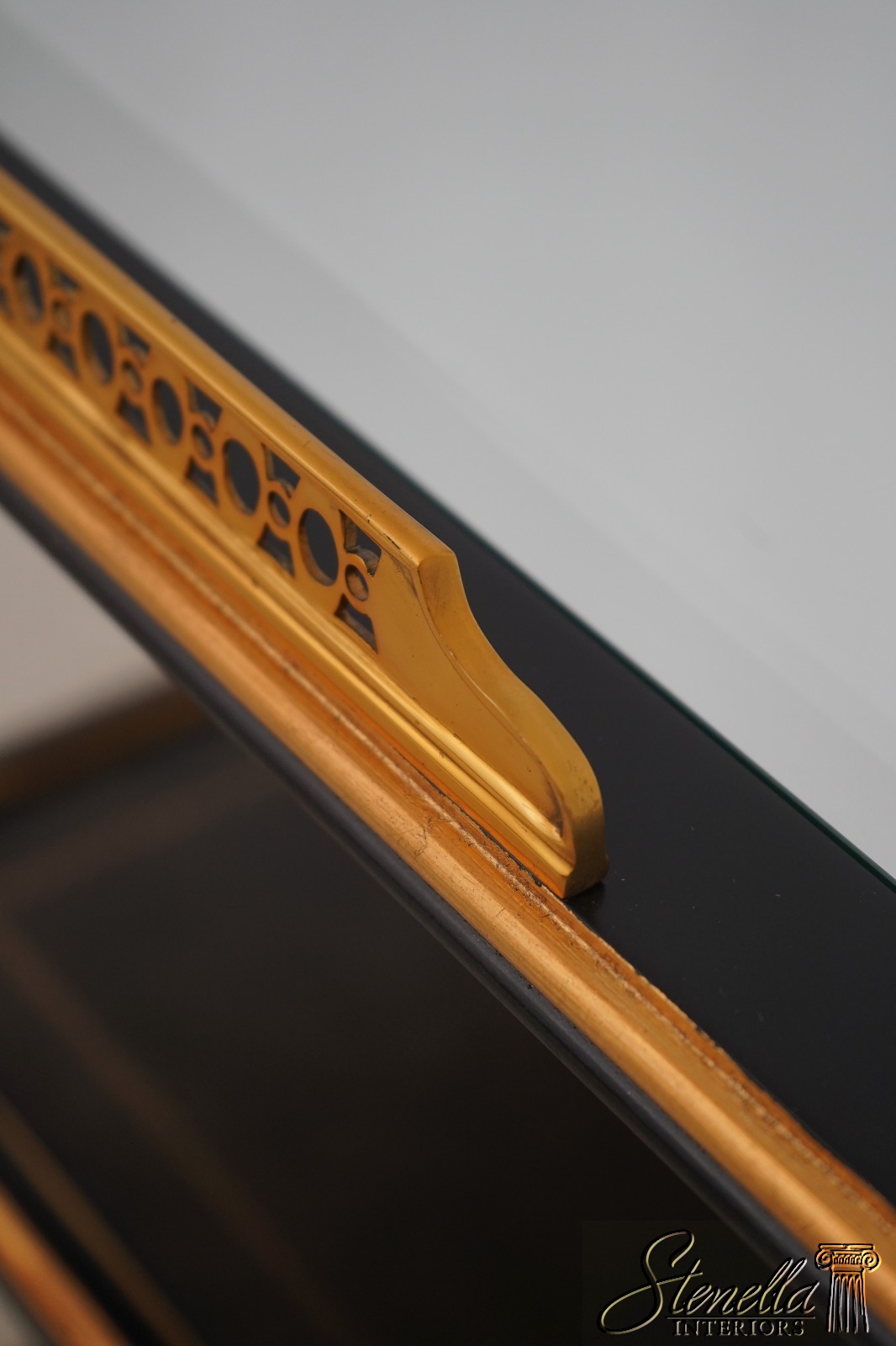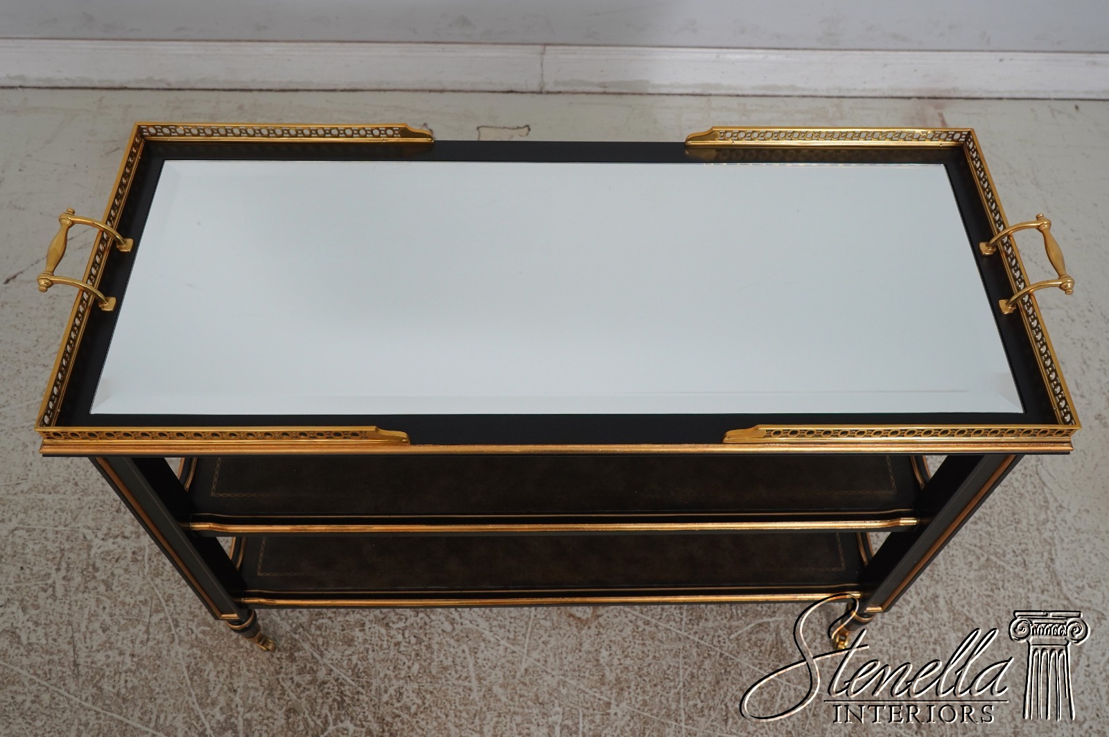 Details: MS-8130-36 Beveled Glass Mirror Top High Quality Construction Brass Caster Feet French Style Tooled Leather Lower Surfaces Brass Gallery Gold Trim Offered @ Fraction Original Retail Cost