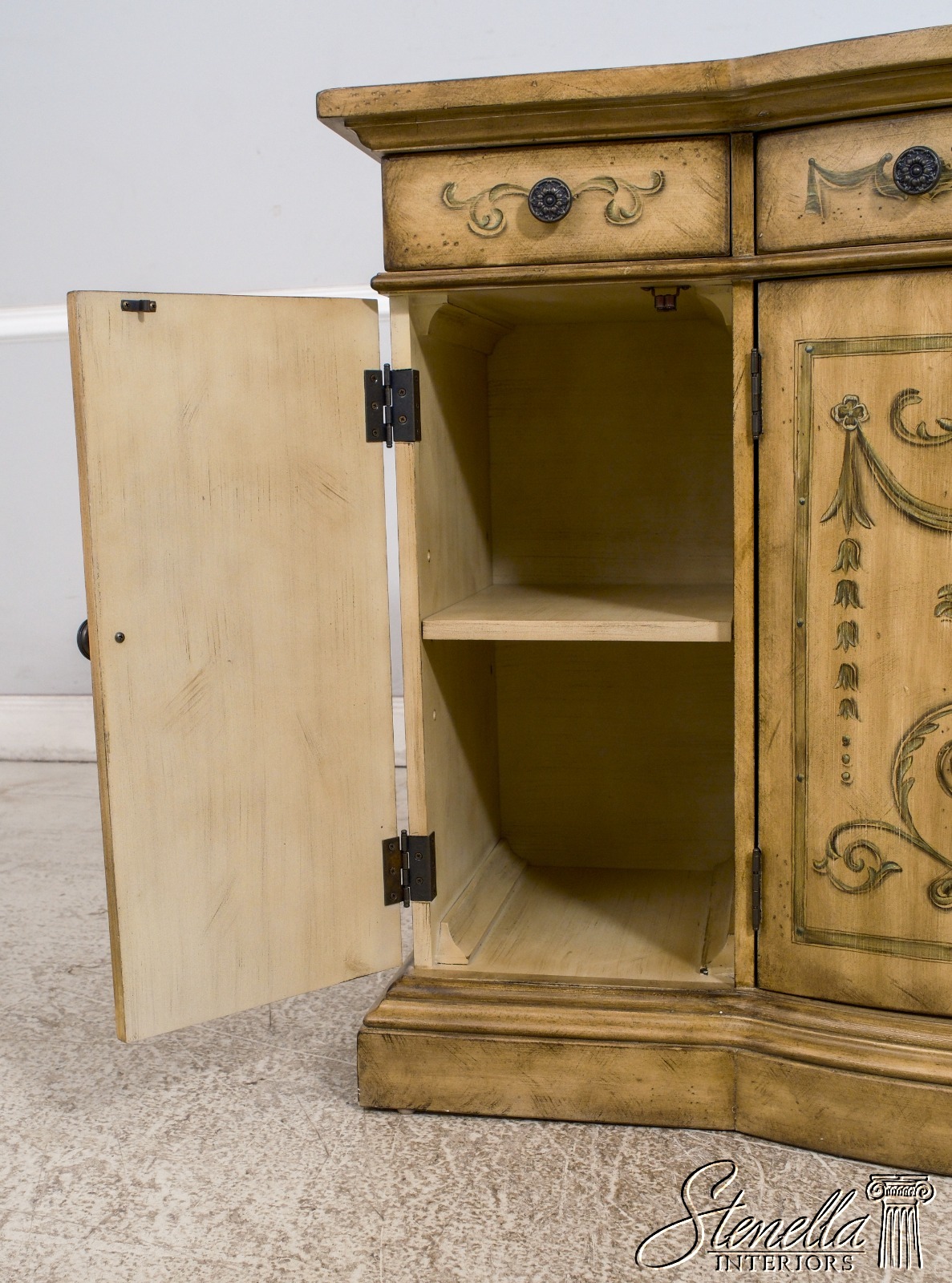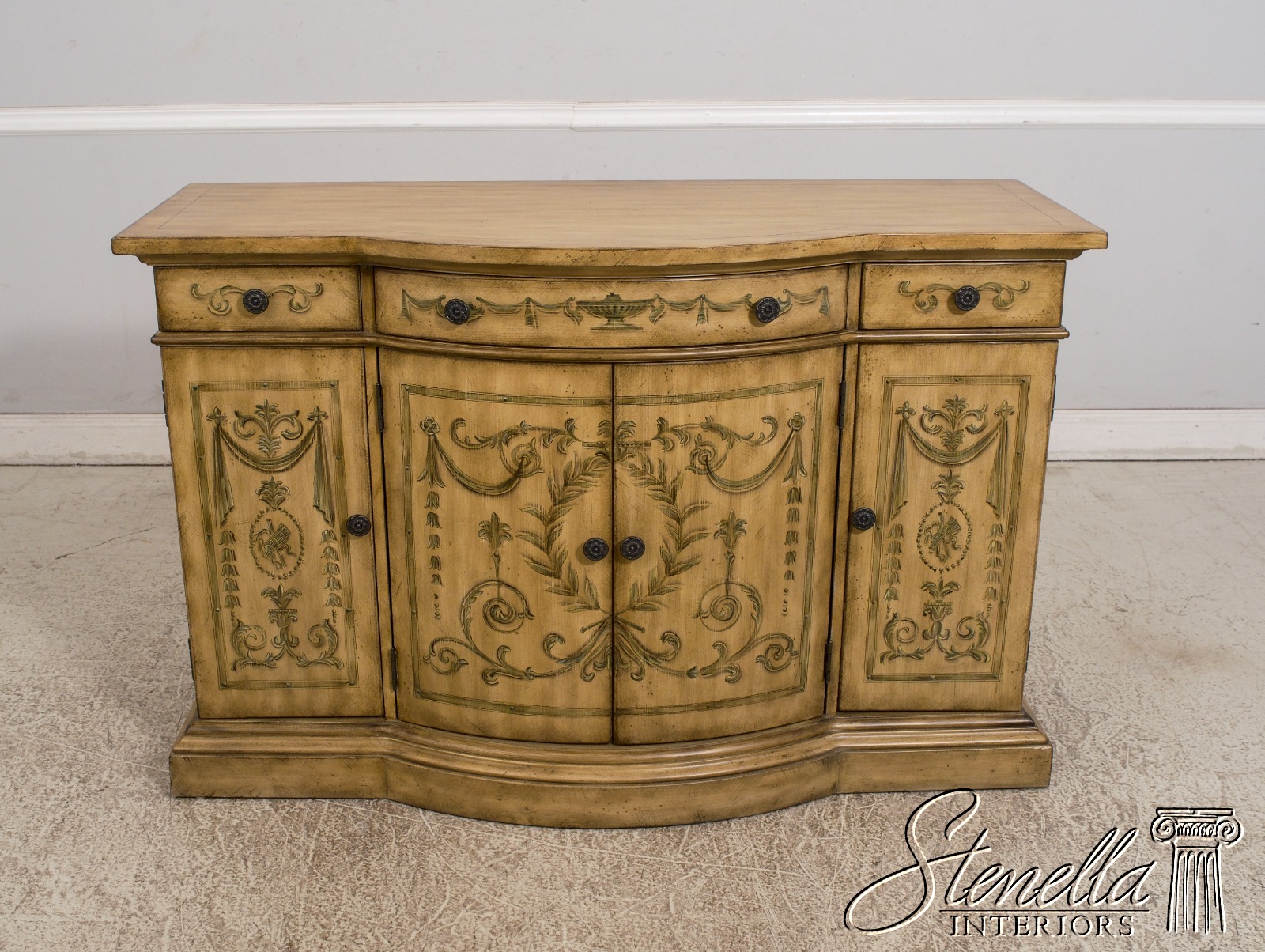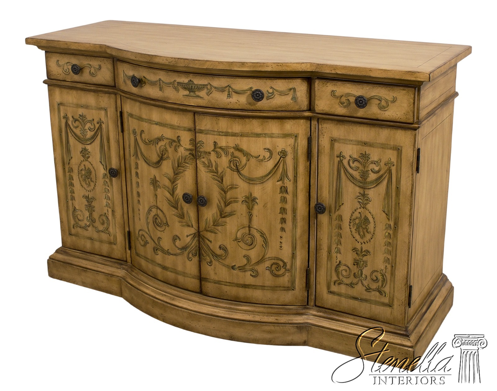 L68552: Venetian Style Paint Decorated Console Cabinet Sideboard