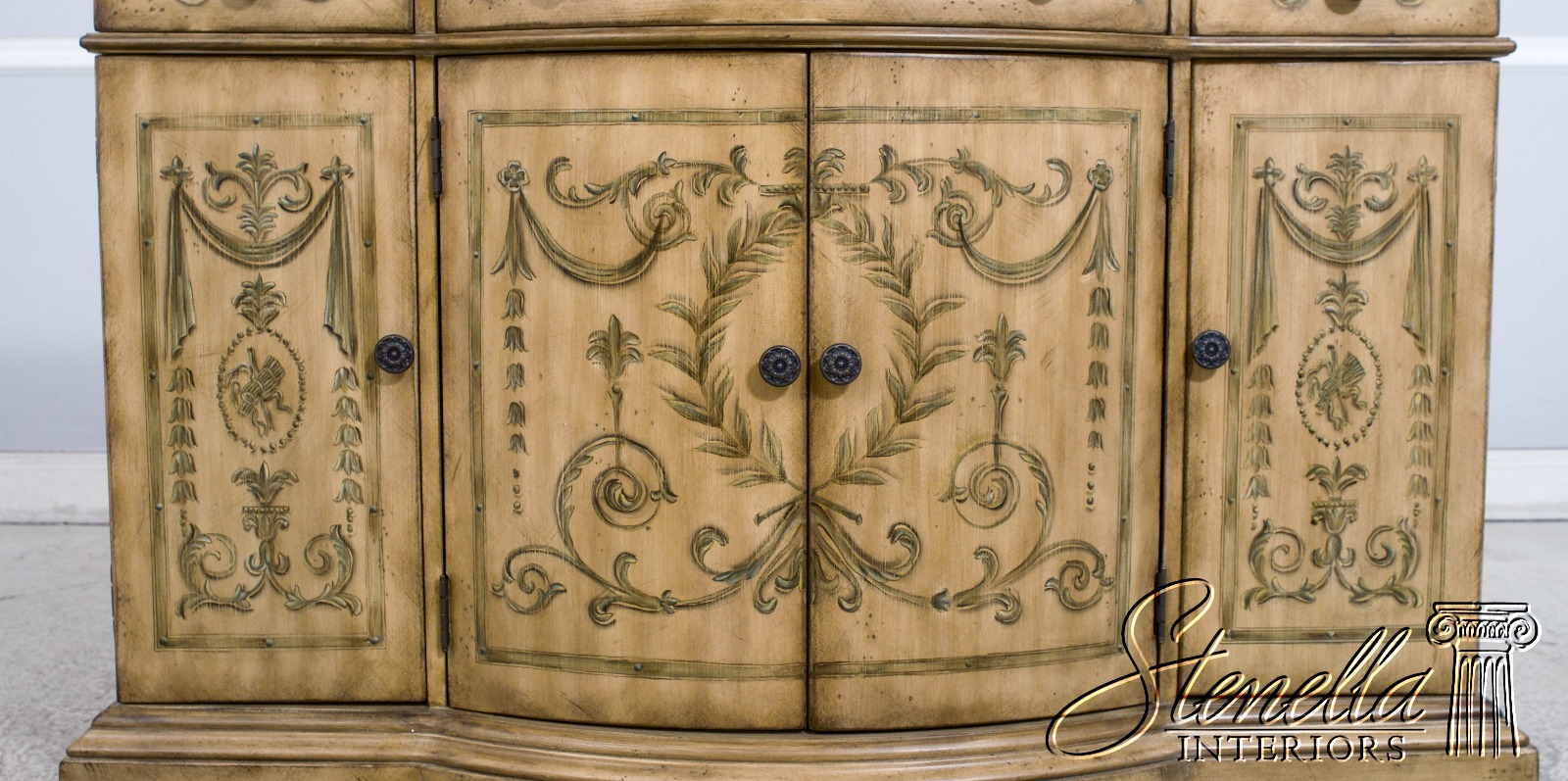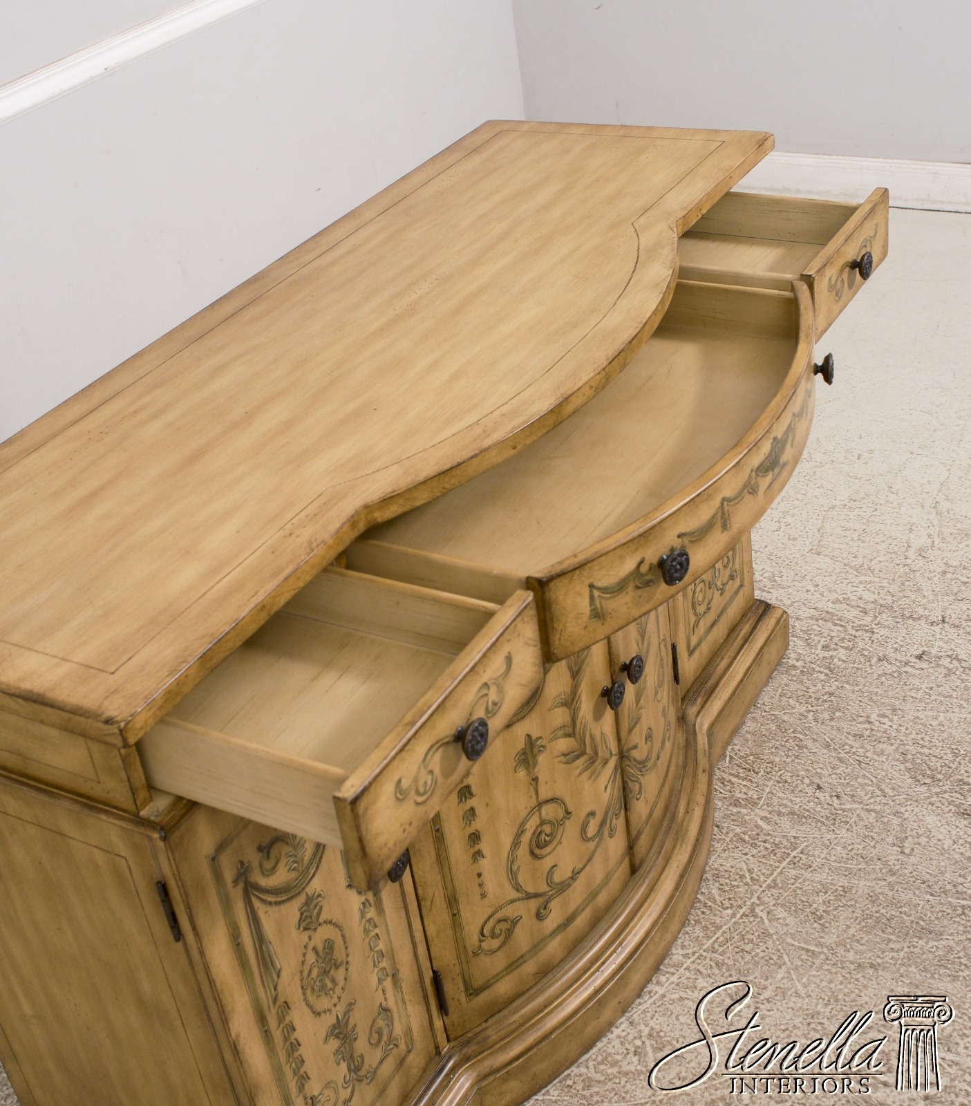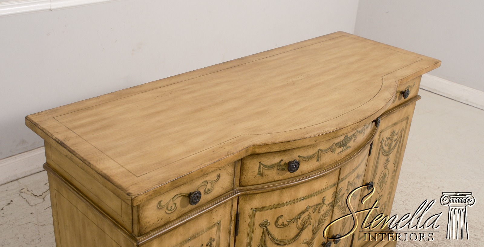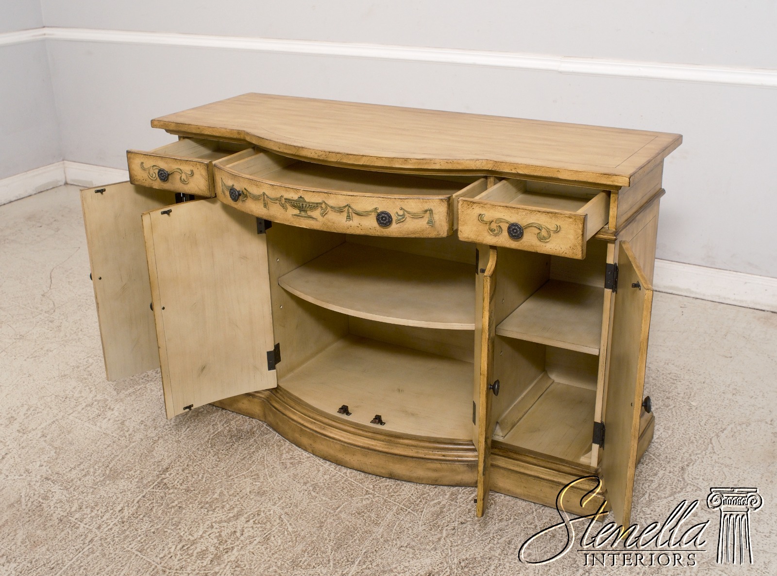 L68552: Venetian Style Paint Decorated Console Cabinet Sideboard