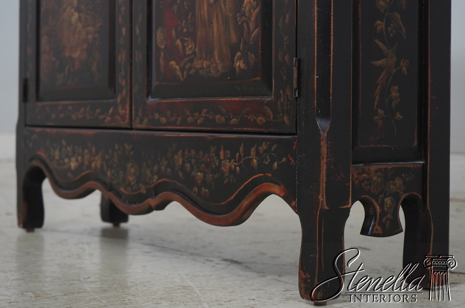 Details: Factory Distressed Model 17-5132 Adjustable Shelves Fine Carved Details High Quality Construction Raised Panel Doors Hand Painted Scenic Elements Intentional Distressed Finish Scalloped Apron 2 Drawers 2 Doors Offered @ Fraction Original Retail Cost