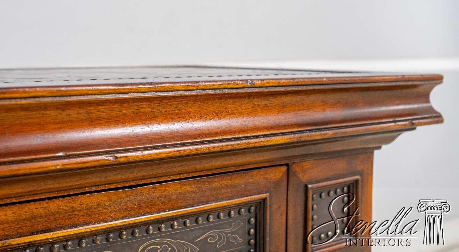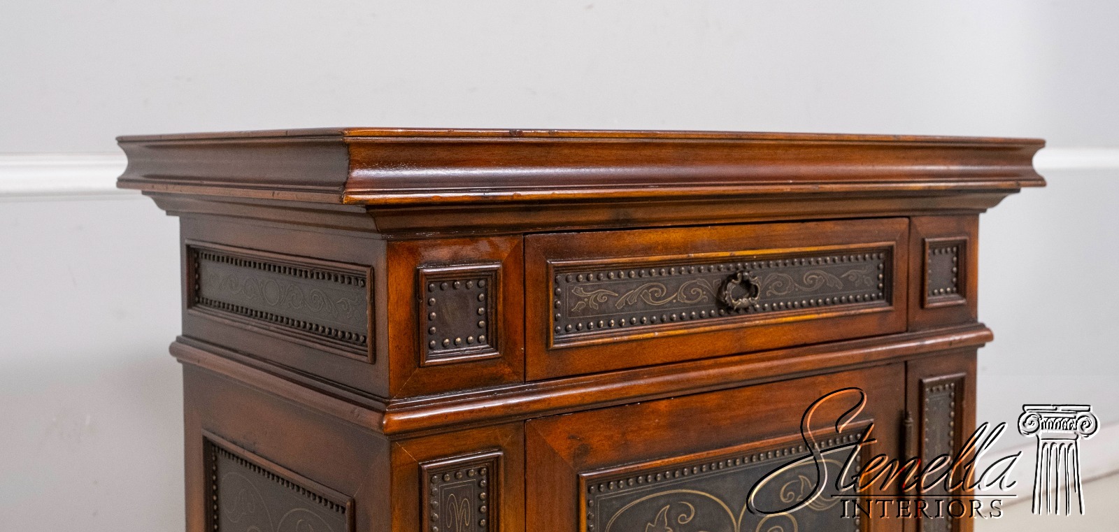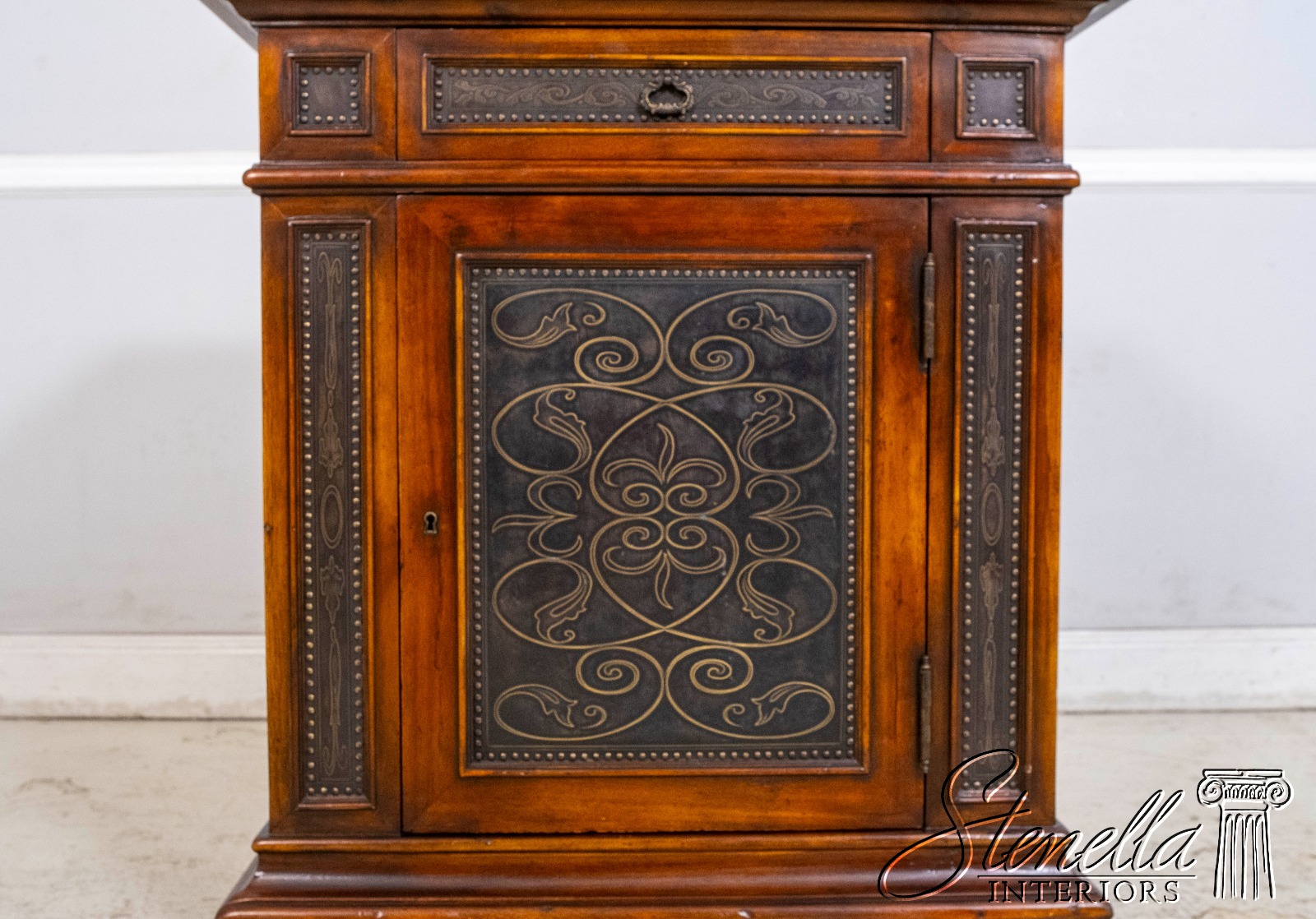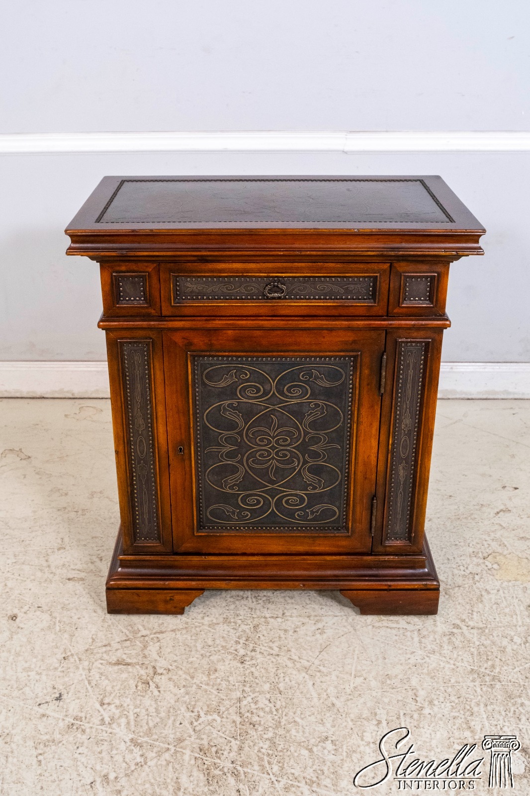L69860: THEODORE ALEXANDER Incised Copper Surface Cabinet Commode