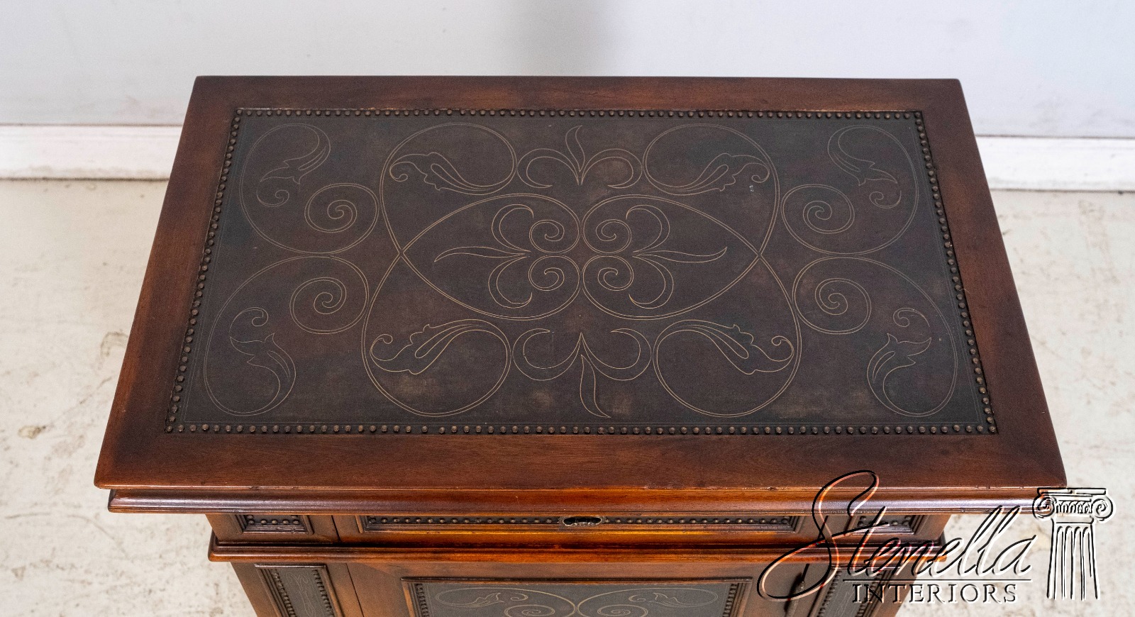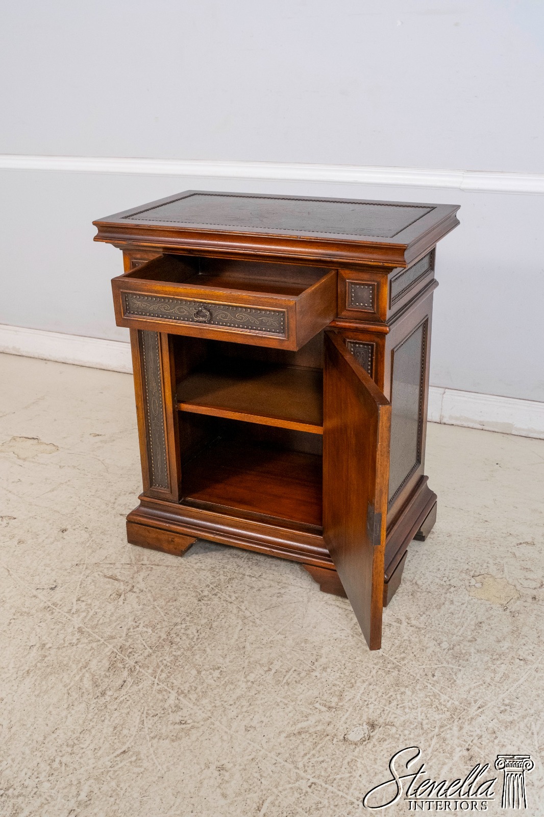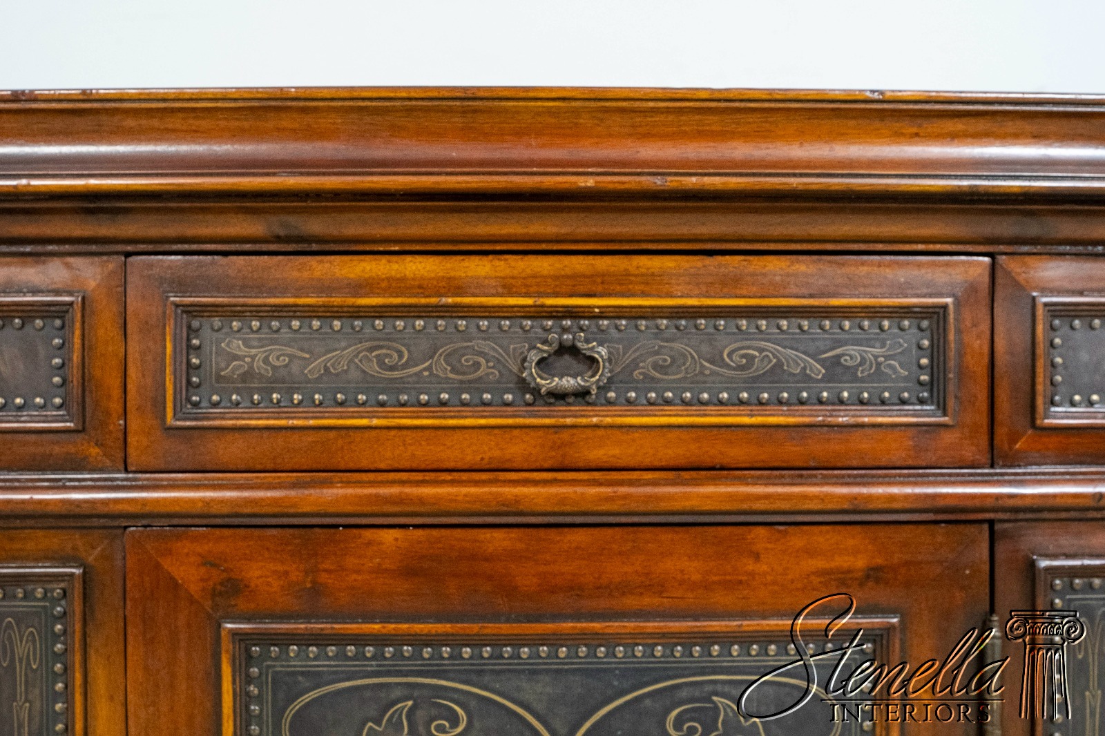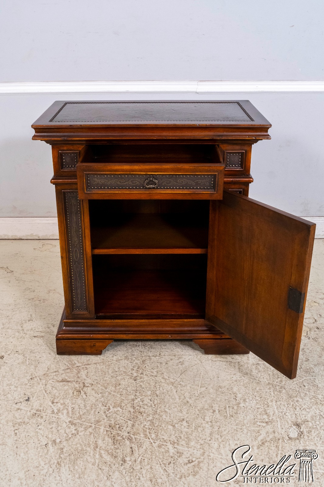 L69860: THEODORE ALEXANDER Incised Copper Surface Cabinet Commode