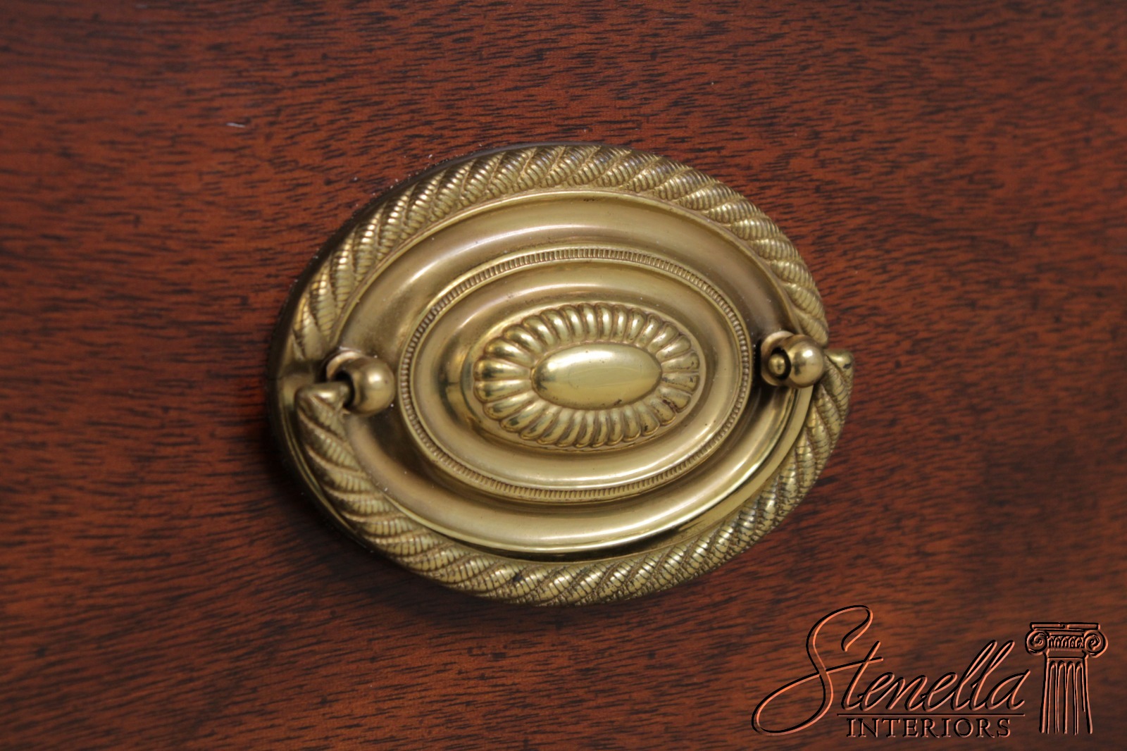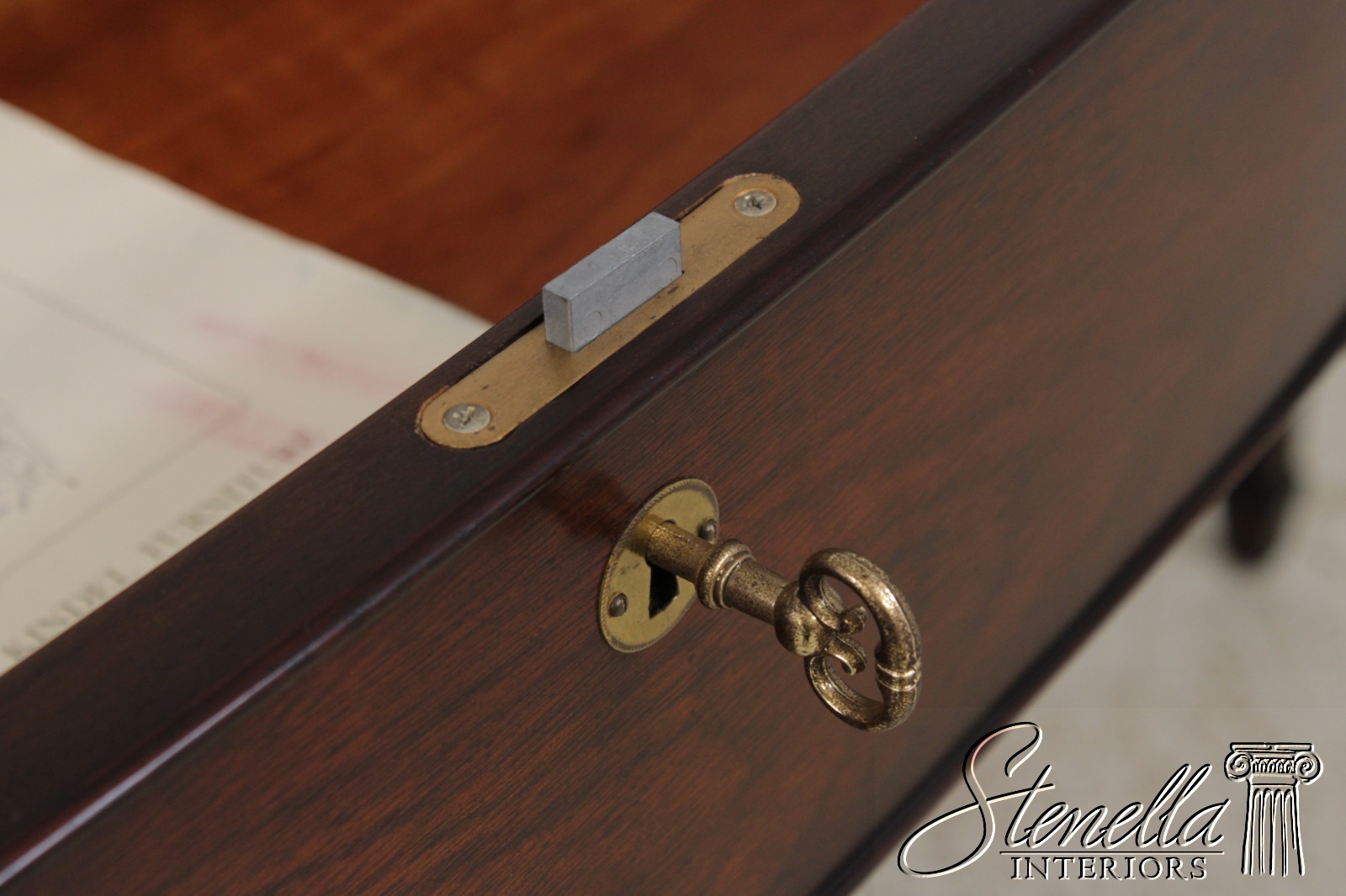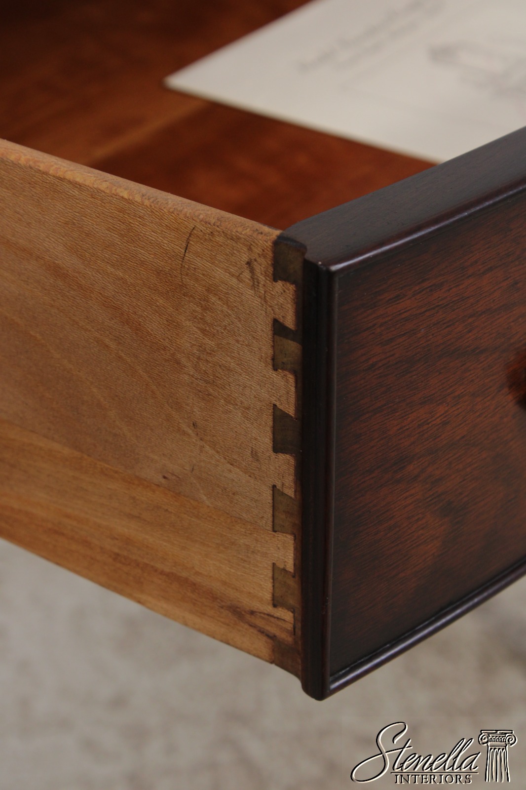 Details: Oxford Finish Ornate Carved Legs Mahogany Adjustable Shelves Dovetailed Drawer Construction High Quality Construction Rich High Sheen Finish Federal Style Traditional Style Solid Brass Hardware Curved Front Quality Tooled Leather Top Felt Lined Draw Key Locking With Key Three Drawers And One Door Offered At A Fraction Of The Original Retail Cost