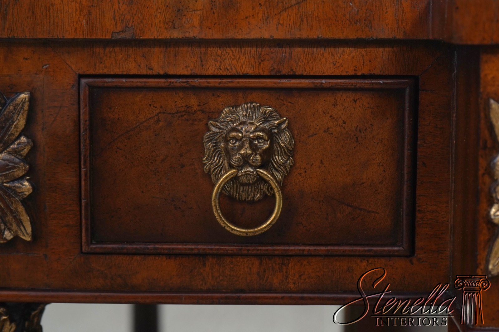 Details: Light Factory Distressing Tooled Leather Surfaces On Top Carved Paw Feet Quality Construction Great For Hallway, Foyer Or Dining Room Lion Head Drawer Pulls Gold Highlights Mirror Back Panel