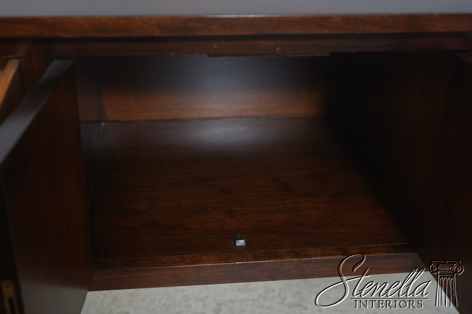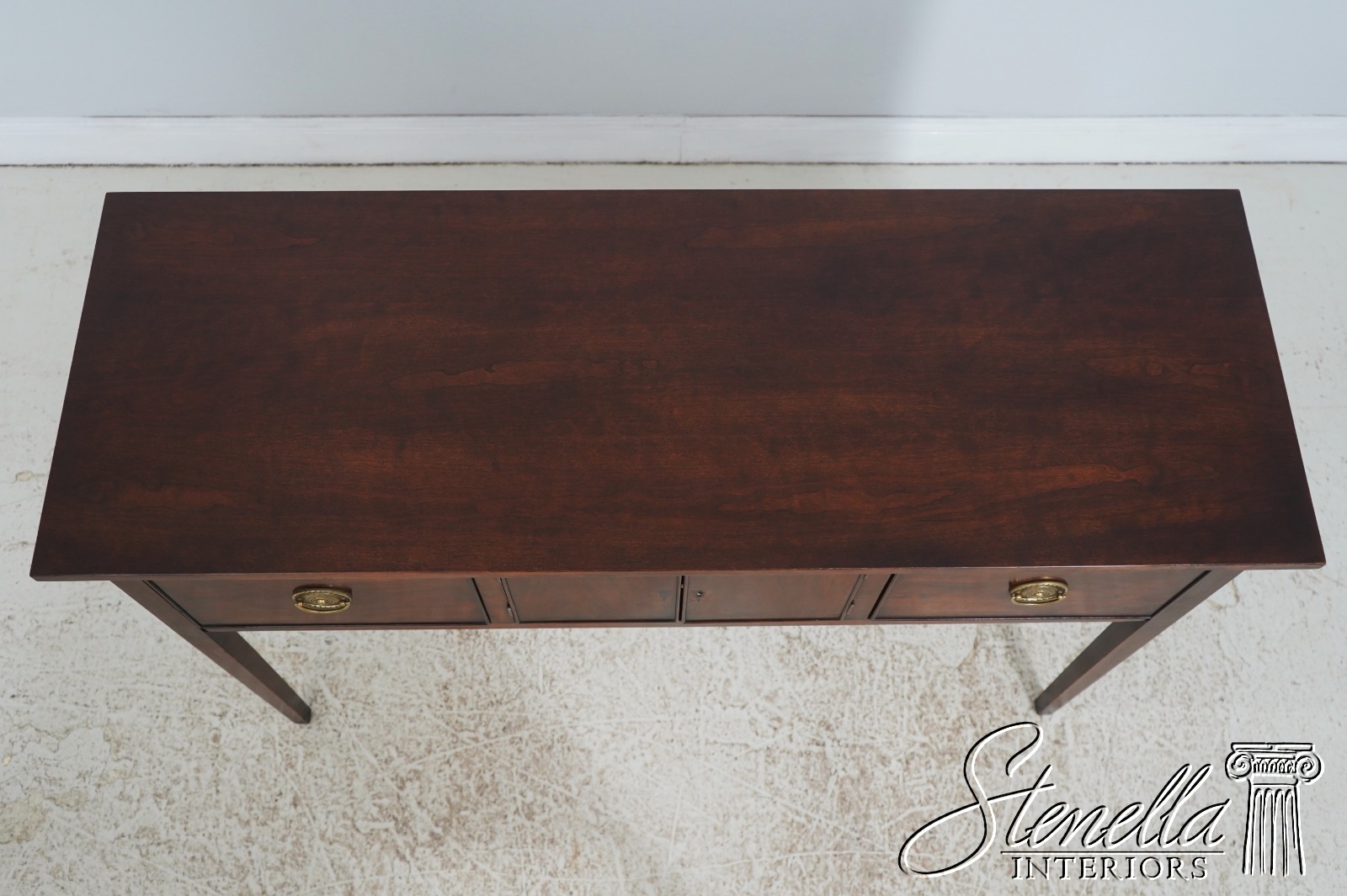 Details: Cherry Quality Construction 18 C. Design Federal Style Hunt Board Style Sideboard Solid Brass Hardware Oak Secondary Drawer Construction Key Locking w. Key Tapered Legs Marked w. Old BAR Brandt Mark Offered @ Fraction Original Retail Cost