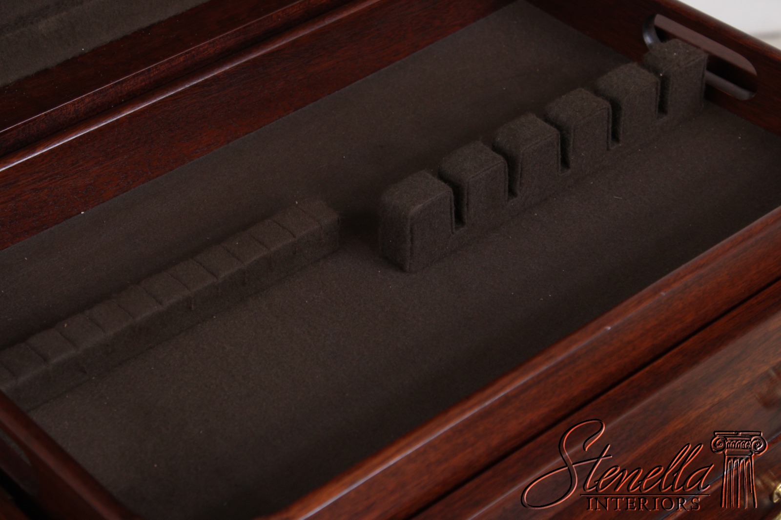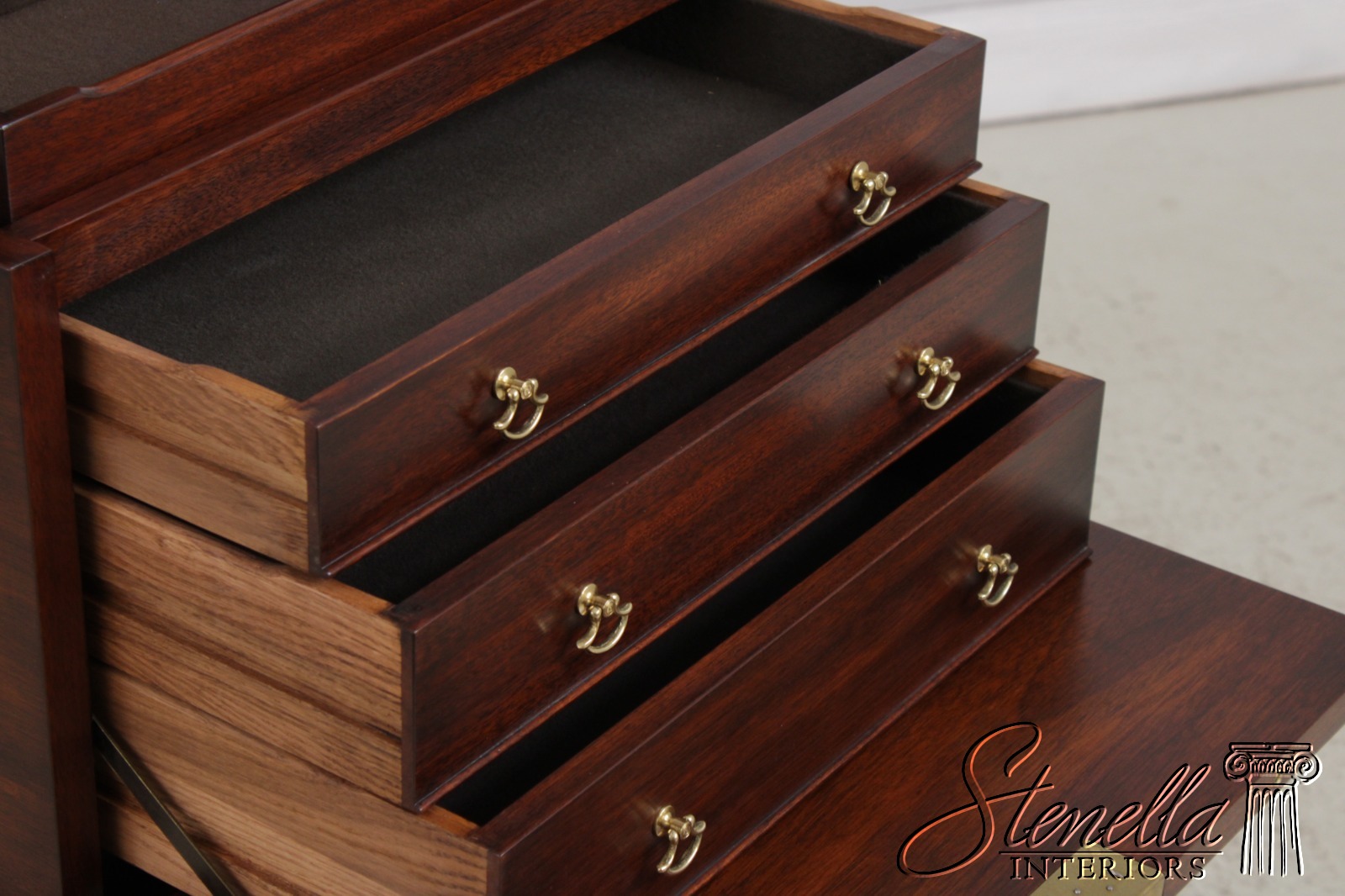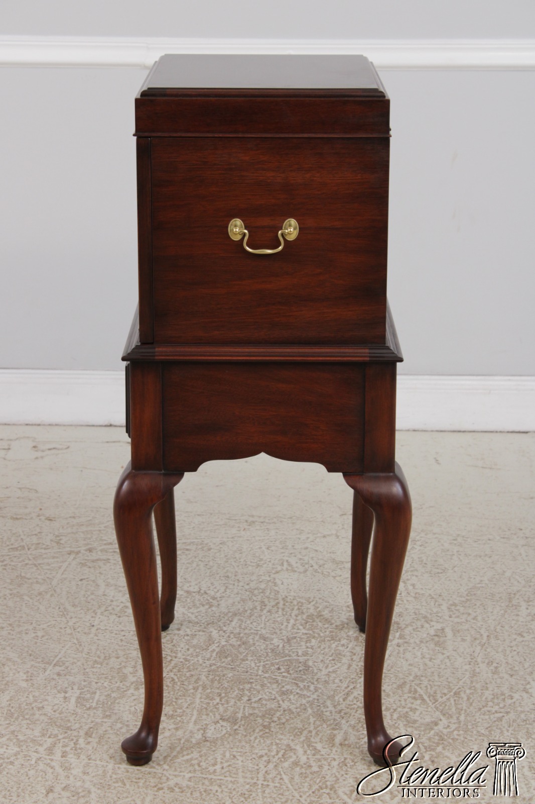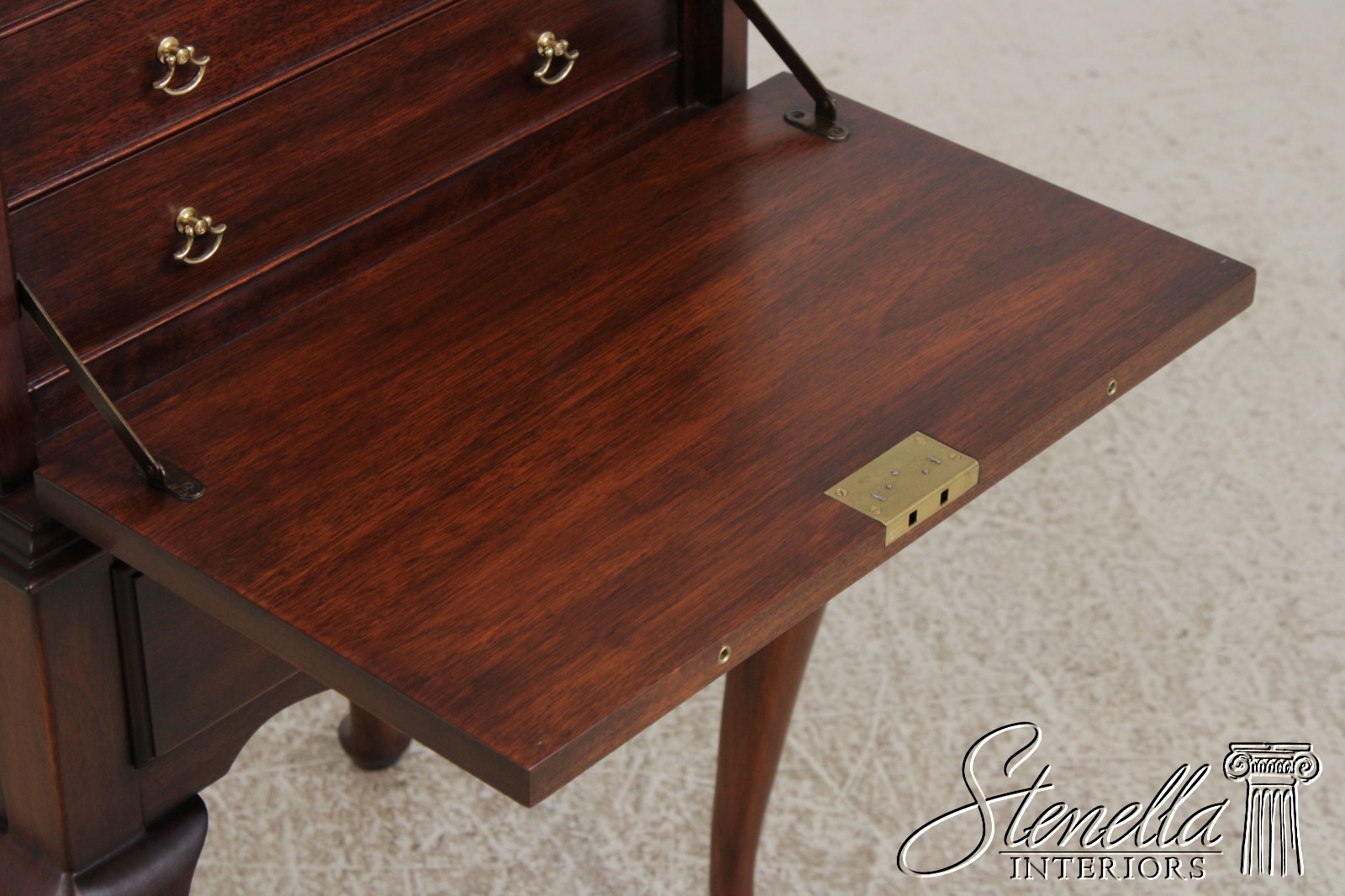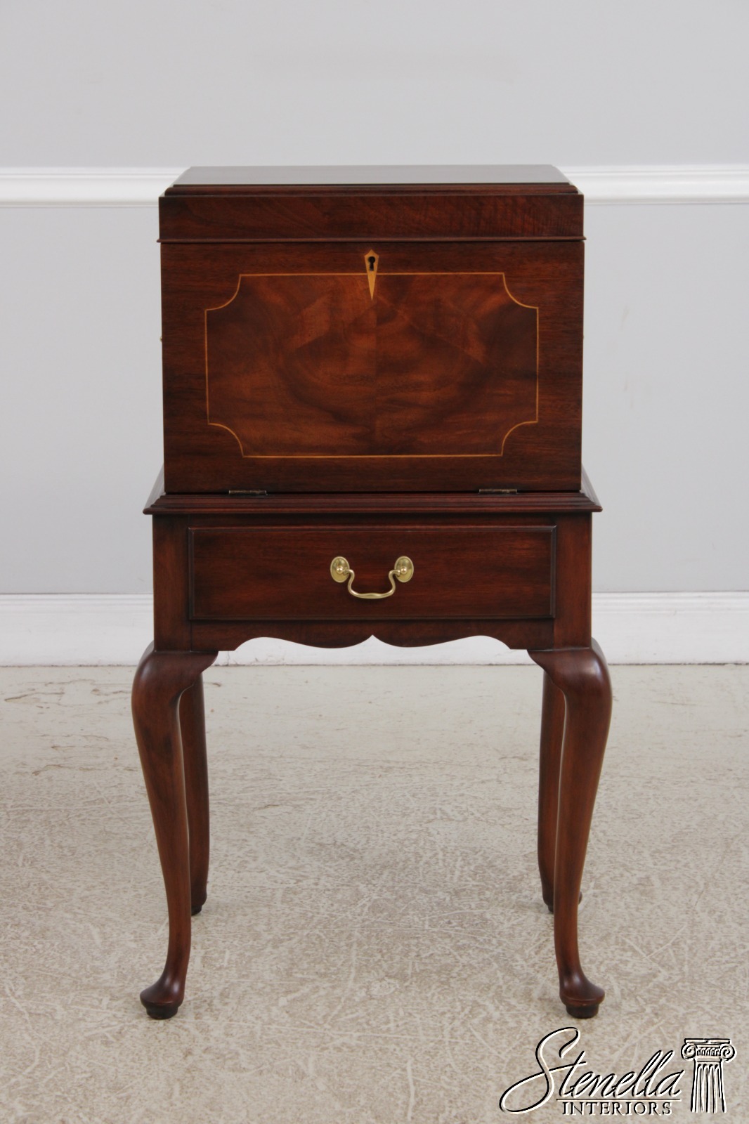 Details: Finish No.29 Felt Lined Interior High Quality Construction Queen Anne Legs & Pad Feet Figural Mahogany Fall Front Traditional Style Solid Brass Hardware Removable Serving Tray
