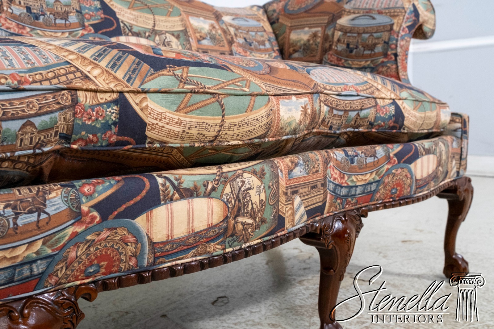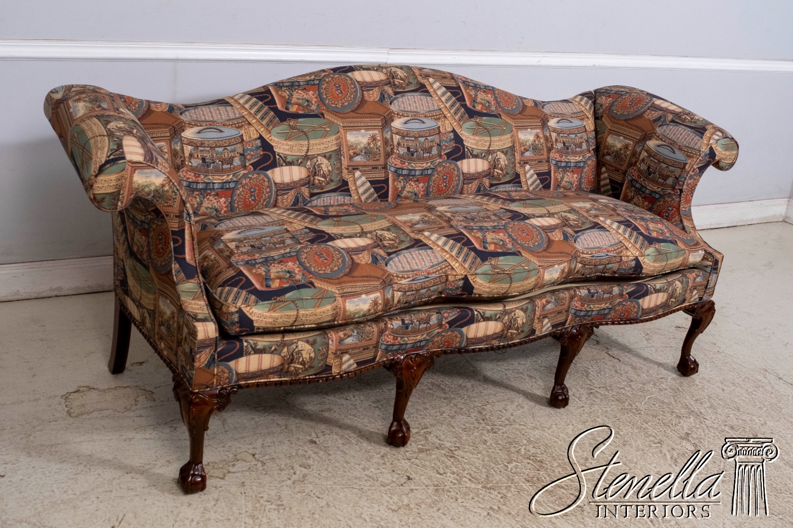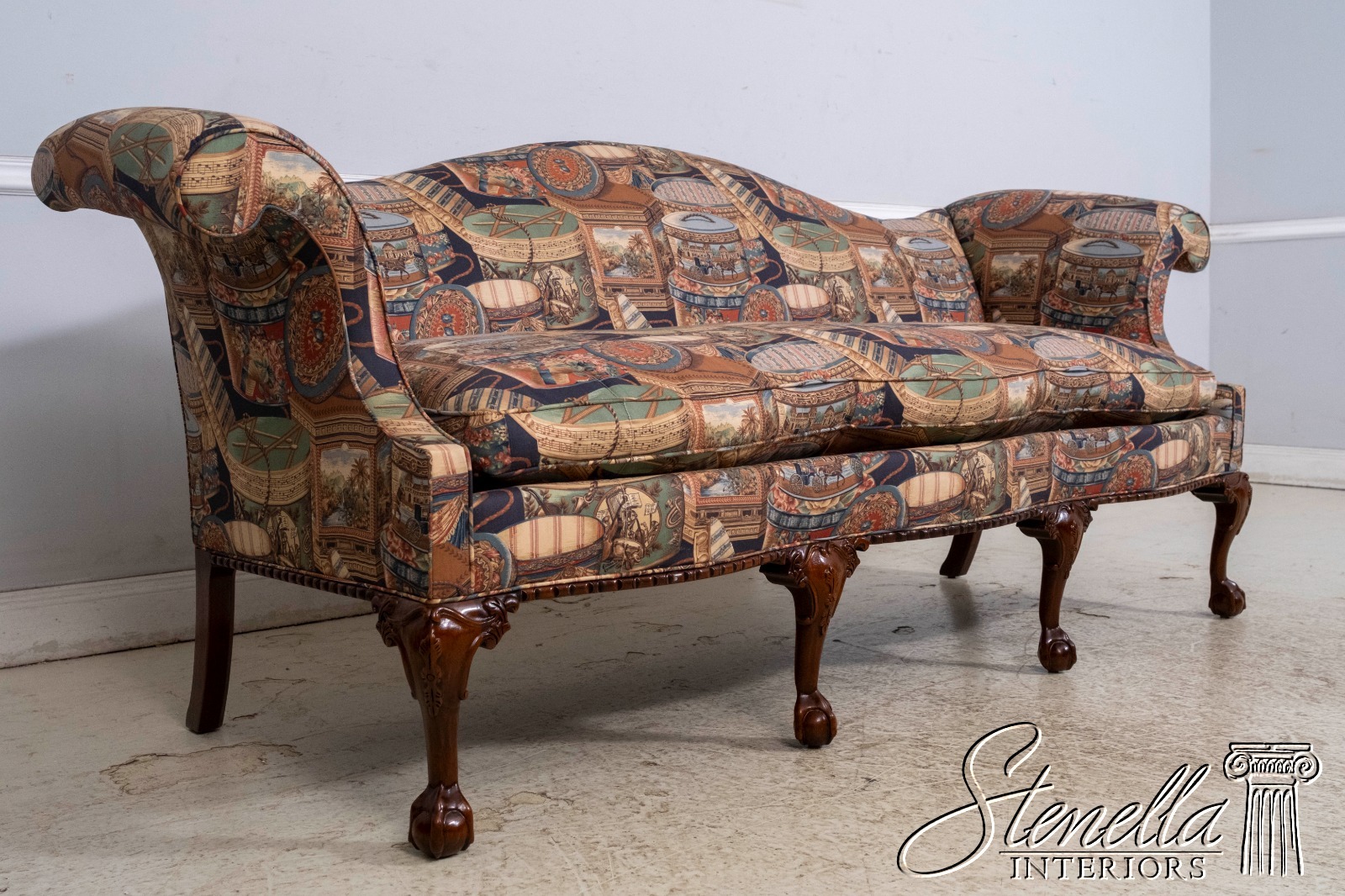 Details: Serpentine Curved Down Seat Cushions Carved Details High Quality Construction Sat In A Room With Little To No Use Colonial Williamsburg Style Hatbox Motif Colonial Upholstery Clean Well Cared For Original Upholstery Message Us If Interested In 1 Sofa Only Offered @ Fraction Original Retail Cost