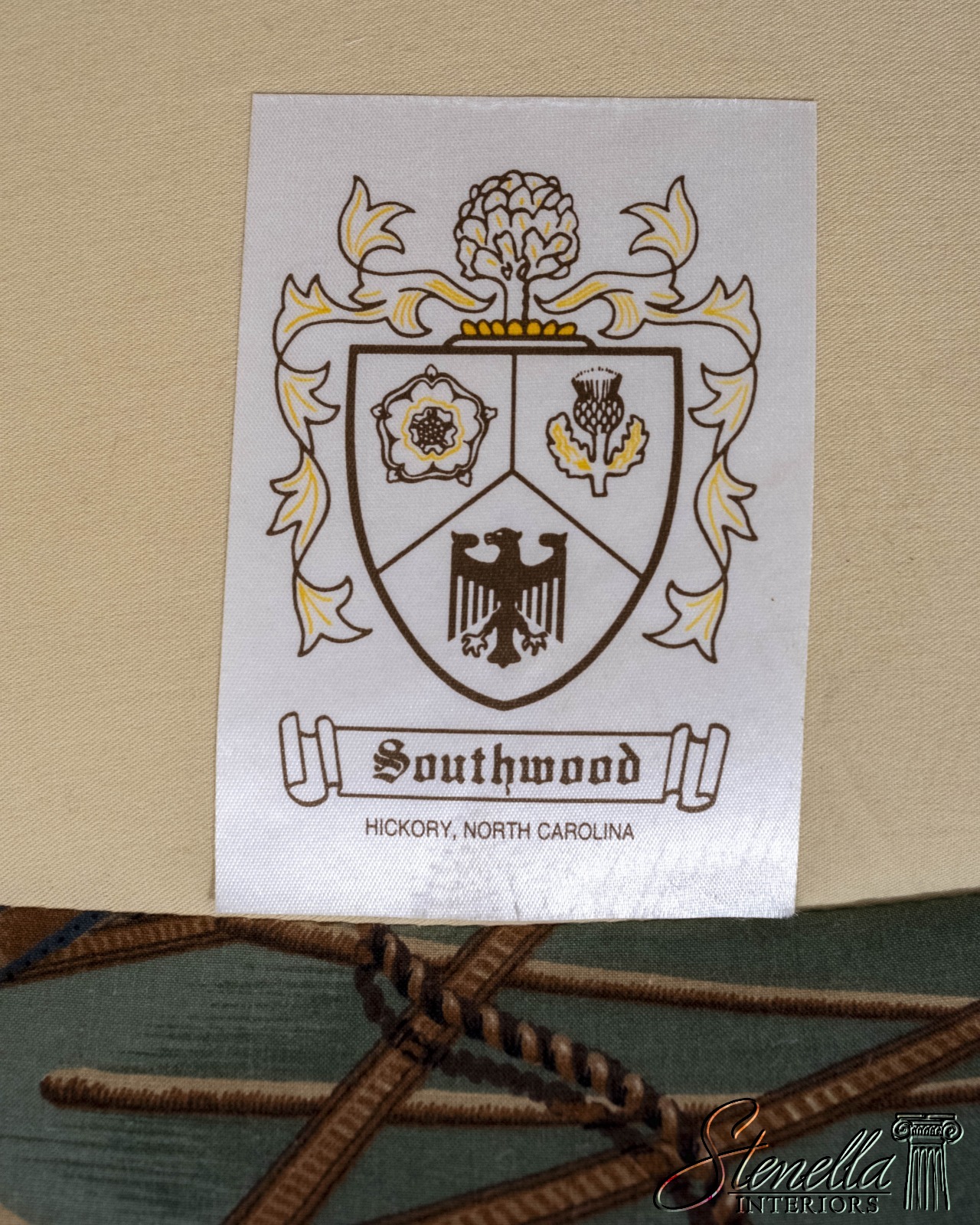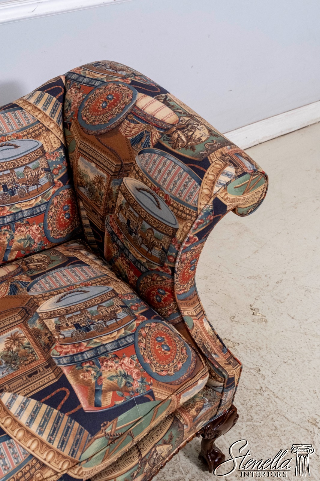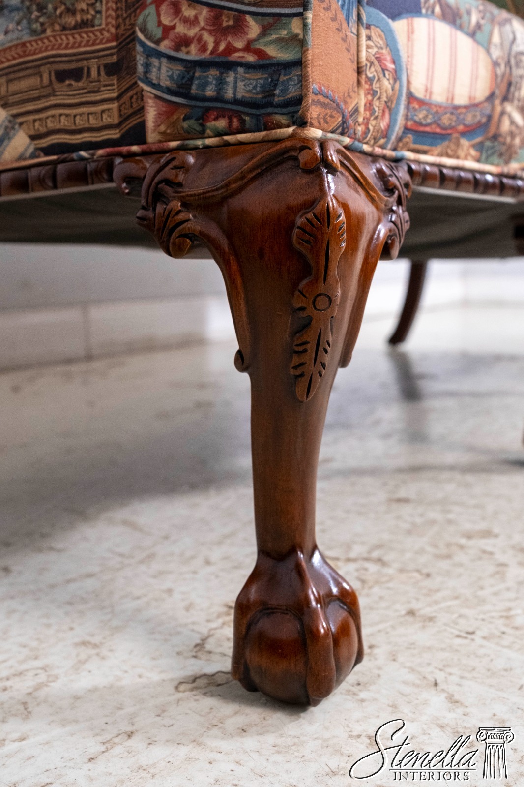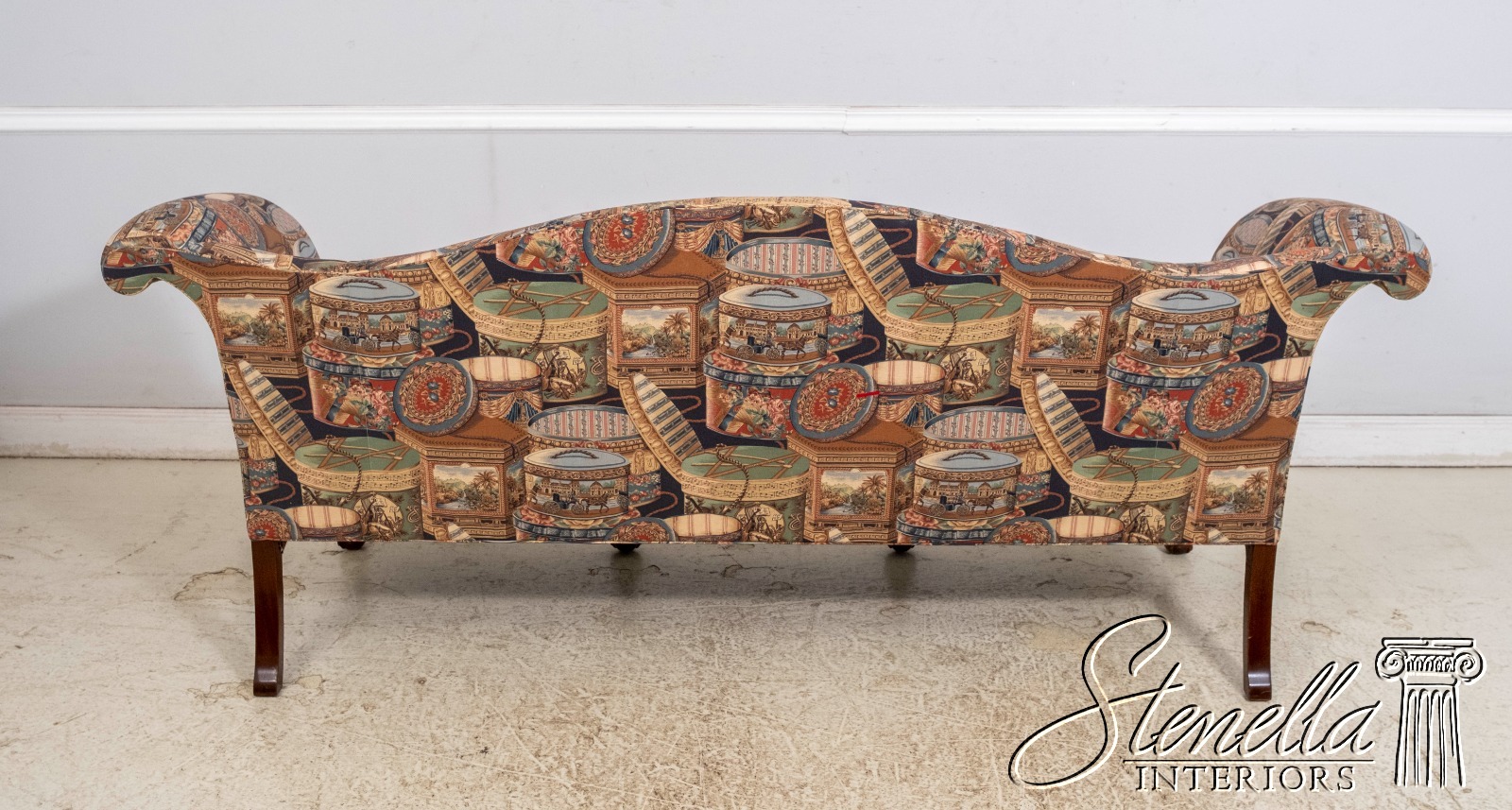 Details: Serpentine Curved Down Seat Cushions Carved Details High Quality Construction Sat In A Room With Little To No Use Colonial Williamsburg Style Hatbox Motif Colonial Upholstery Clean Well Cared For Original Upholstery Message Us If Interested In 1 Sofa Only Offered @ Fraction Original Retail Cost