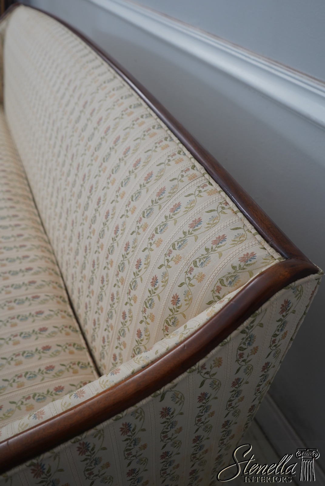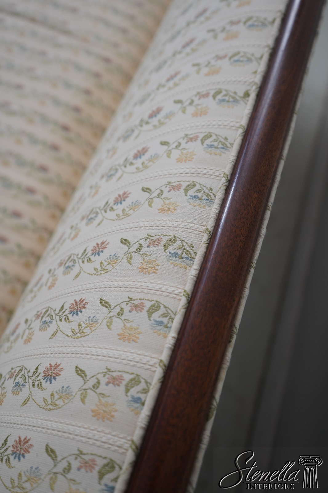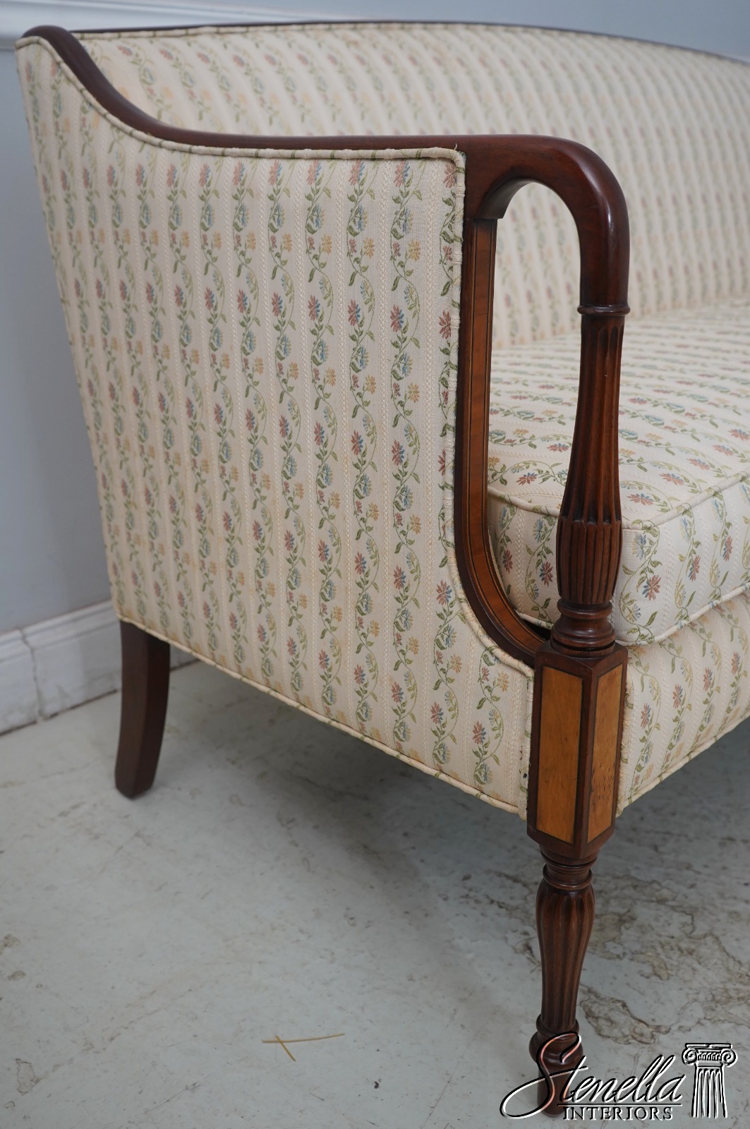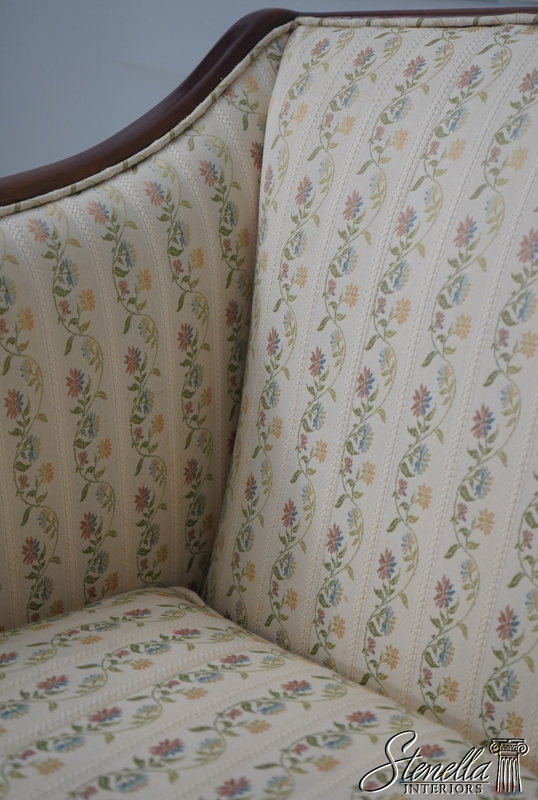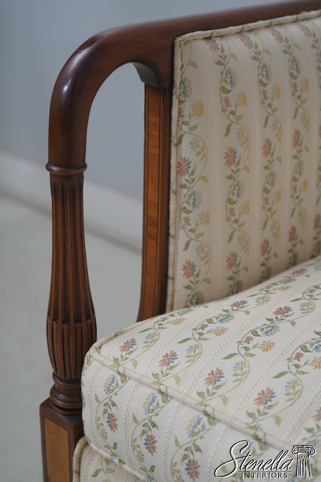 Details: Mahogany Satinwood Inlaid Accent Panels Quality Construction Sheraton Style Traditional Style Nice Rolled Arms Overall Well Cared For Original Upholstery Offered @ Fraction Original Retail Cost