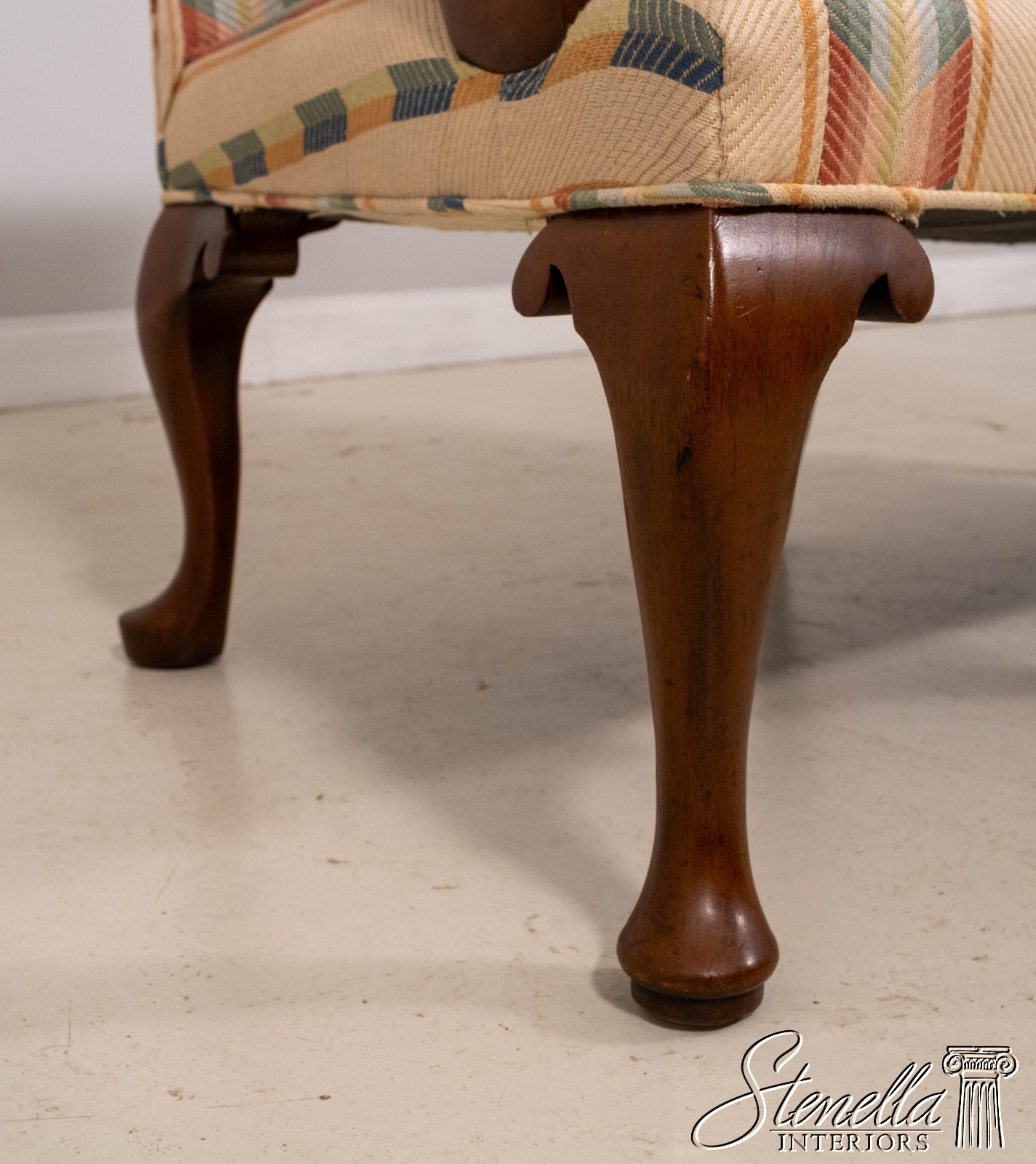 Sometimes upholstered items may show some wear or minor use. Or you may want to have recovered in different upholstery to match your decor’. Please feel free to contact us for information on having this or any of our items professionally re-upholstered in the fabric of your choice. We are able to make recommendations. SIZE