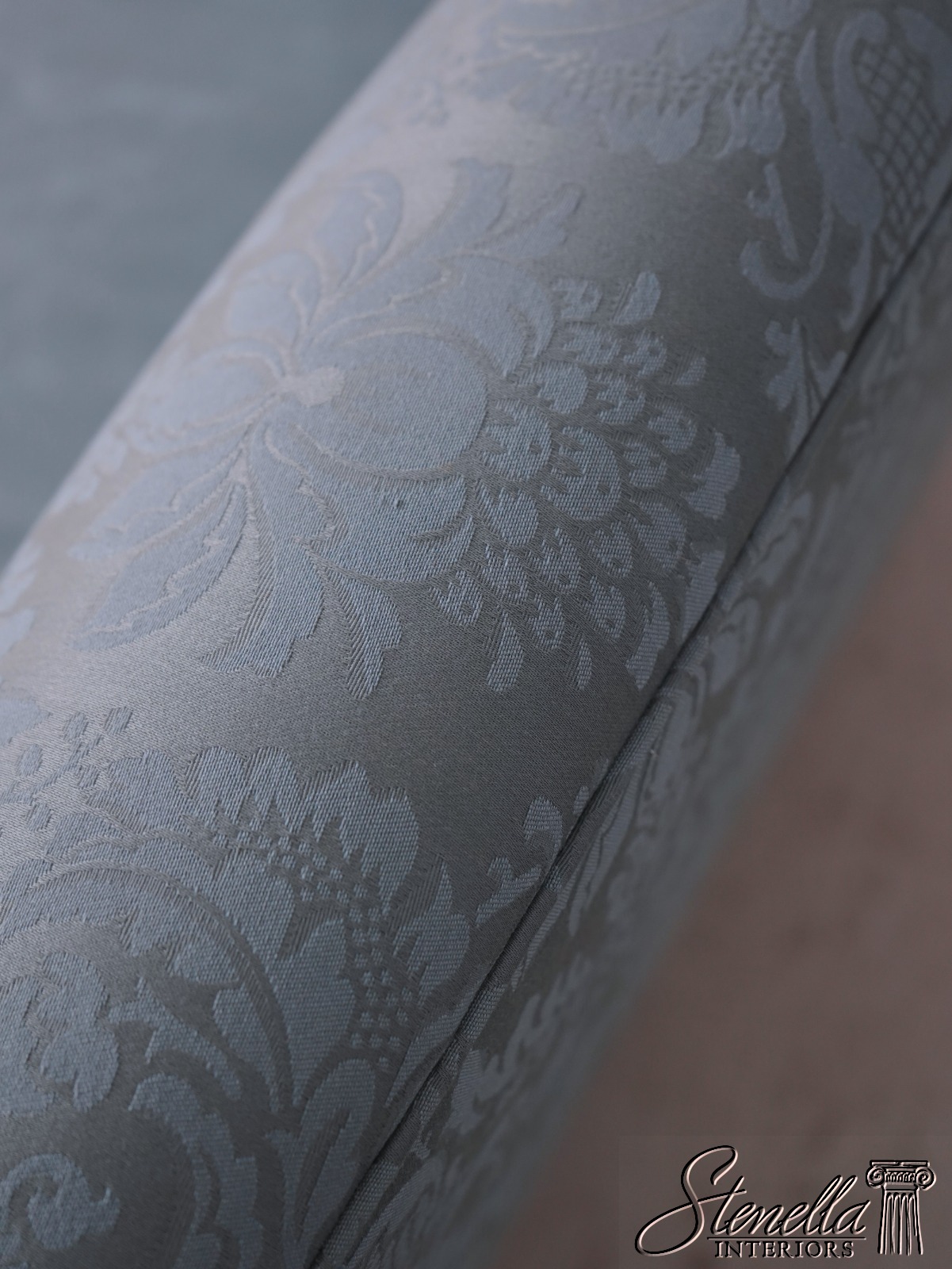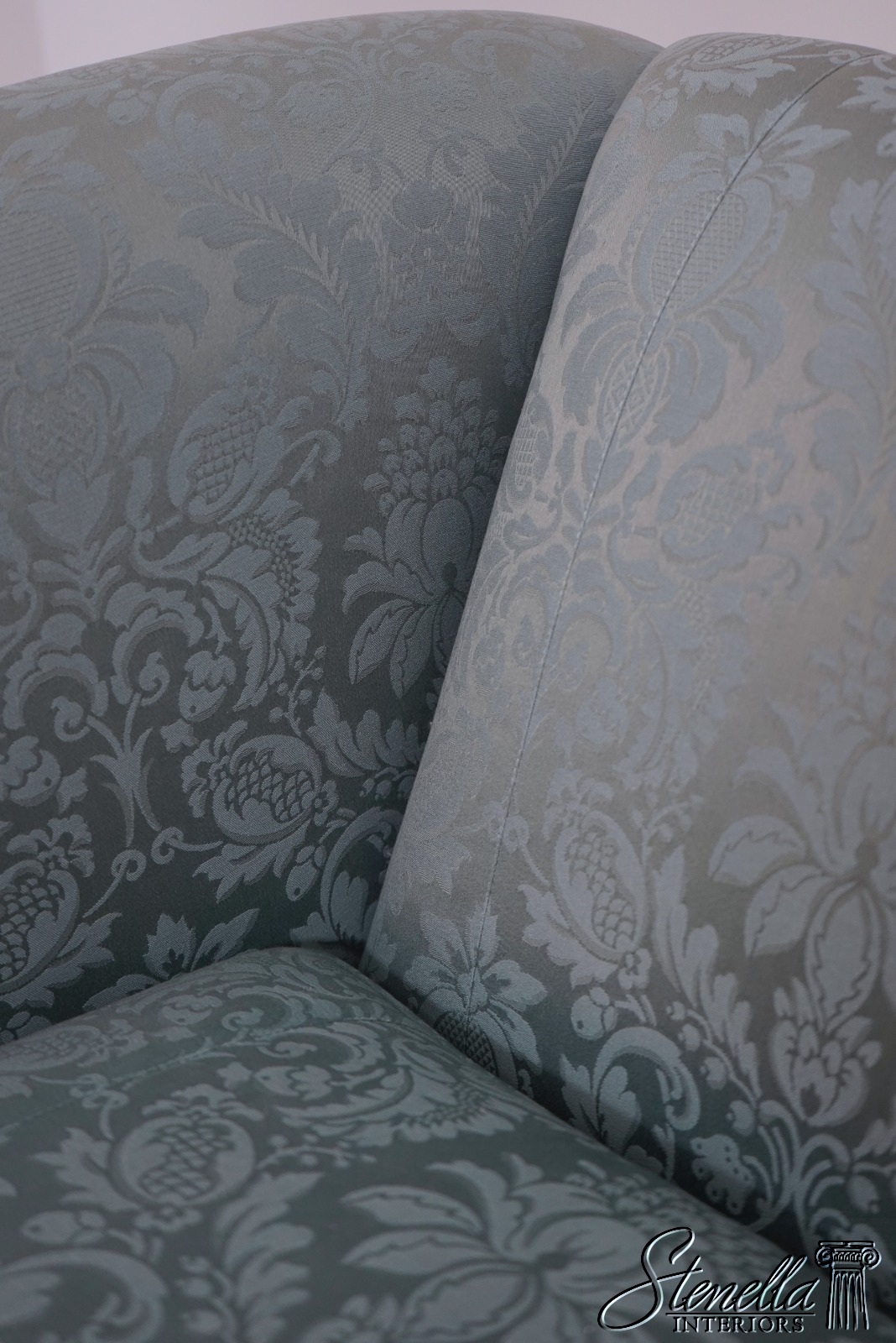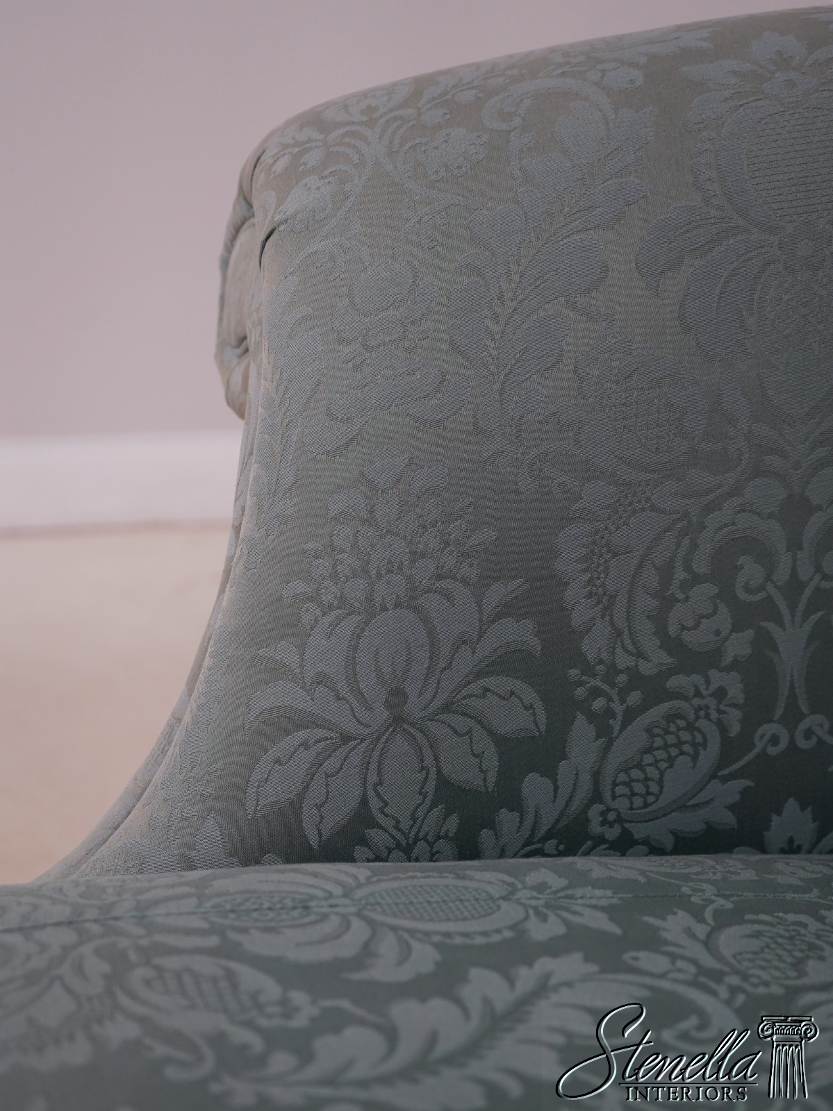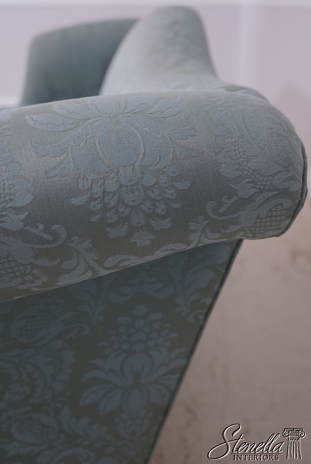 Details: Down Seat Cushion High Quality Construction 18 C. Design Chippendale Style Traditional Style Stretcher Base Frame Clean Bluish-Green Damask Upholstery Offered @ Fraction Original Retail Cost