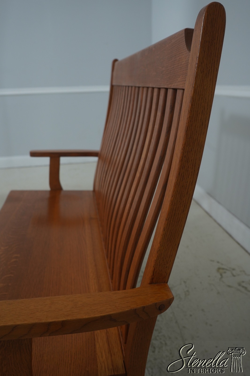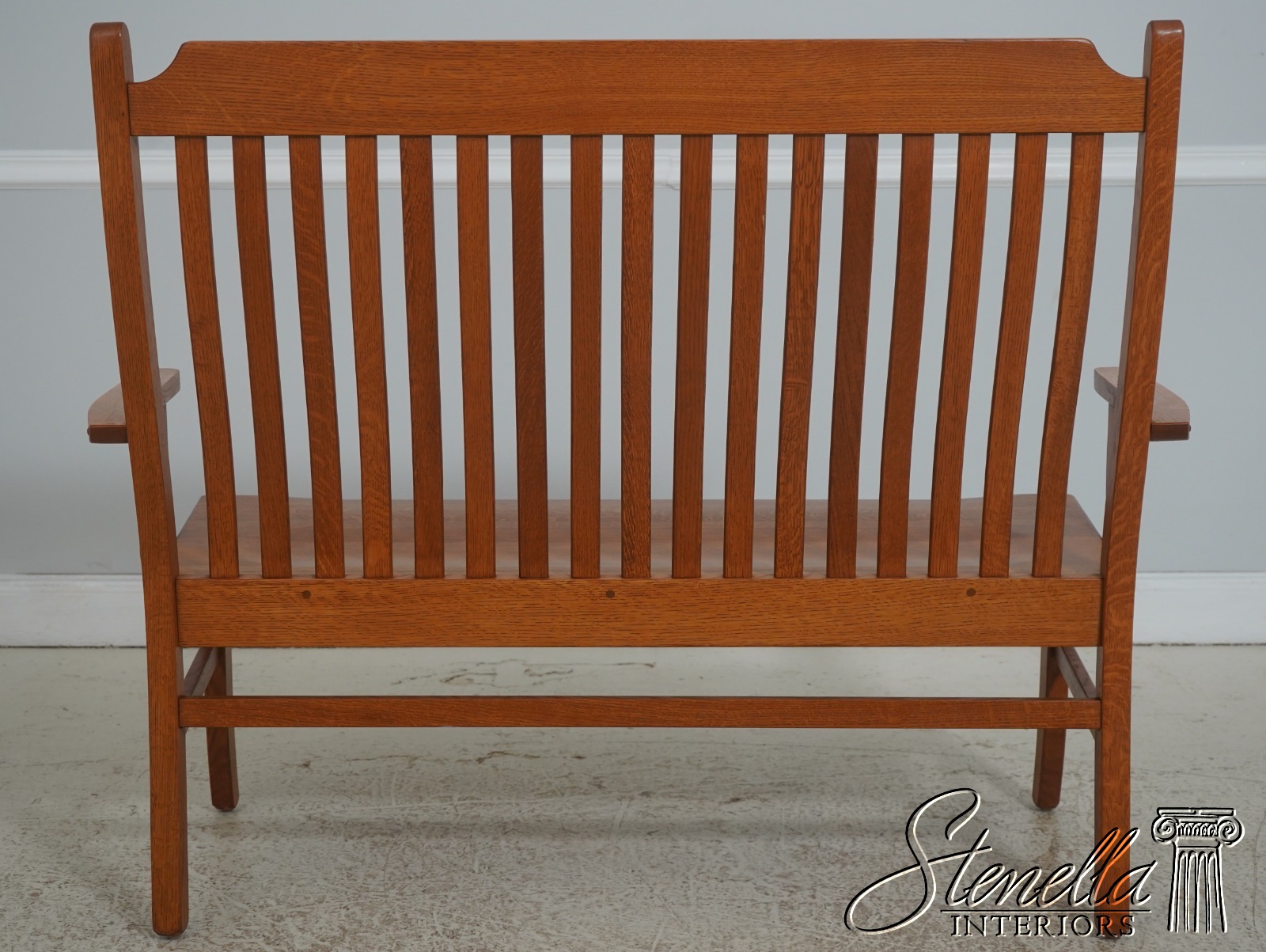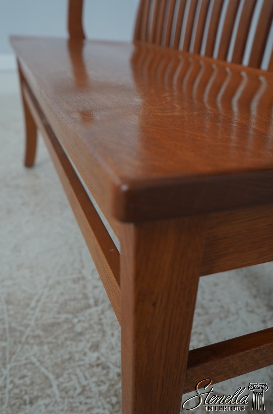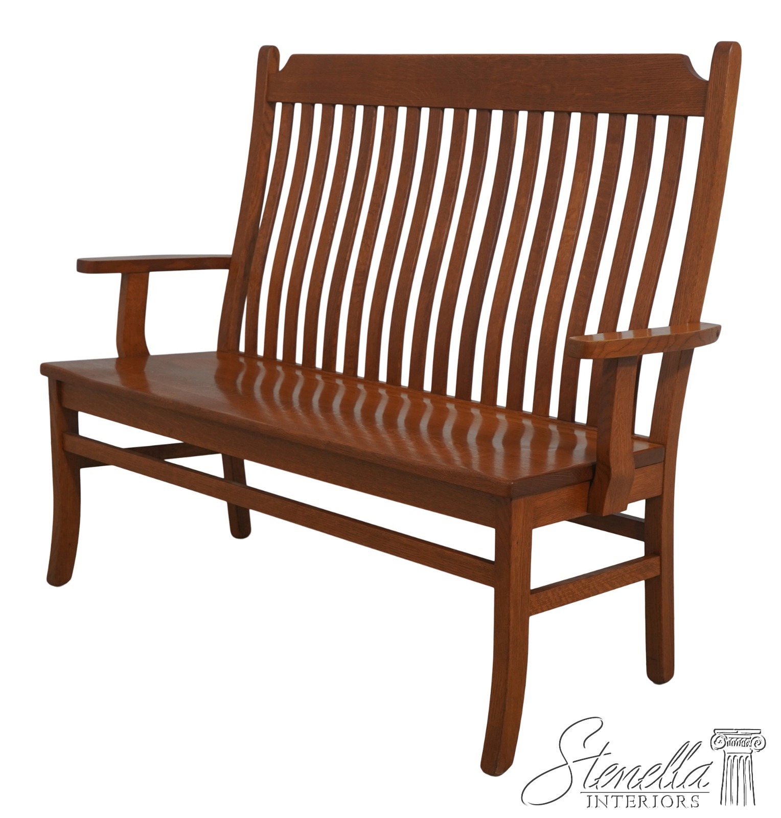 72209: Arts And Crafts Style Solid Oak Slat Back Bench