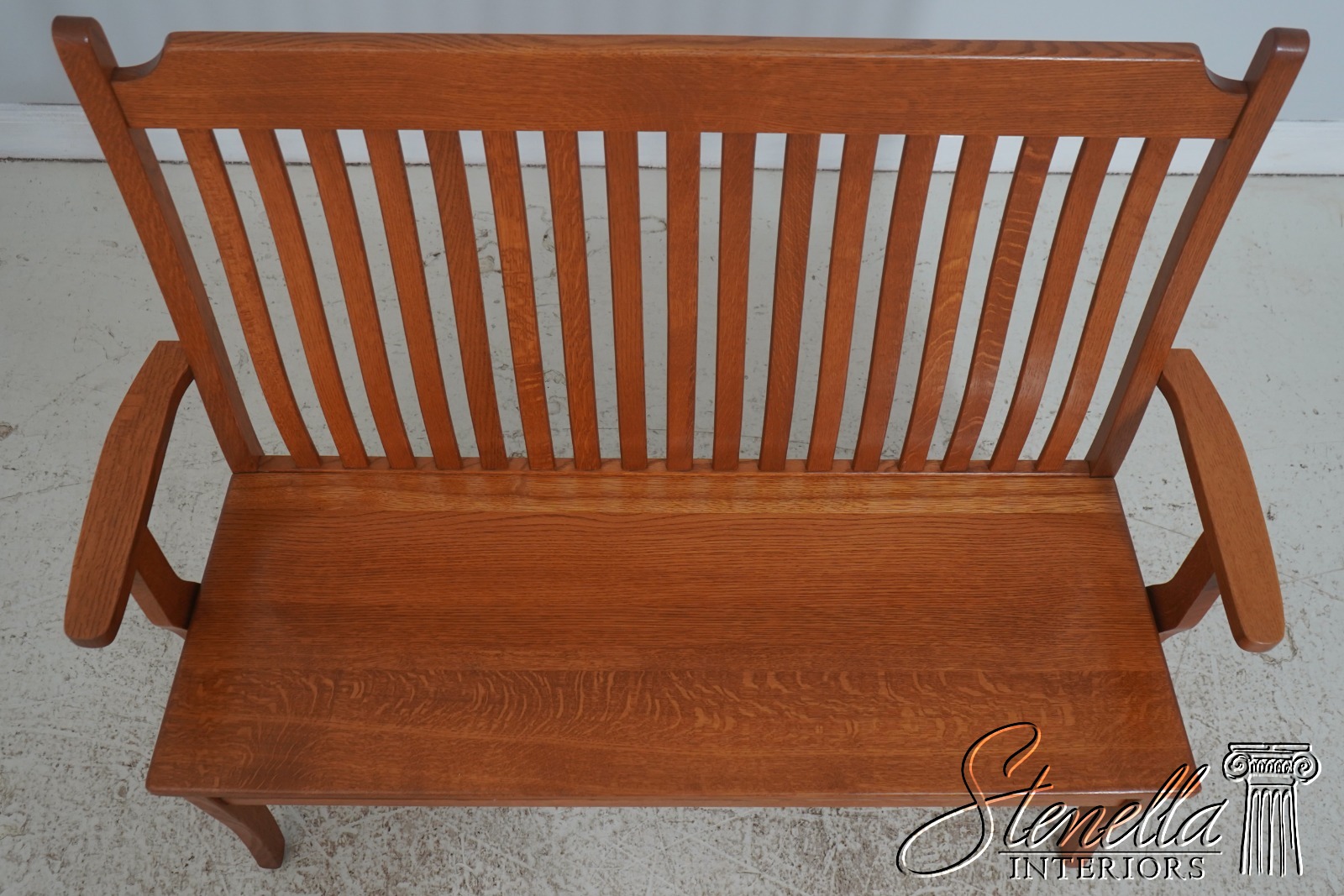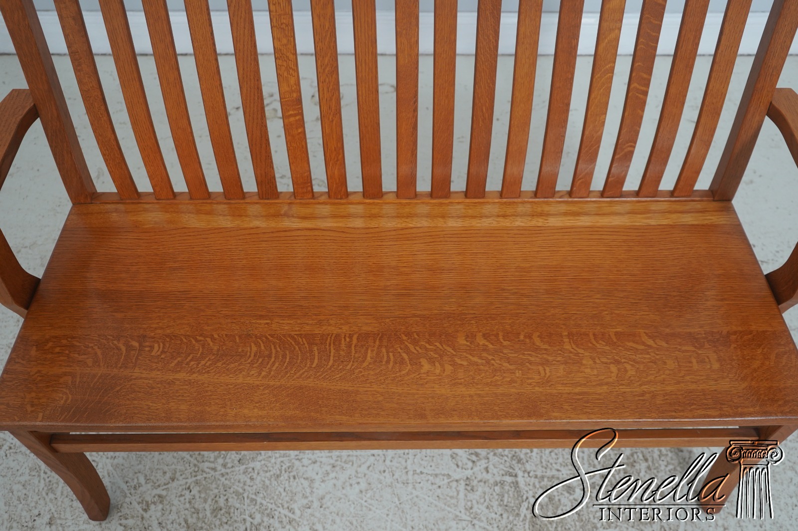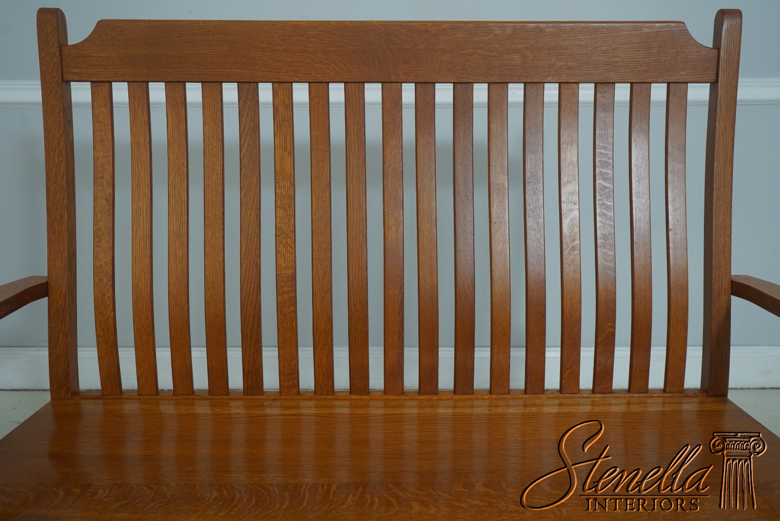 72209: Arts And Crafts Style Solid Oak Slat Back Bench